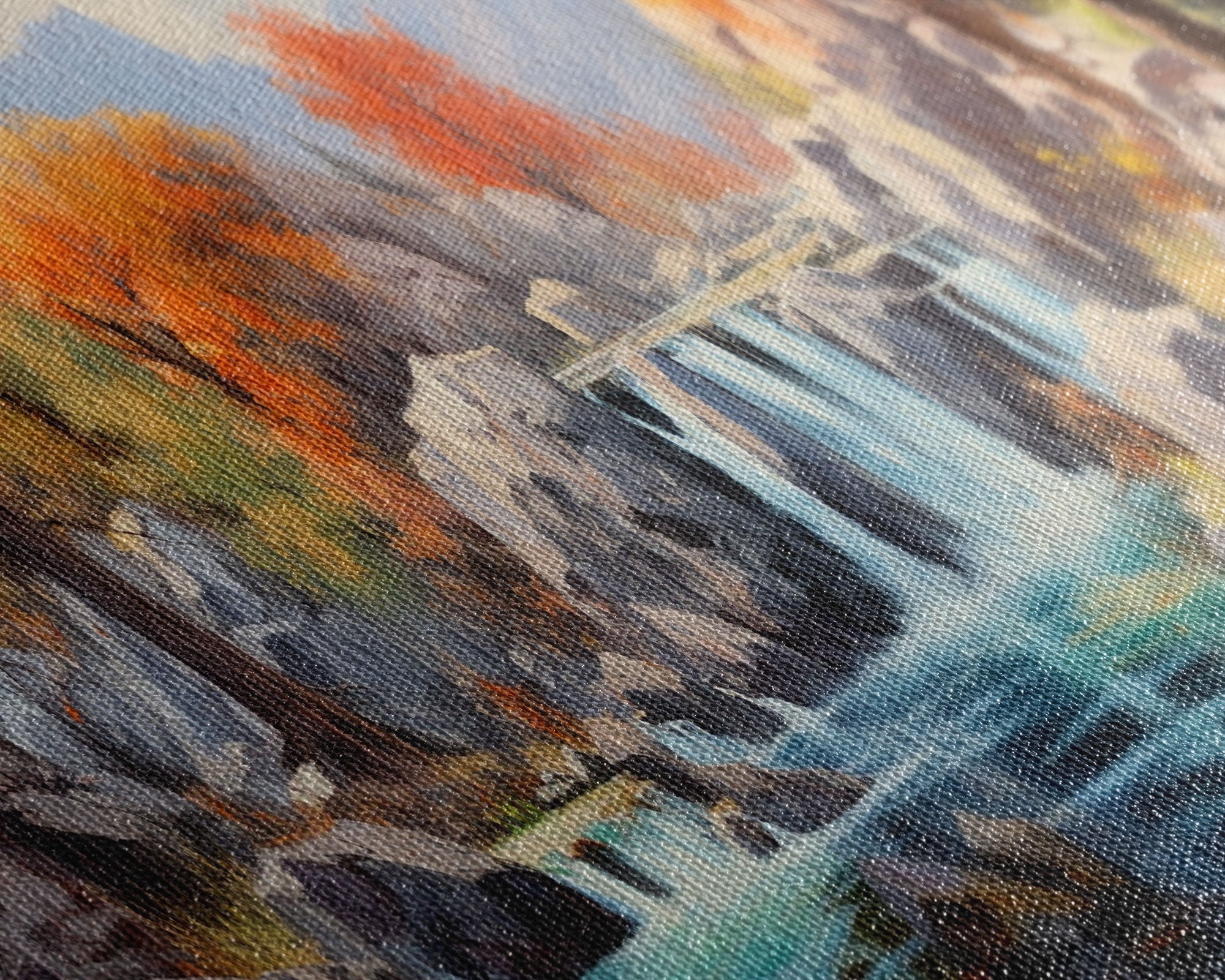 Most of our canvases are made in the USA, with the exception of canvases ordered with the light oak unstained frames, and any large canvases (24x48, 30x60, 16x48 and 20x60) ordered WITH a frame. These are temporarily made in and shipped from Europe, while we try to find a more consistent supplier in the USA.