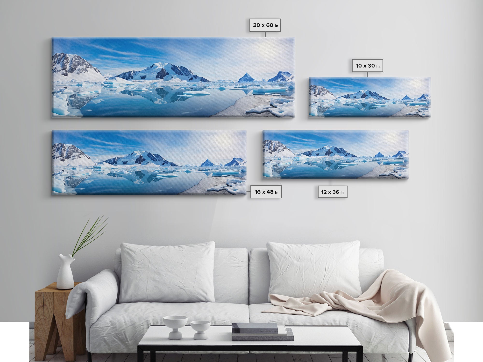 Beautiful Photographic Panoramic of Antarctica, Sunset Photography, Winter Decor, Christmas Deco, Framed Canvas Print, Landscape Photography