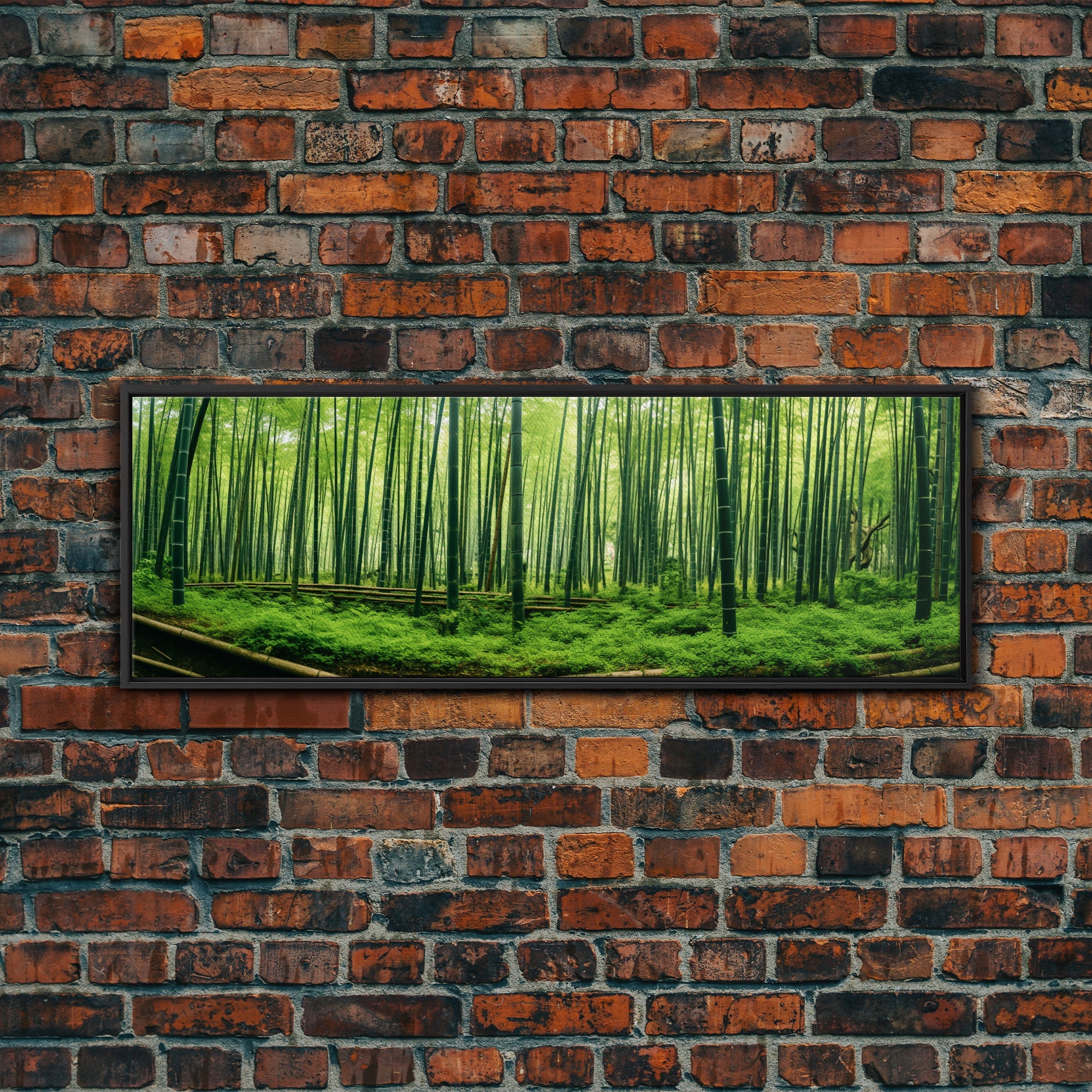 Beautiful Photographic Panoramic of Arashiyama Bamboo Grove Kyoto Japan, Framed Canvas Print, Landscape Photography, Landmark Art