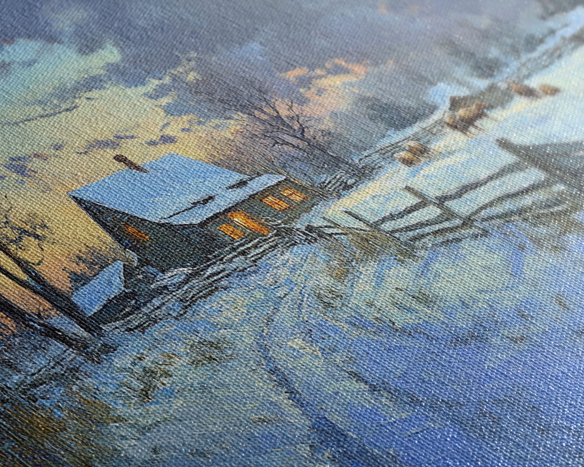 Beautiful Winter Snowy Farm Framed Canvas Print Rustic Christmas Decor, Christmas Wall Art and Holiday Art Prints, Gift Home Decor