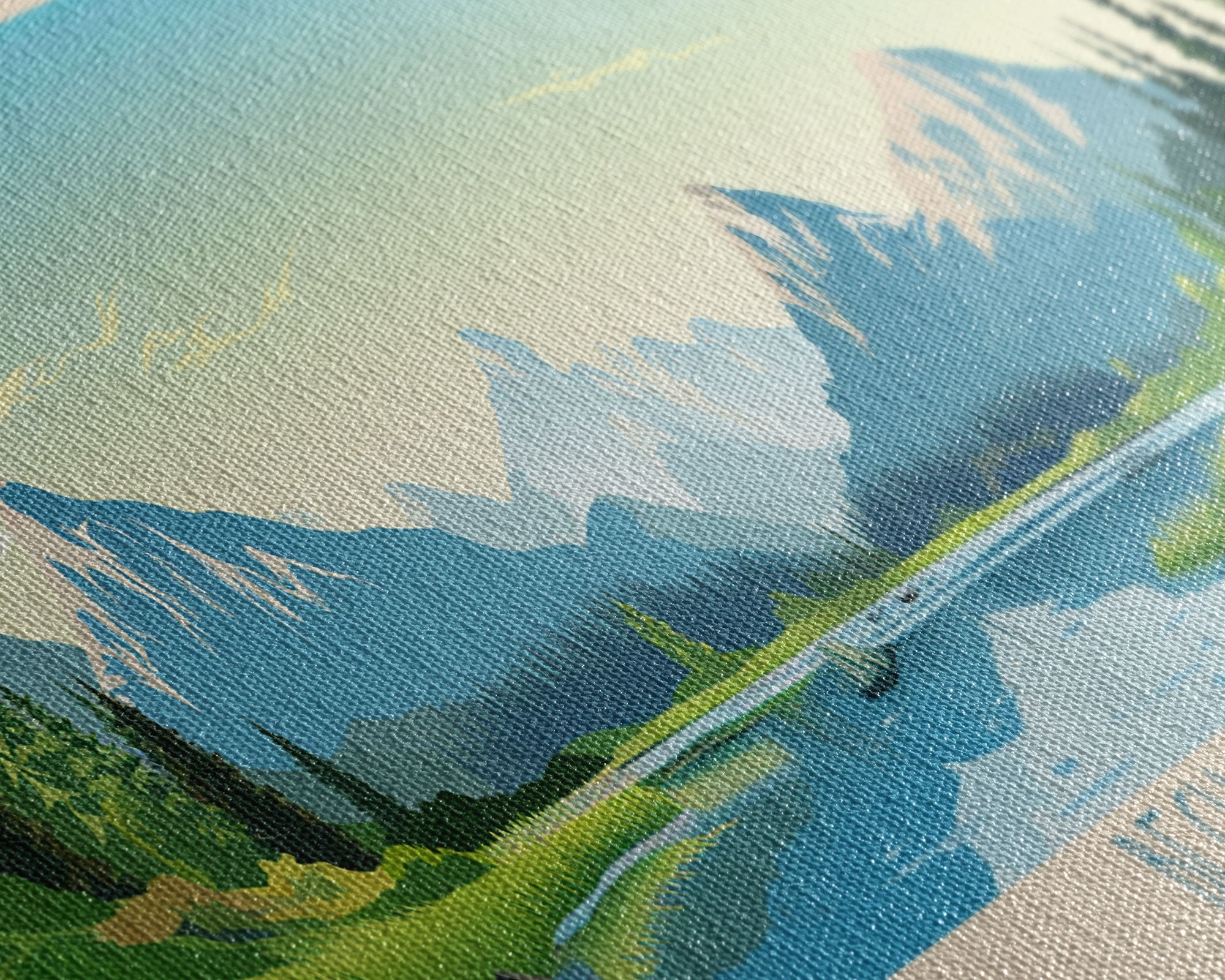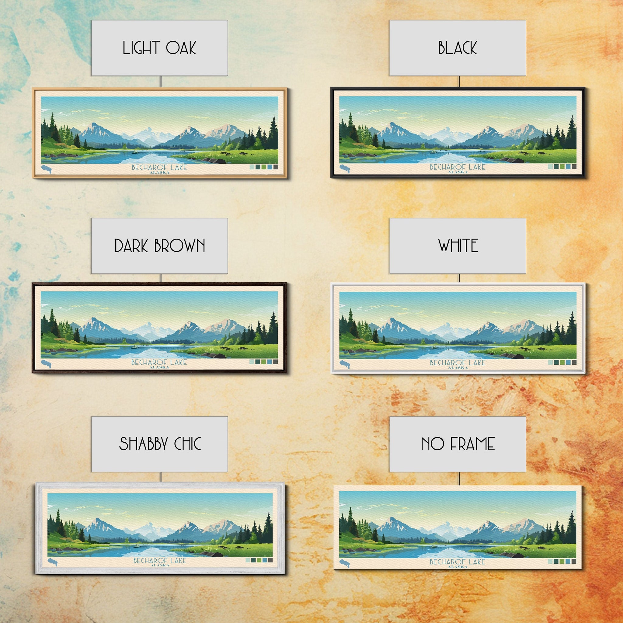 Becharof Lake Alaska Framed Canvas Print, Panoramic Travel Poster, Midcentury Modern Wall Art, Pop Art, Nature Bedroom Art, Living Room Decor
