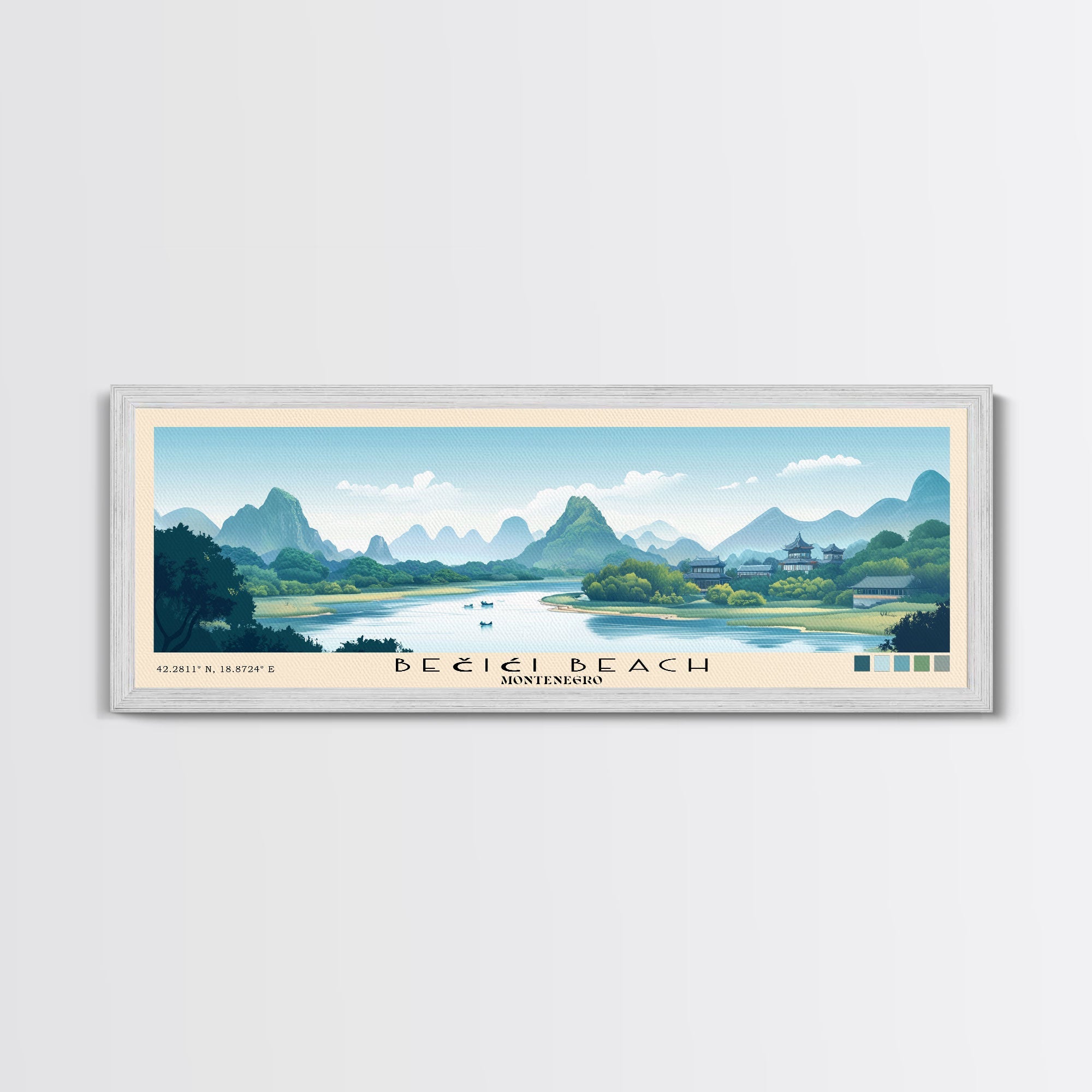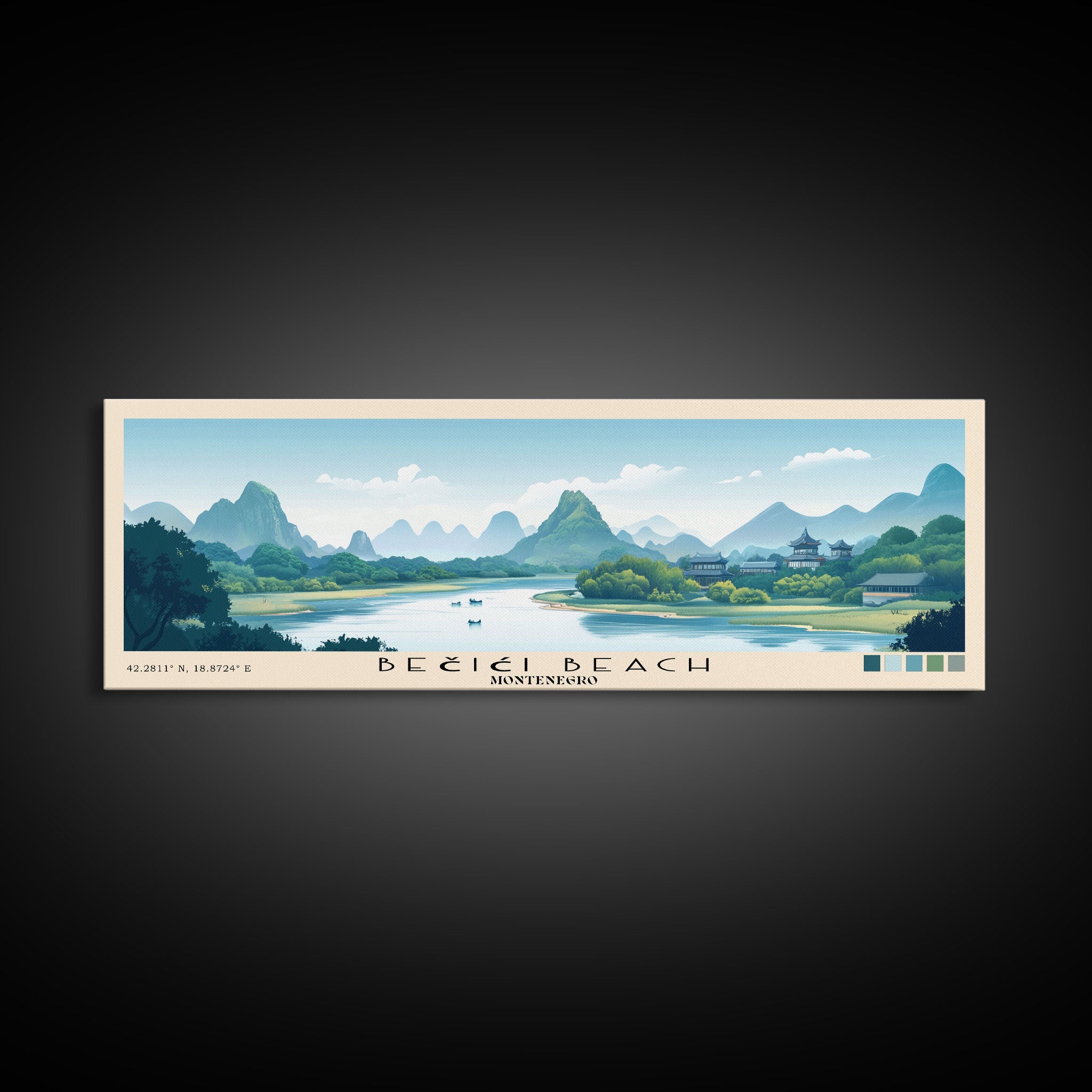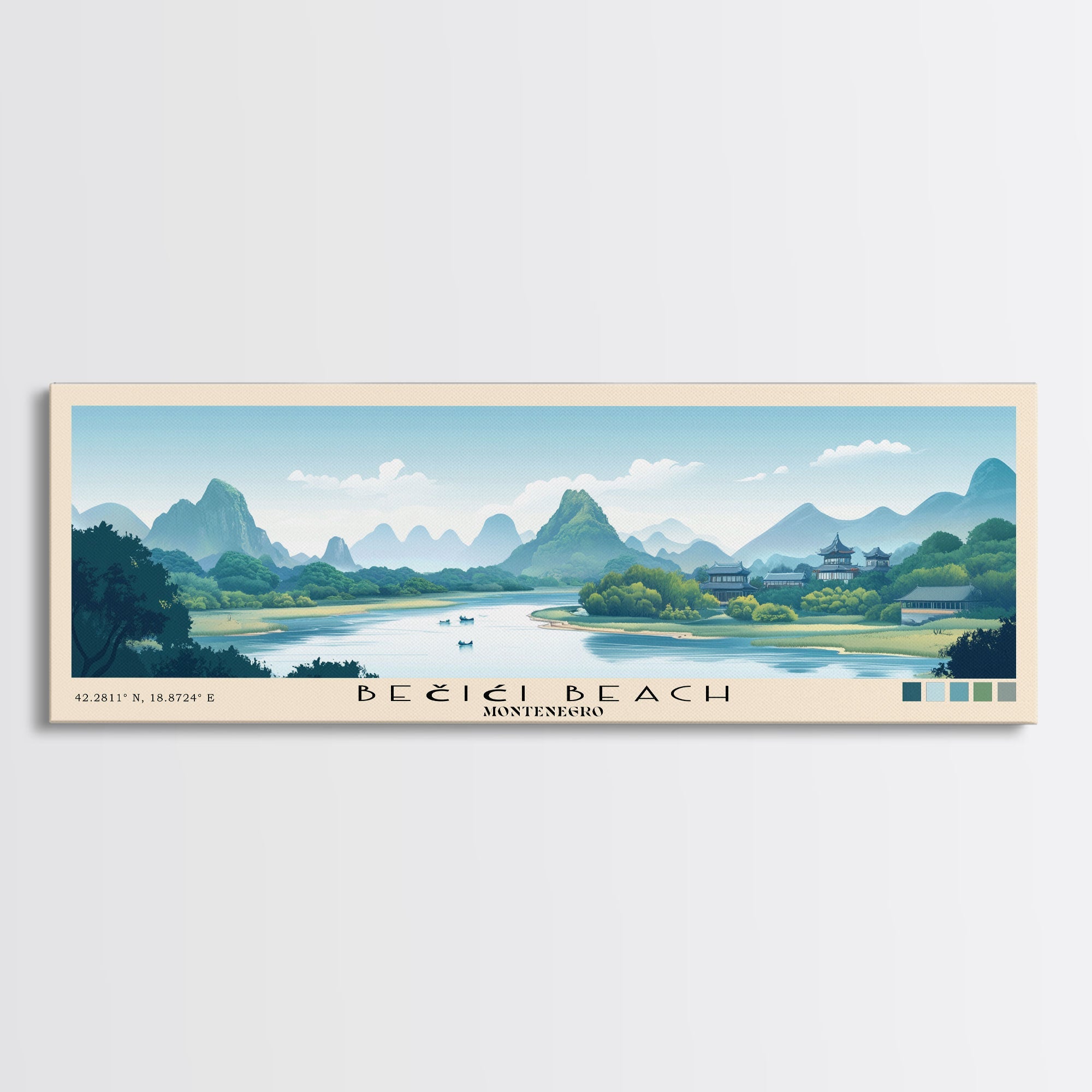 Bečići Beach, Montenegro Panoramic Print, Vacation Gift, Montenegro Wall Art, Beach Painting, Beach Decor, Beach Or Lakehouse Art