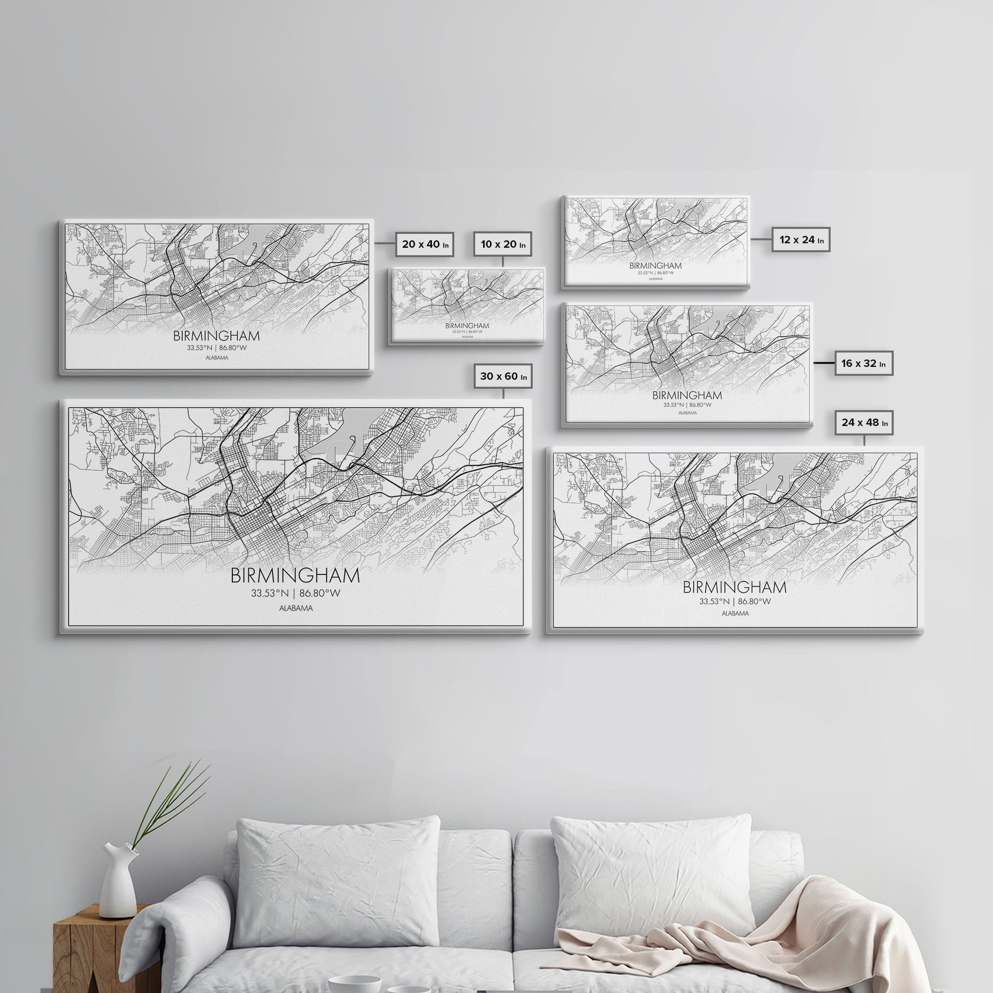 Birmingham Street Map, Alabama Map, Map Print, Modern Art, Wall Art, Canvas Print, Hometown Gifts, Entryway Décor, Farmhouse Wall Art