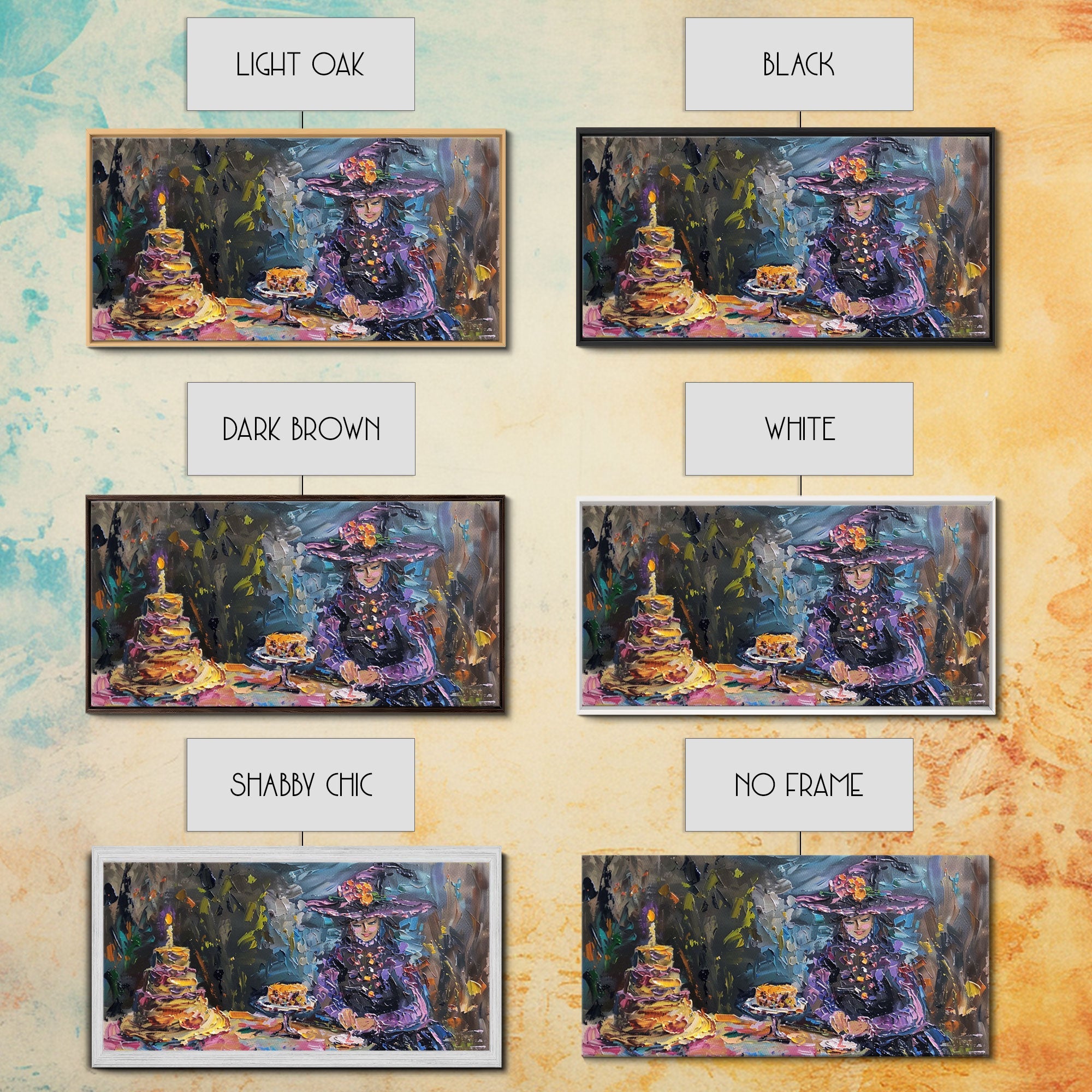 • Carregar imagem no visualizador da galeria, Birthday Party for One, Springtime Witch and A Birthday Cake, Framed Canvas Print, Funny Halloween Art