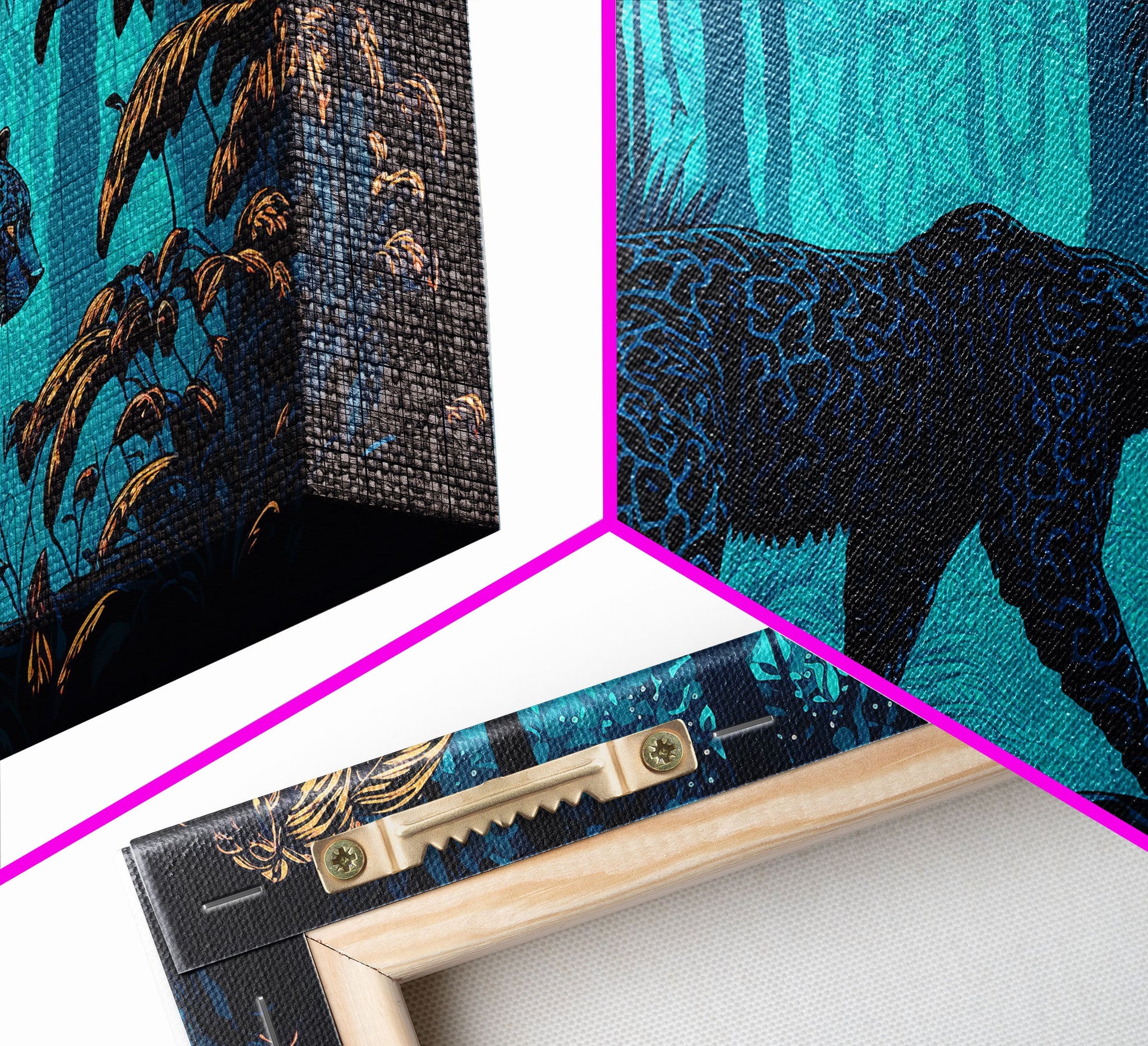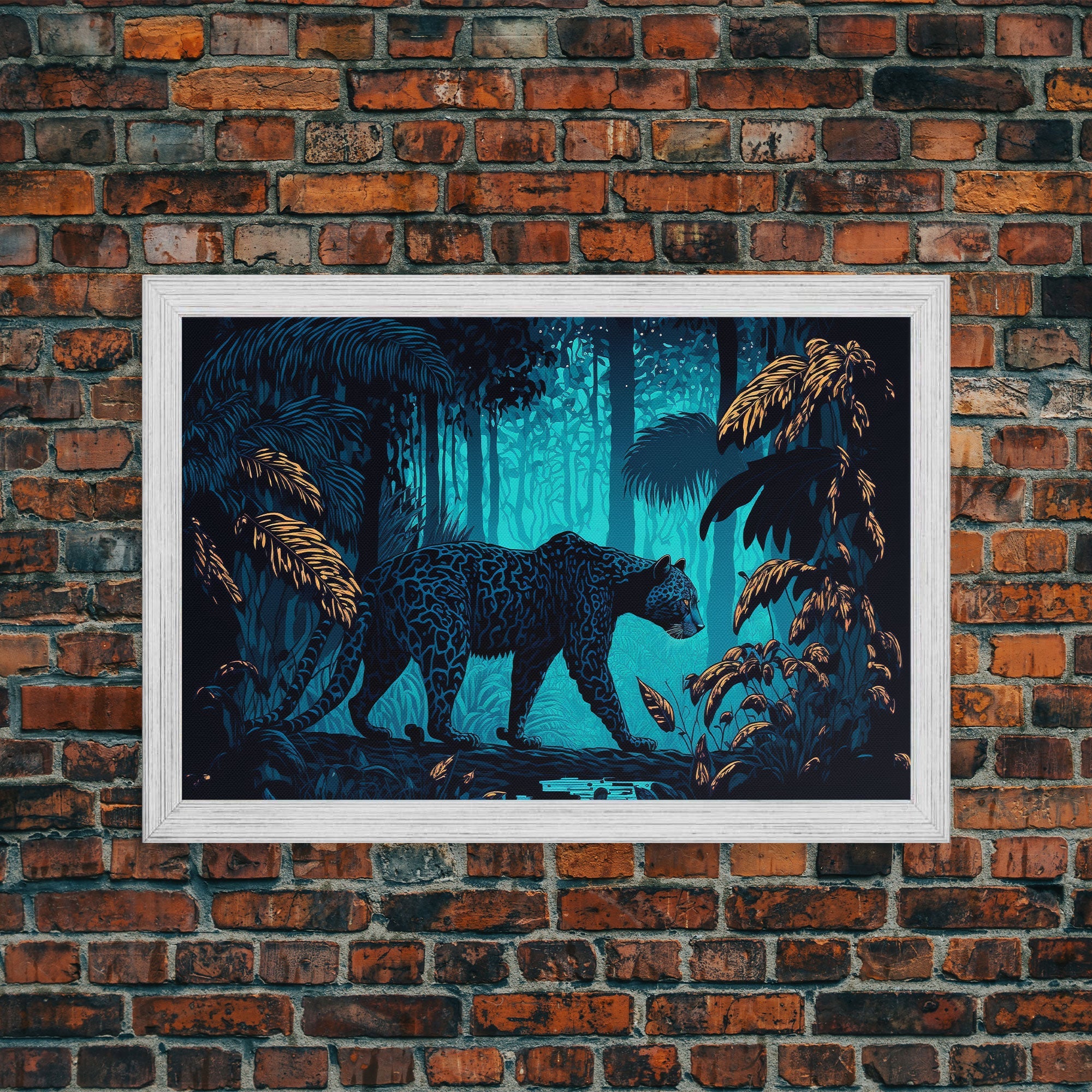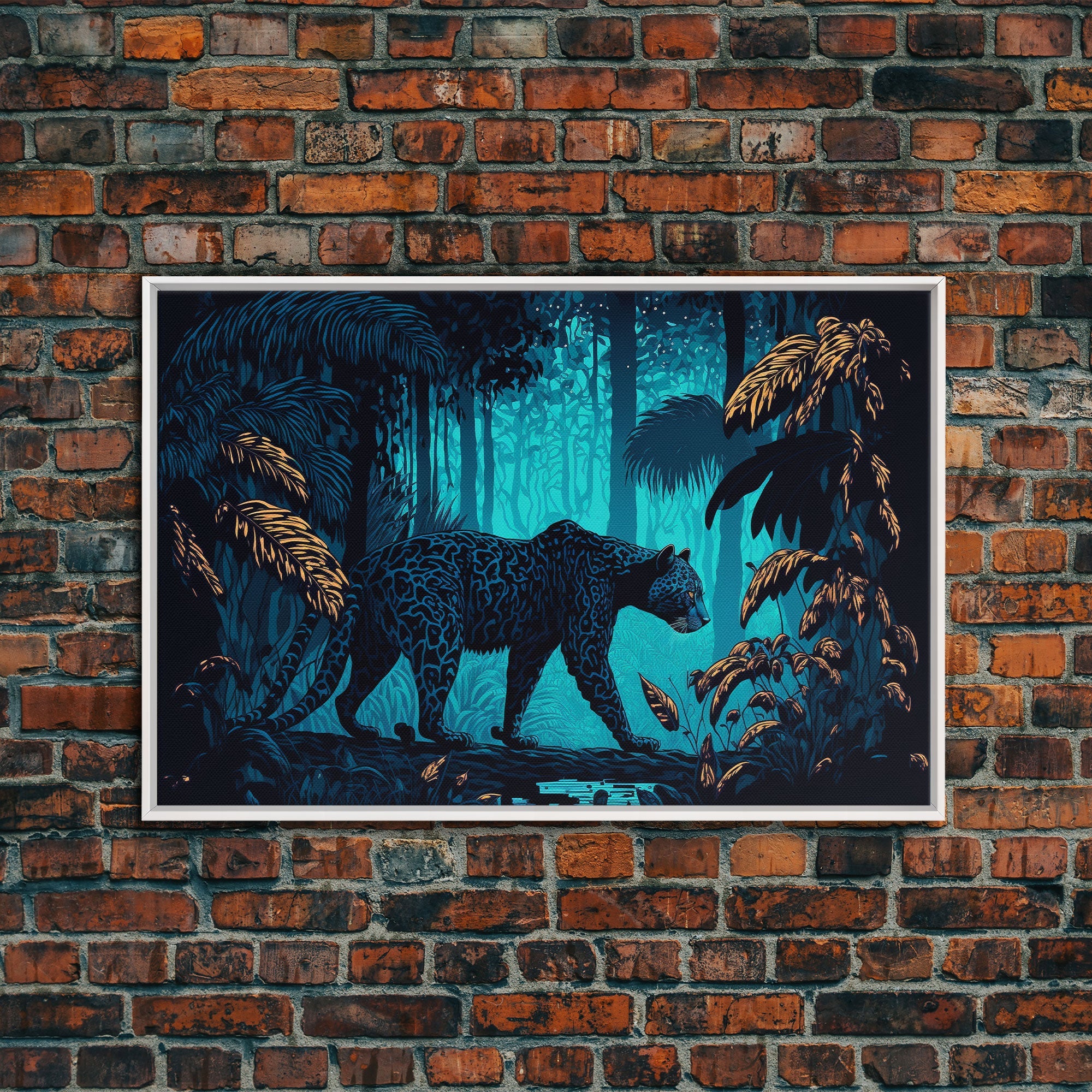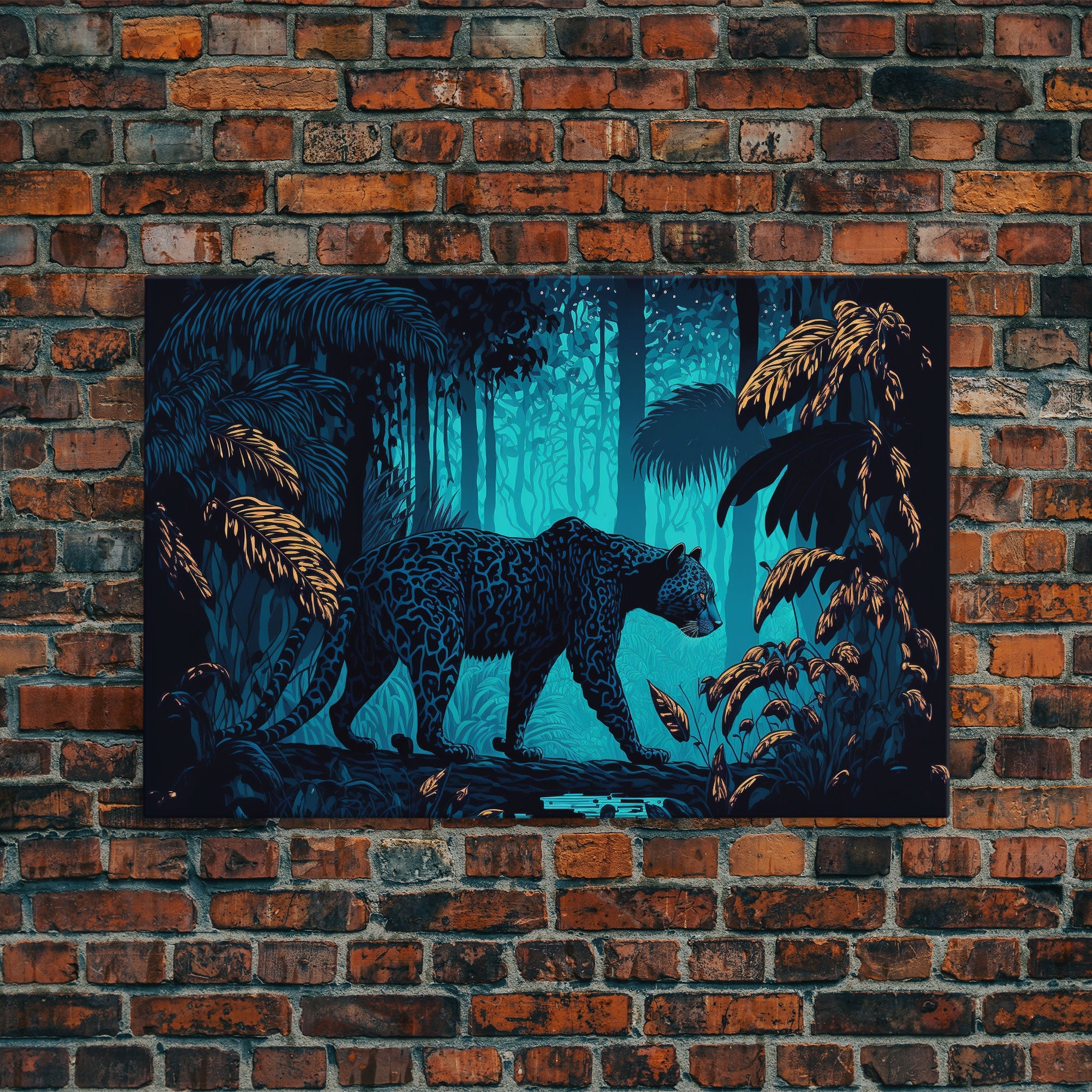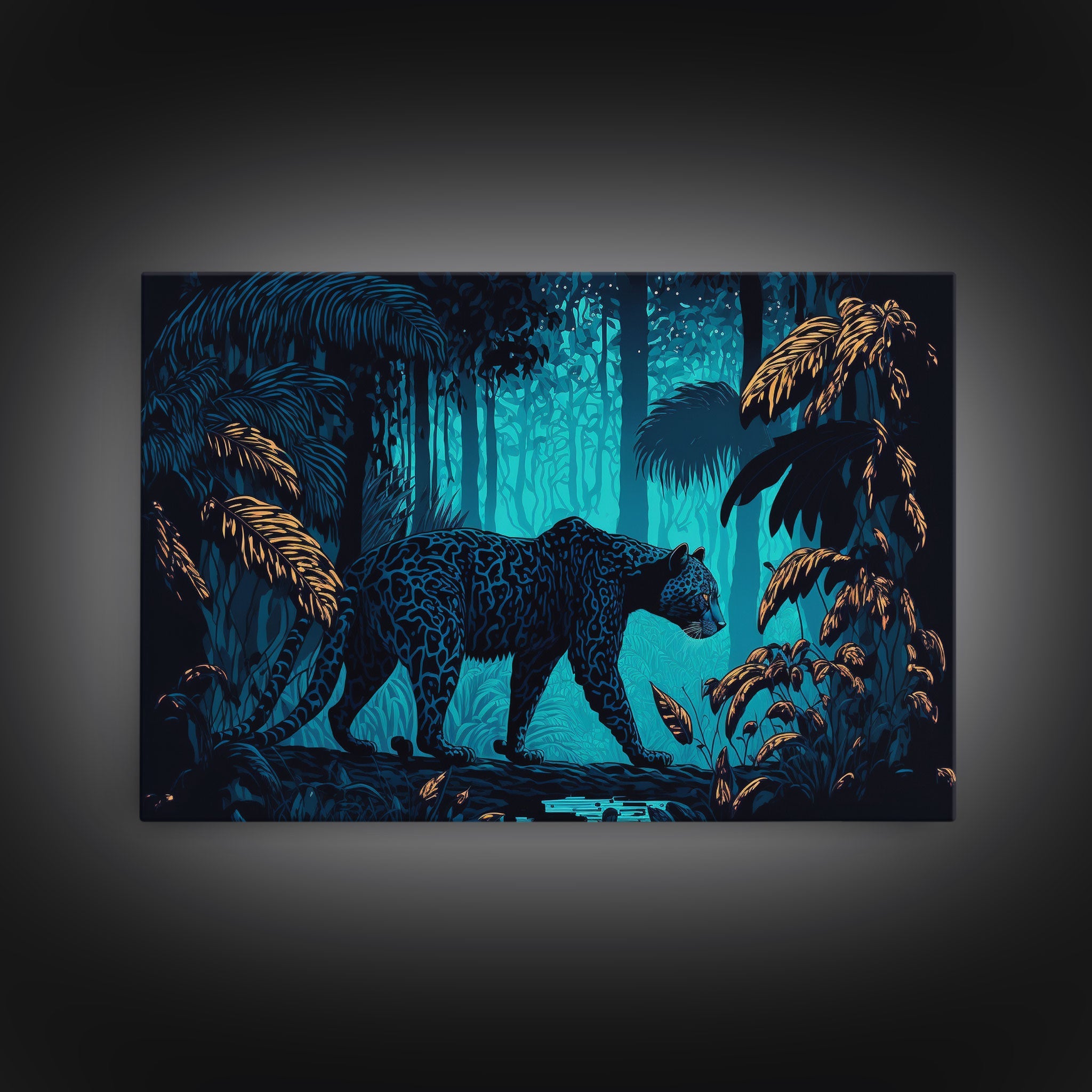 Black and Turquoise Panther, framed canvas print, unique wall art, wildlife canvas art, living room wall art
