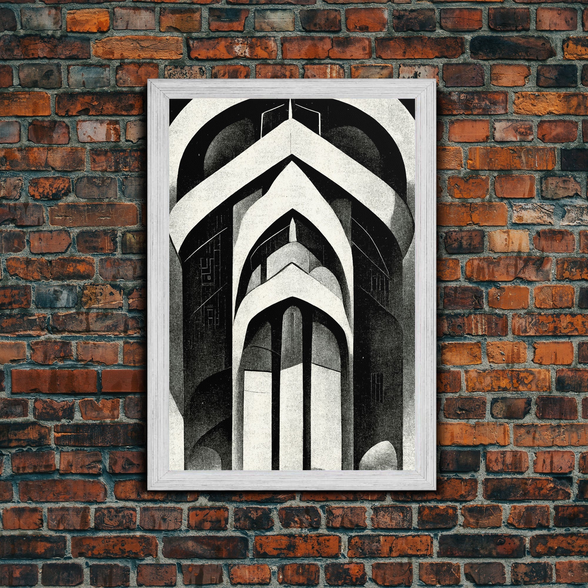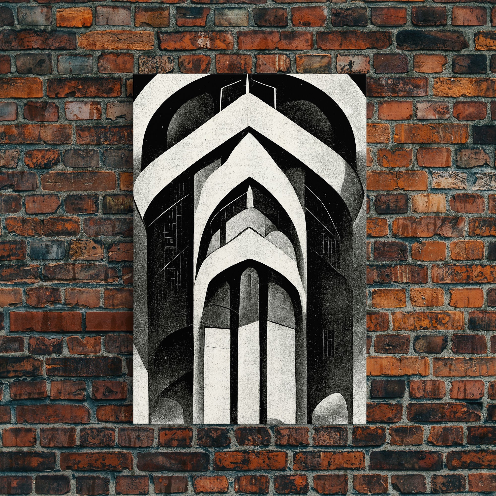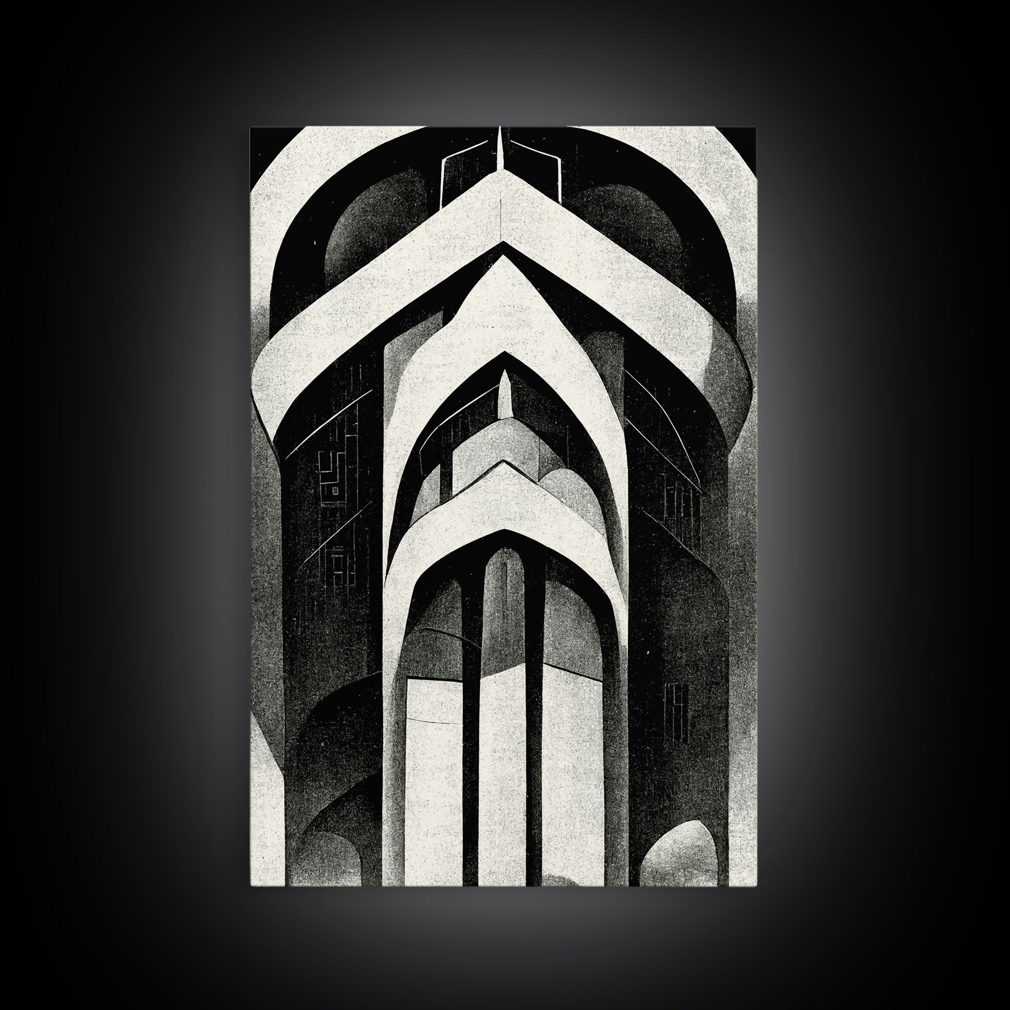 Black And White Art Print, Art Deco Architecture, Framed Canvas Print, Ready To Hang Framed Wall Art, Living Room Wall Hanging