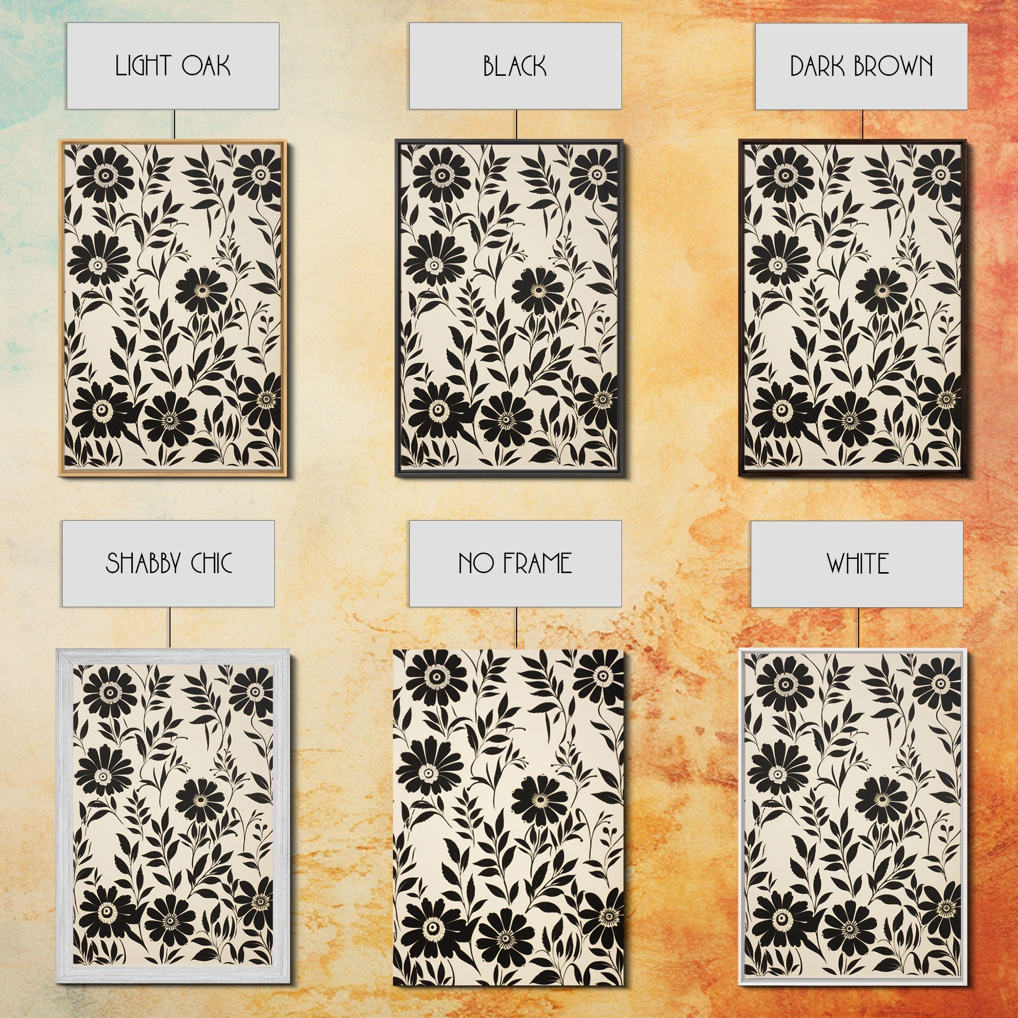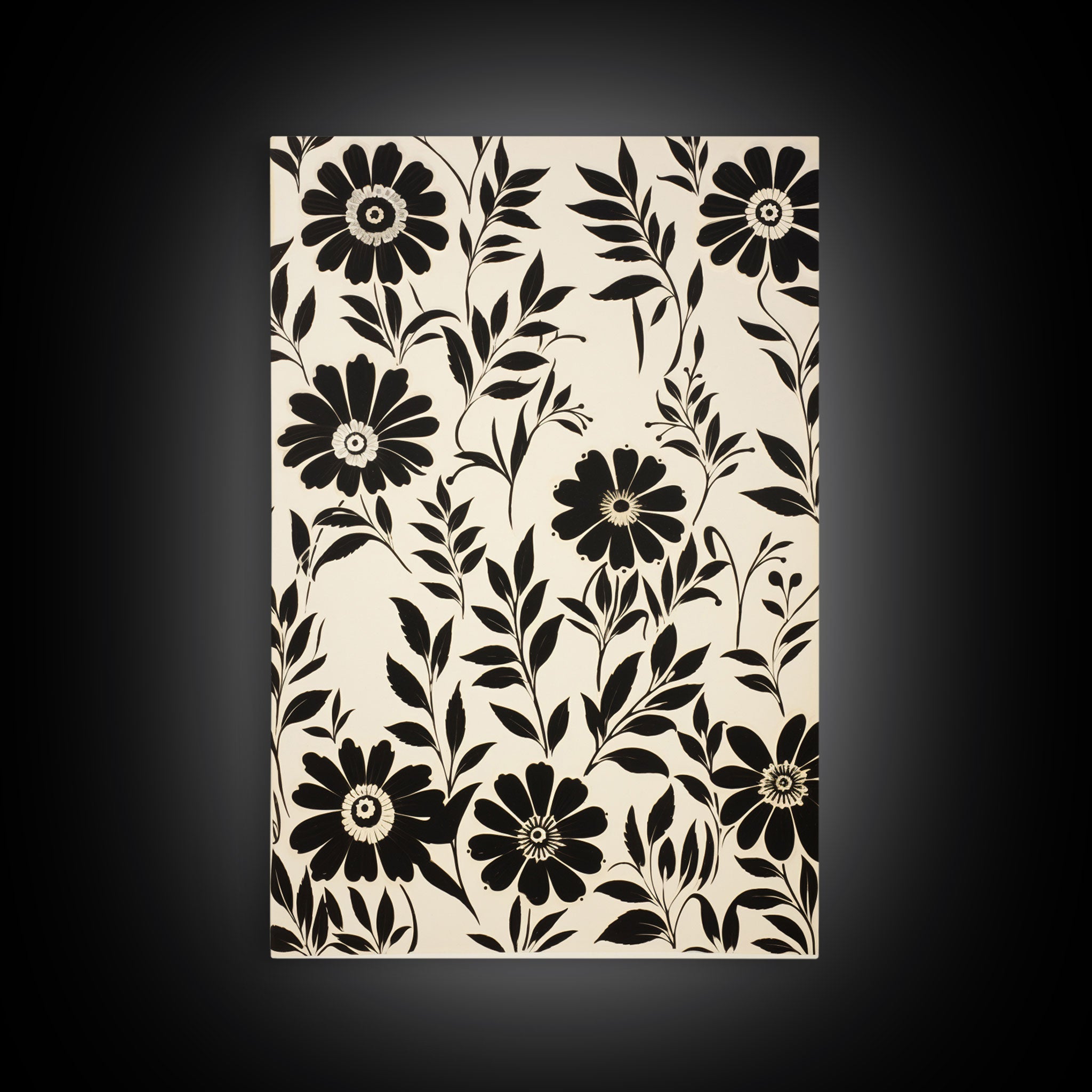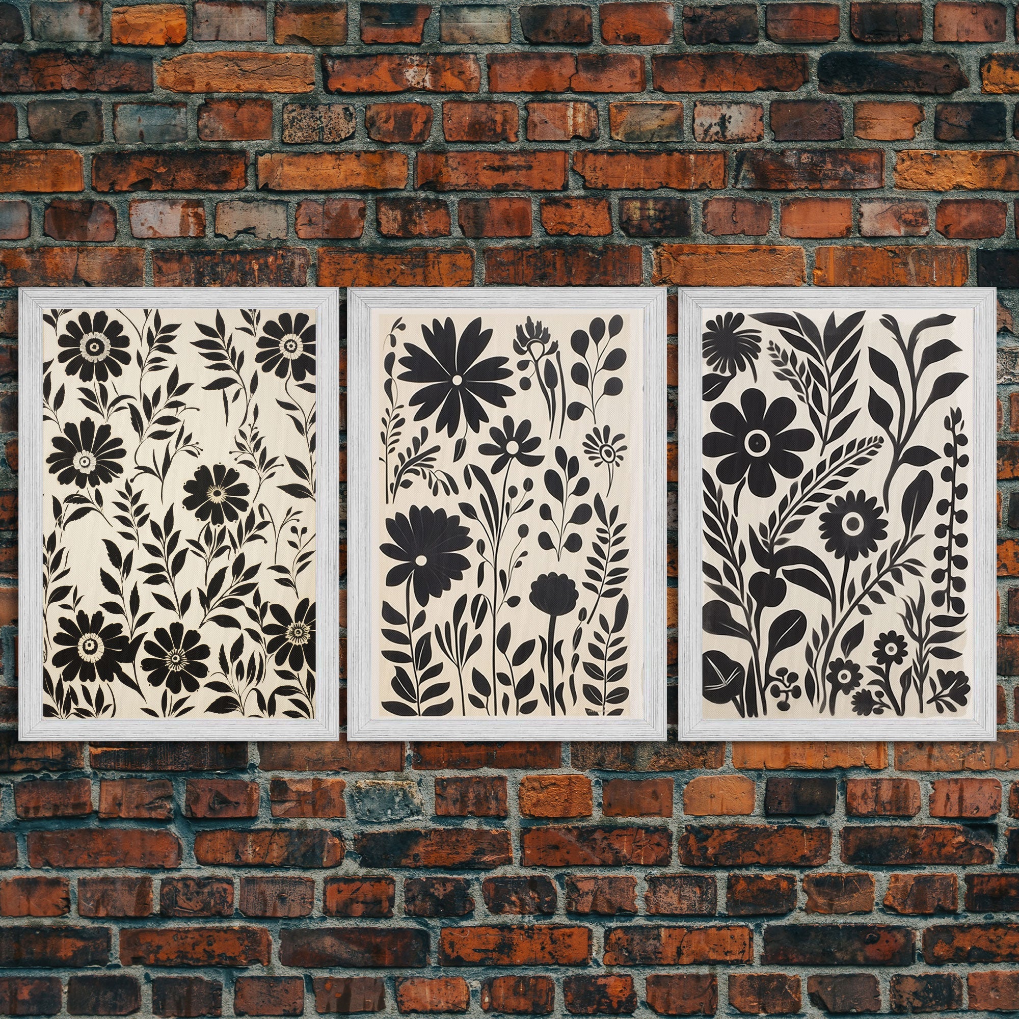 Black and White Floral Print, 3 Piece Framed Canvas Art, Boho Rustic Farmhouse Decor, Living Room Art, Minimalist Wall Art