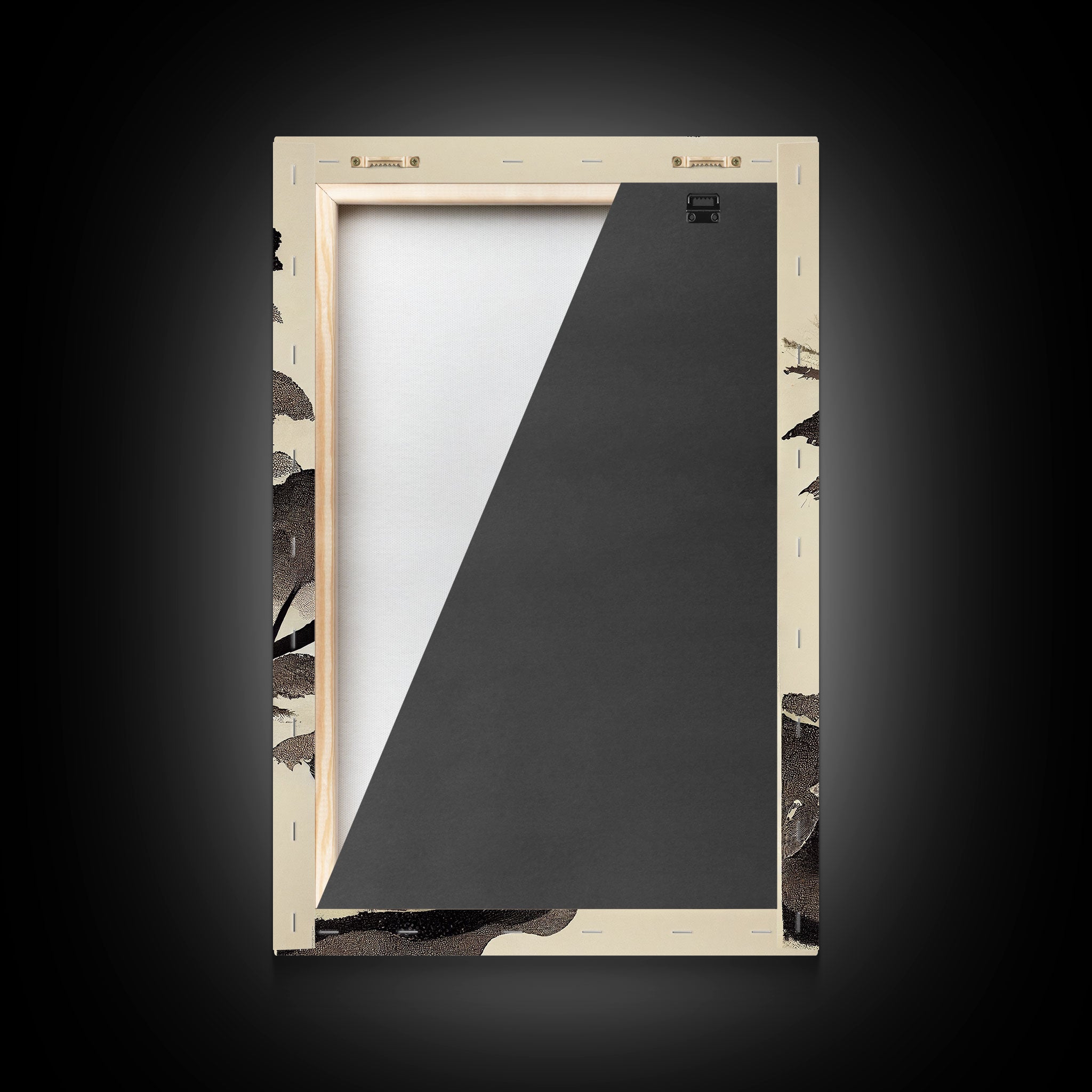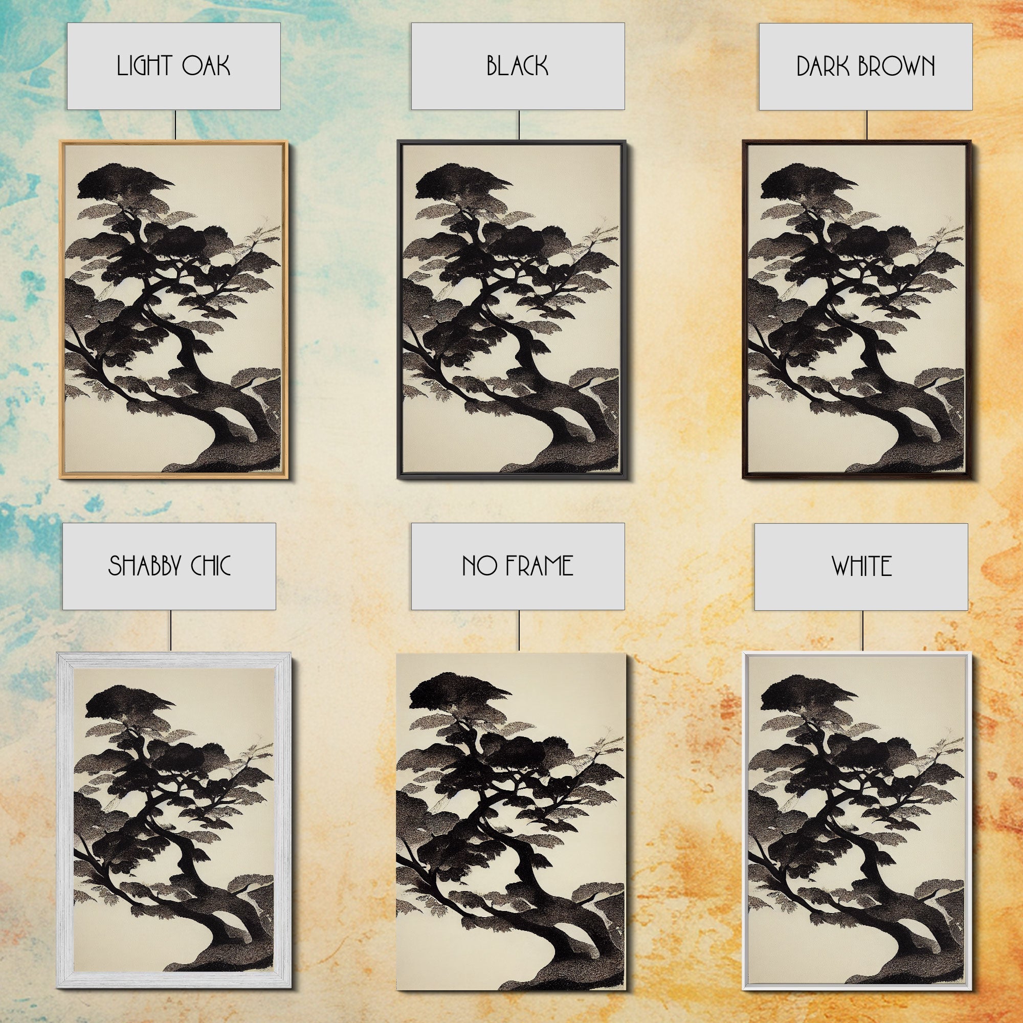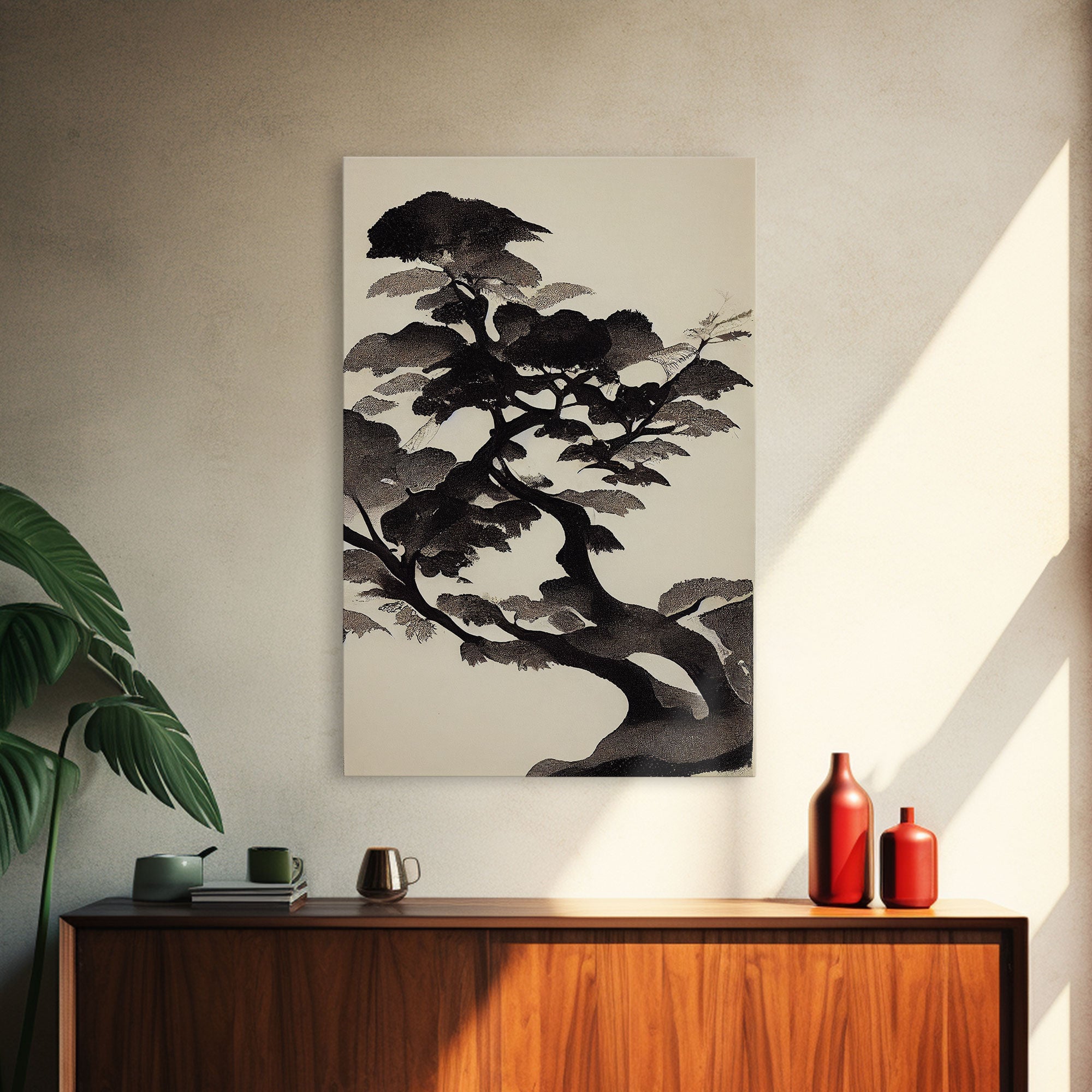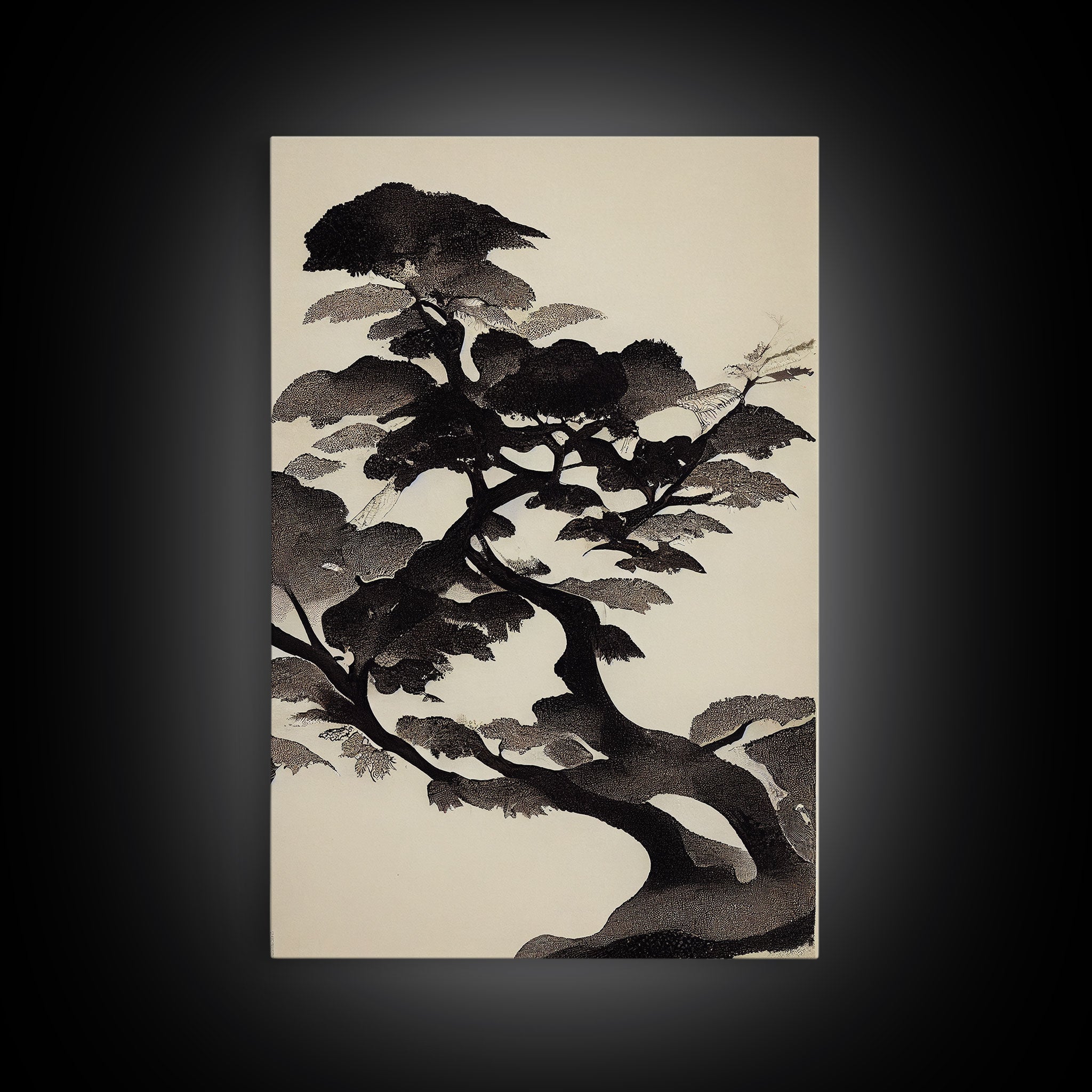 Black and White Japanese Maple Tree, Framed Canvas Print, Ready To Hang Framed Wall Art, Living Room Wall Hanging