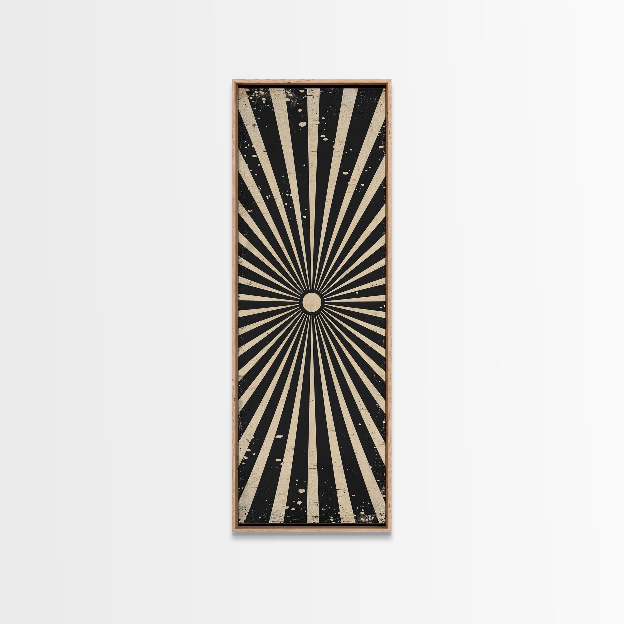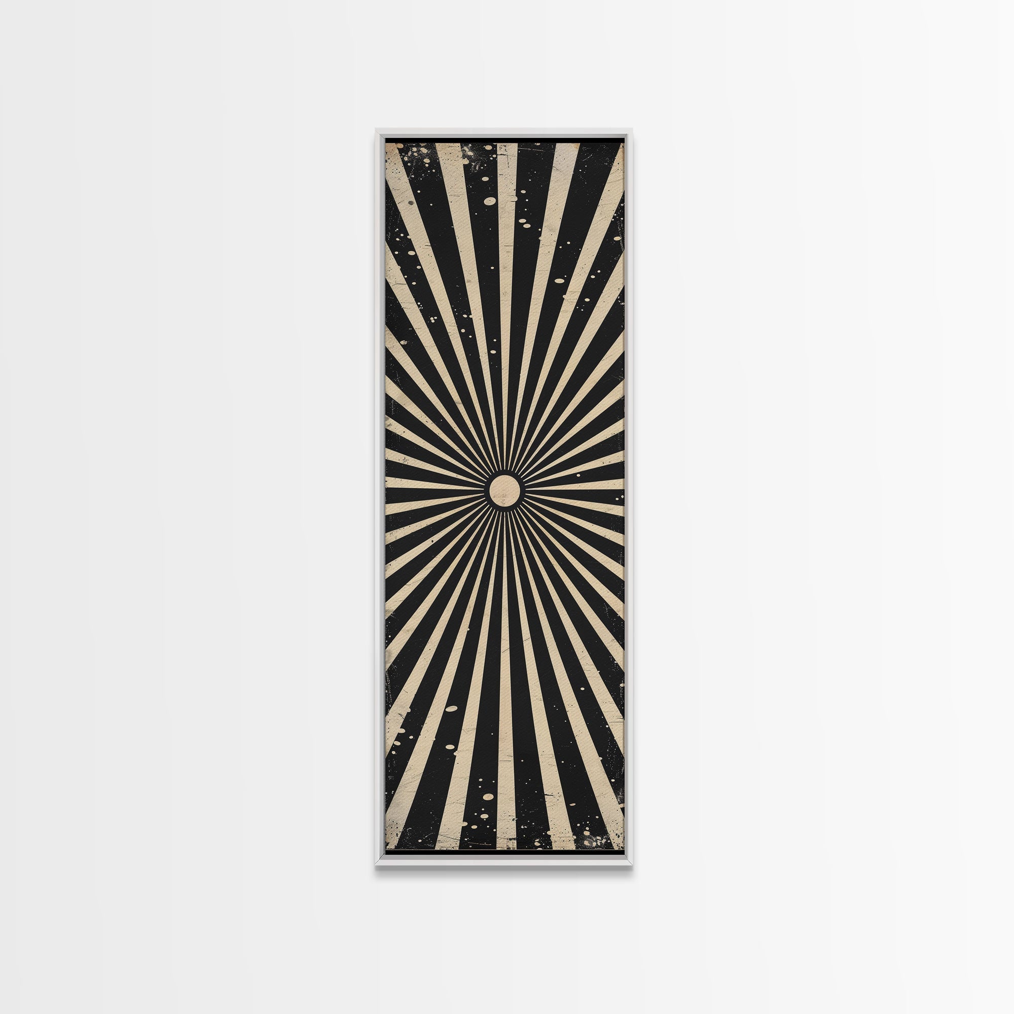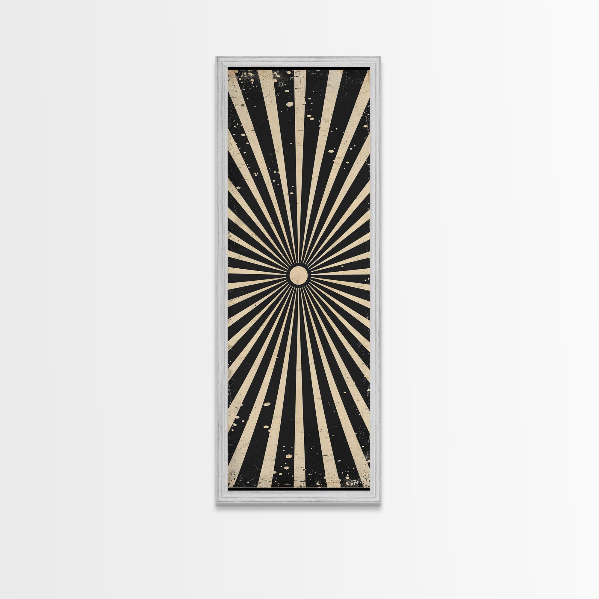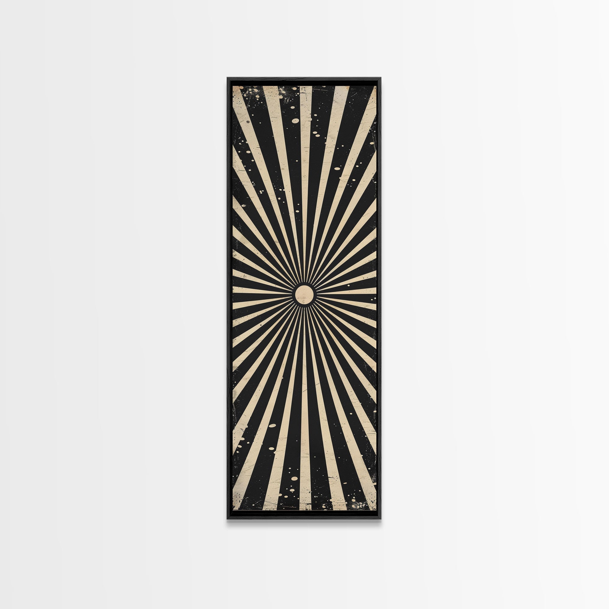 Black and White Sun Burst Art Deco Inspired Framed Canvas Print, Wall Art, Office or Mancave Wall Art
