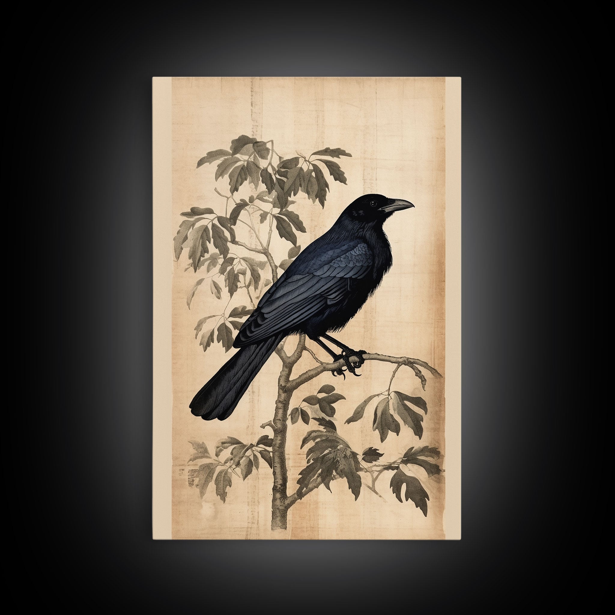 Black Bird Wall Art, Crow Wall Decor, Animal Wall Art, Black Bird, Modern Print, Wall Decor, Canvas Print, Wall Art, Framed Canvas