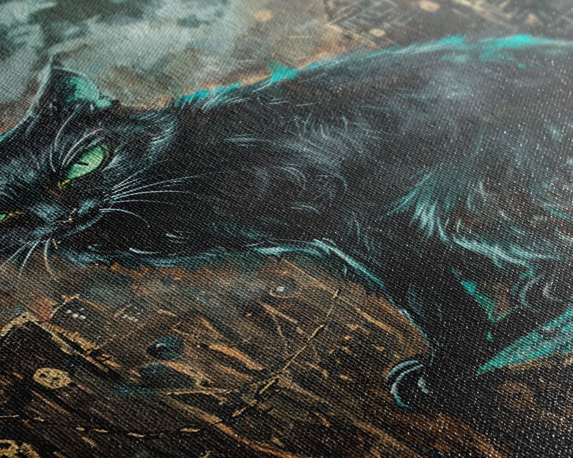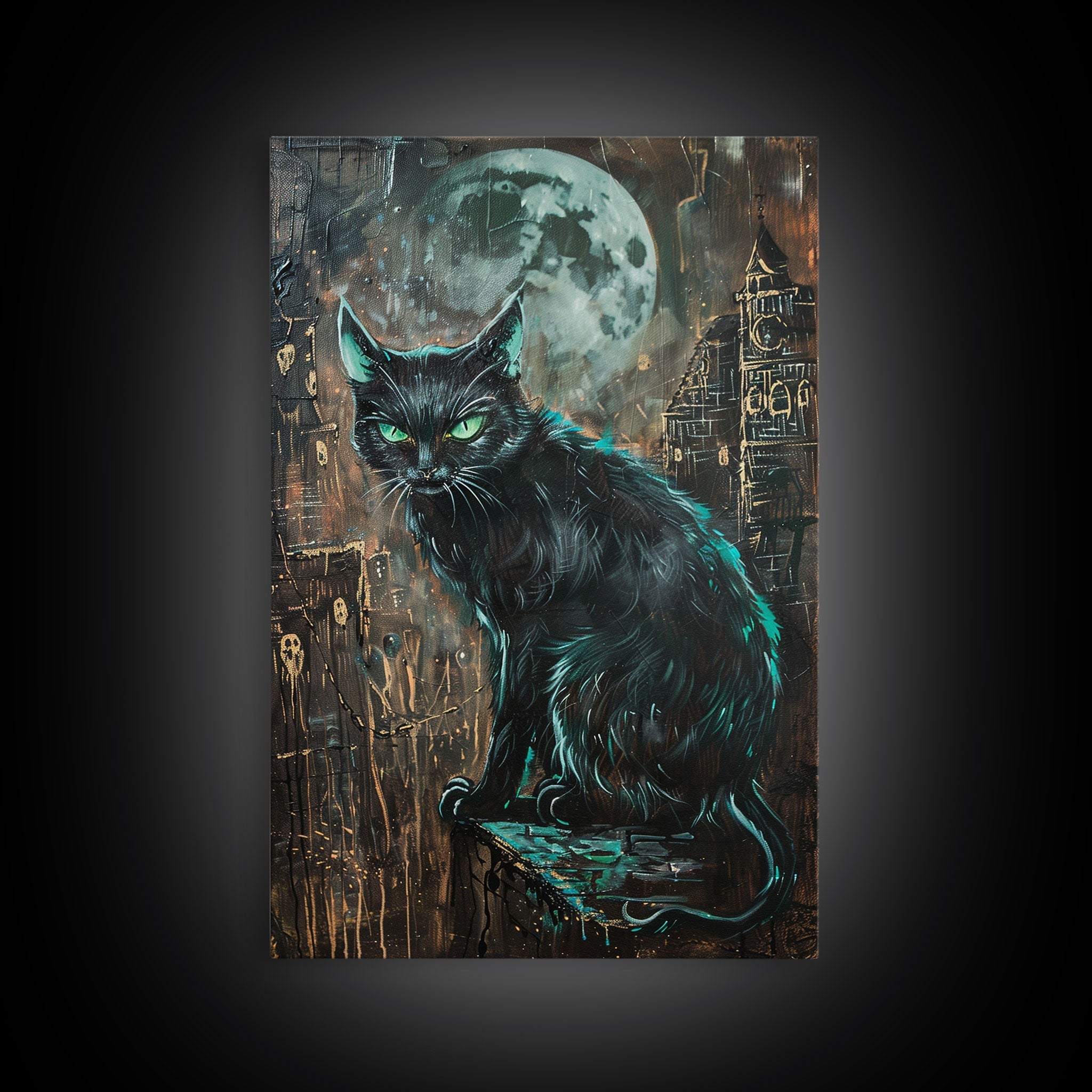 Black Cat with Piercing Green Eyes, Framed Canvas Print, Spooky Cat Art, Witchy Feline Decor, Halloween Wall Art, Gothic Cat Decor