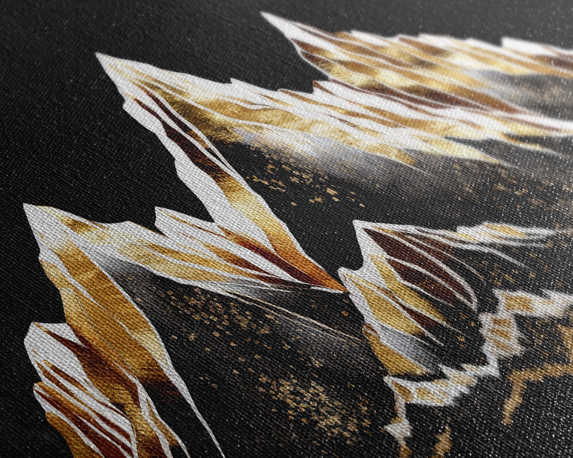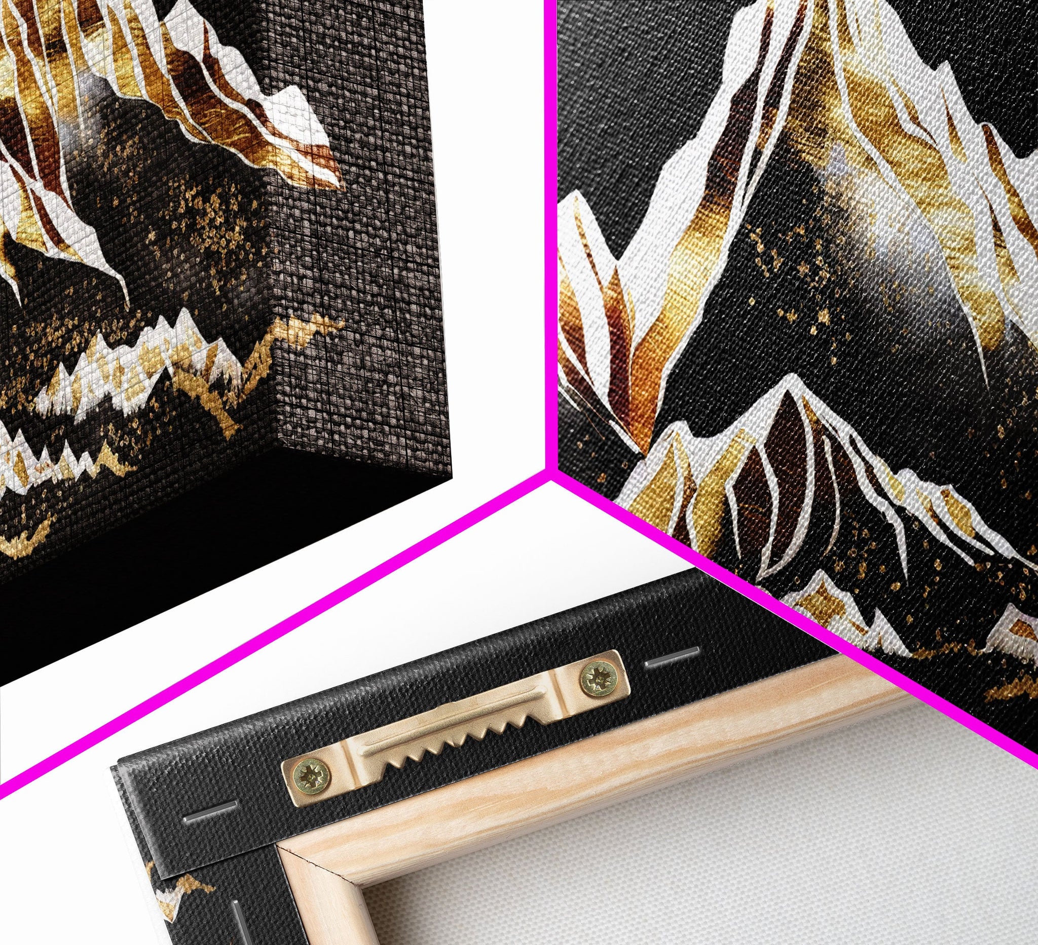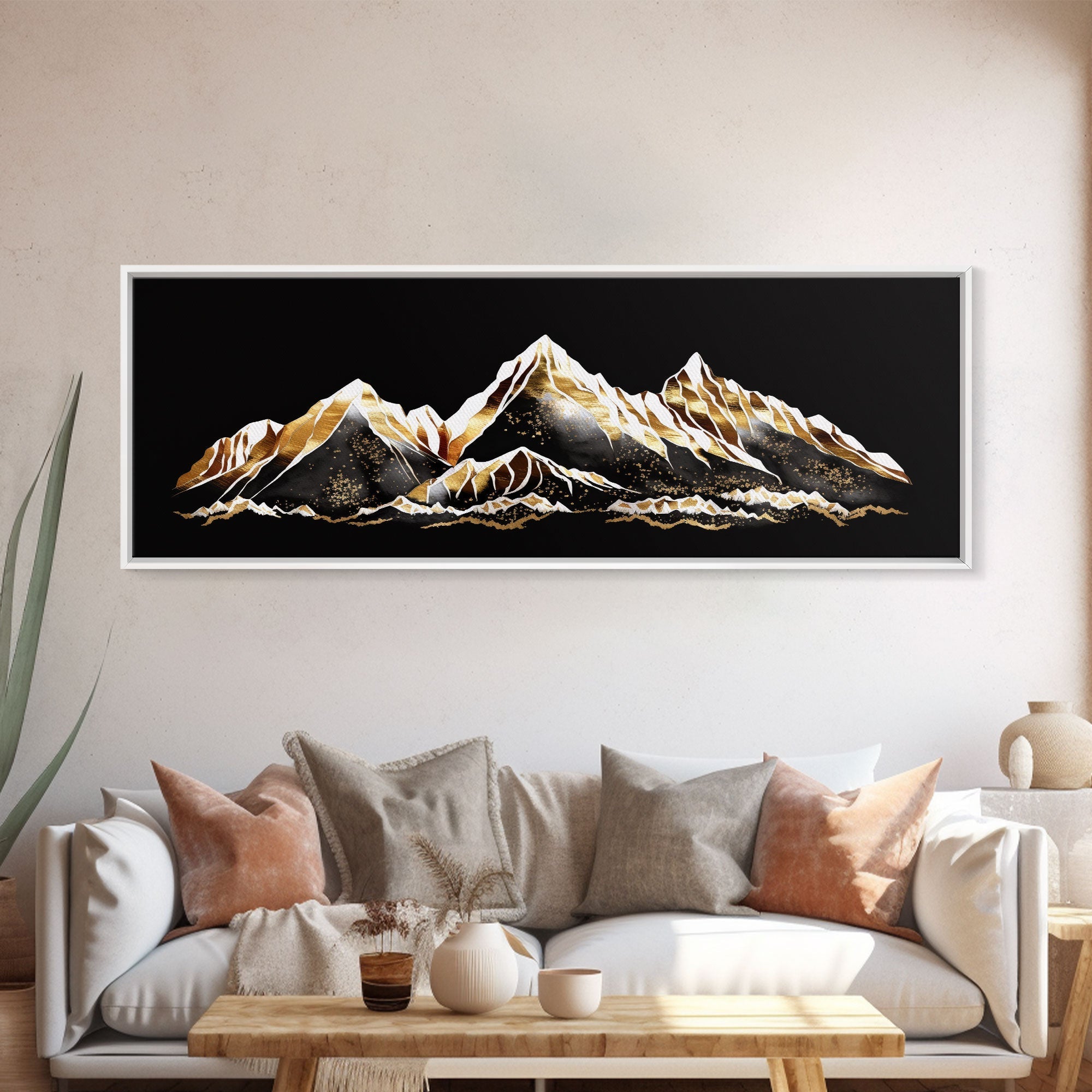 Black & Gold Mountain Landscape Painting, Framed Canvas Print, Panoramic Art, Extra Wide Art, Center Piece Decor, 24 x 72 Art, Huge Art