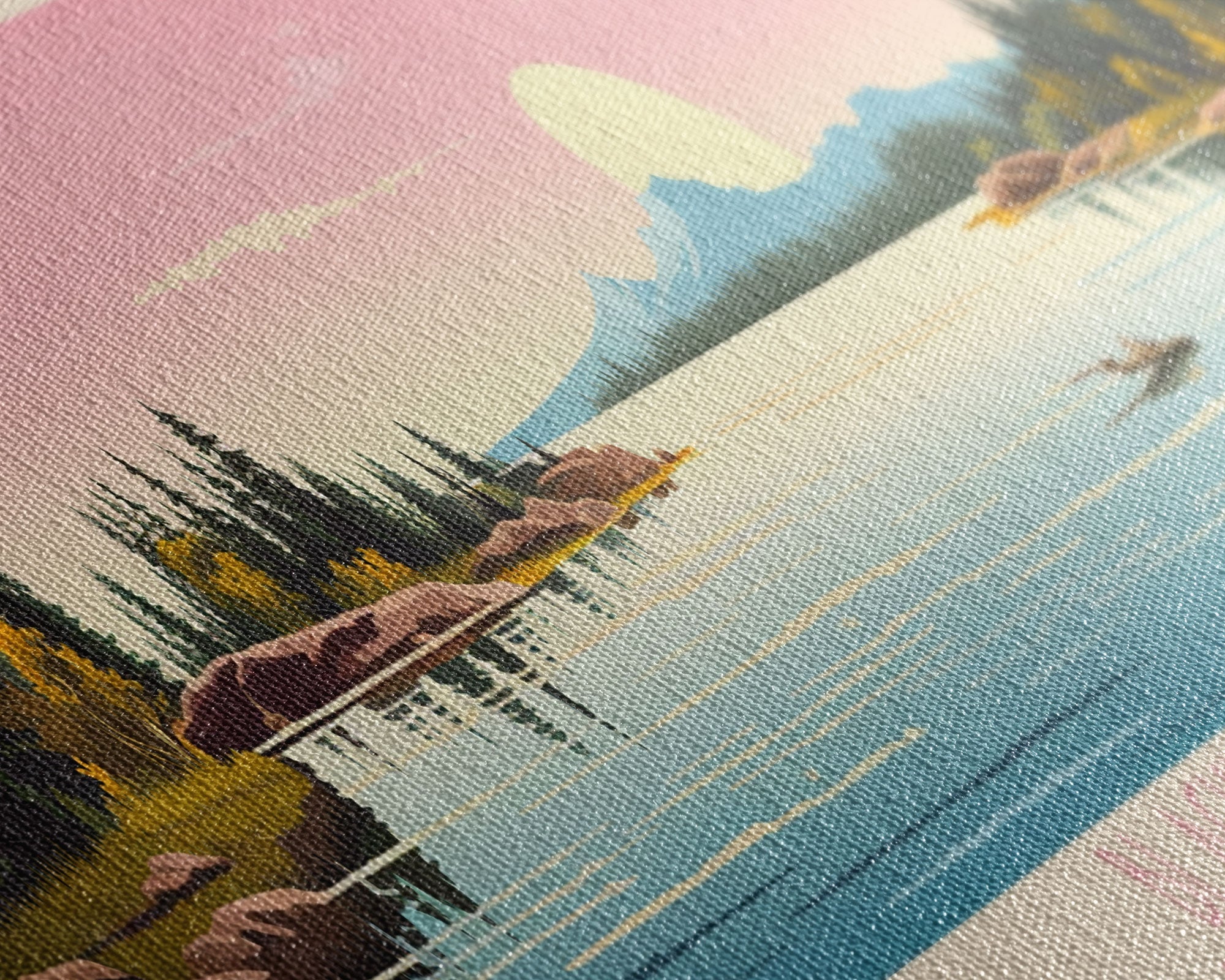 Blackwater Lake Northwest Territories Framed Canvas Print, Panoramic Wall Art, Midcentury Modern, Pop Art, Travel Poster, Scenic Living Room Art, Lake House Decor