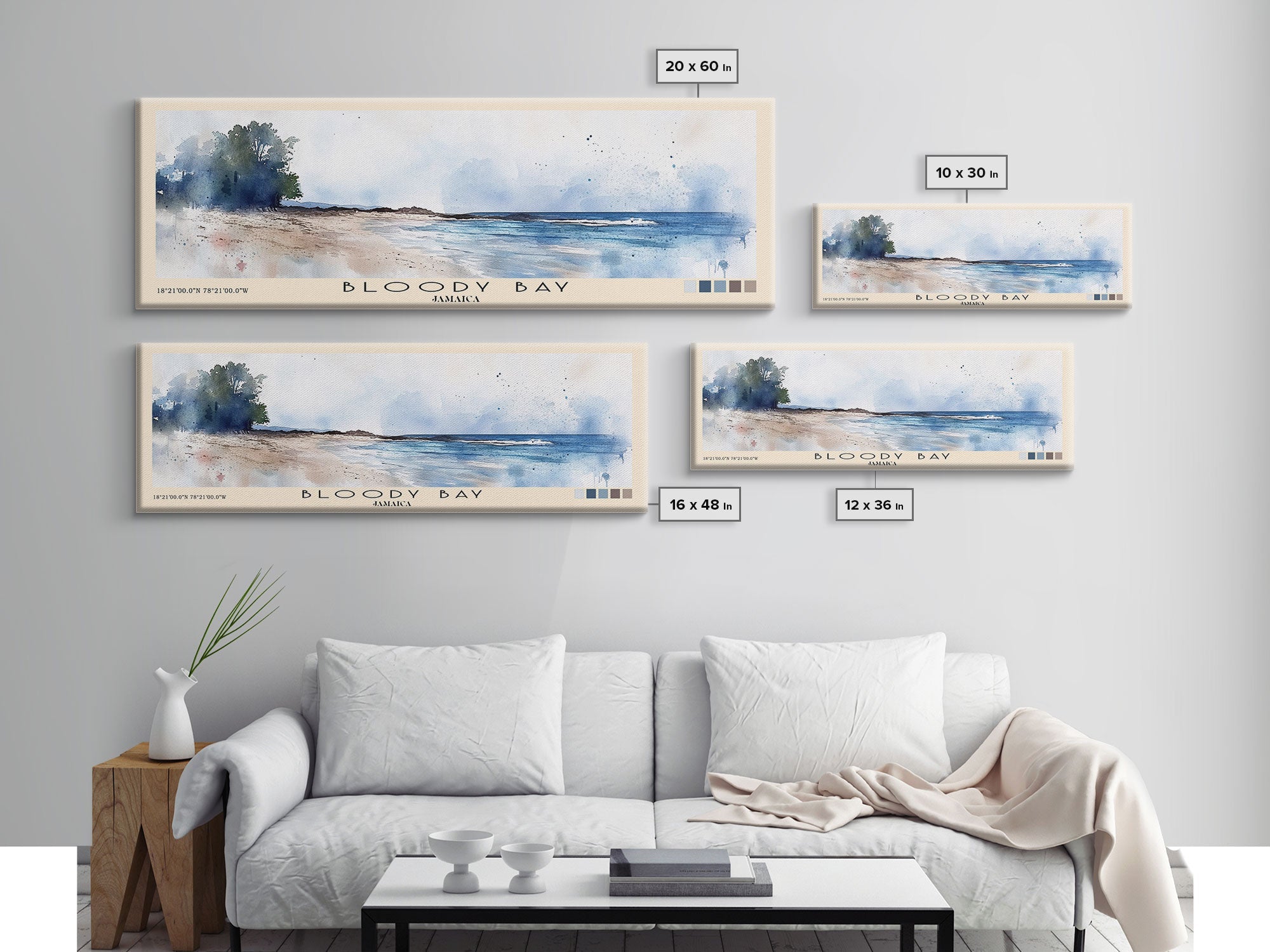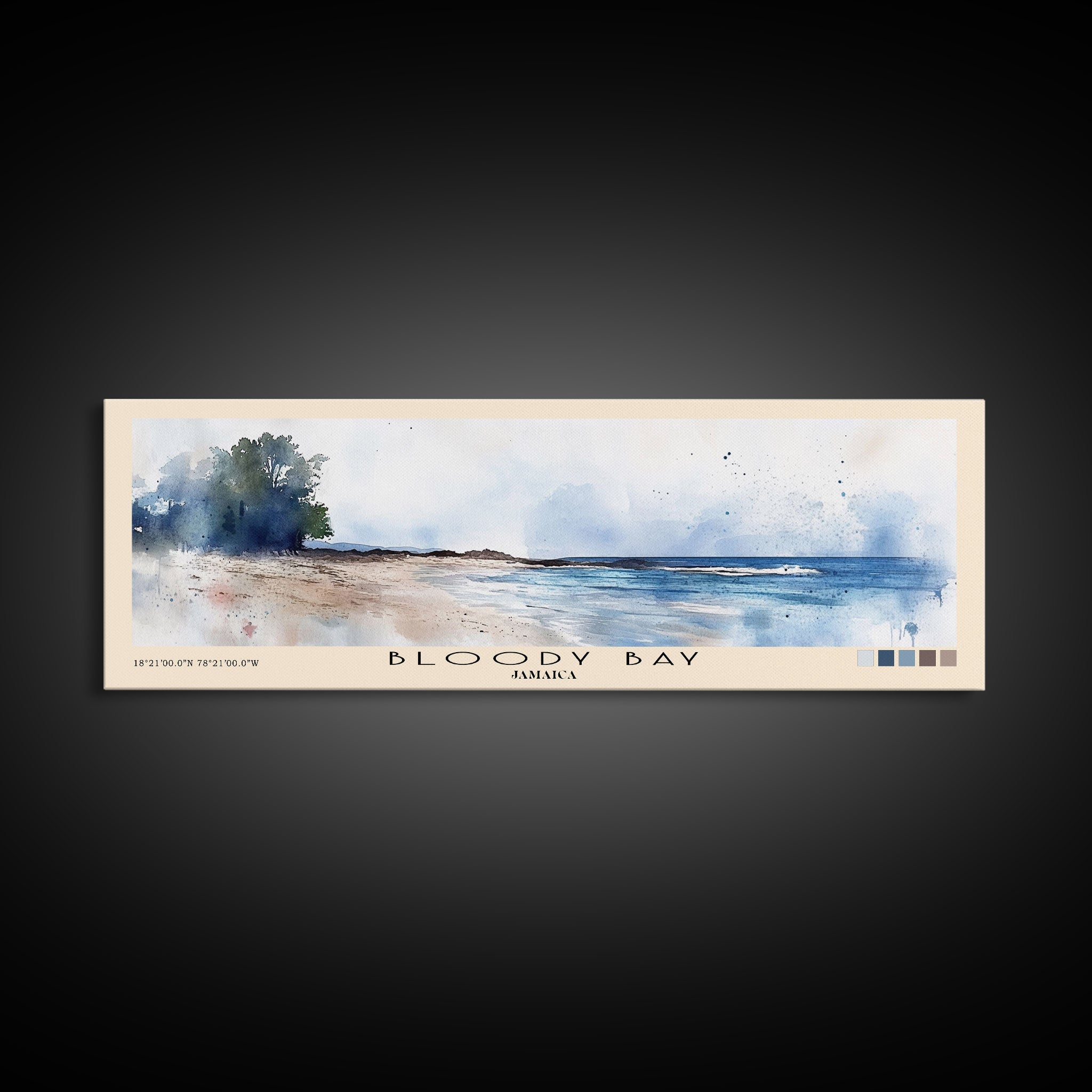 Bloody Bay, Jamaica Watercolor Beach Print, Vacation Gift, Jamaica Wall Art, Framed Canvas Print, Framed Beach Painting