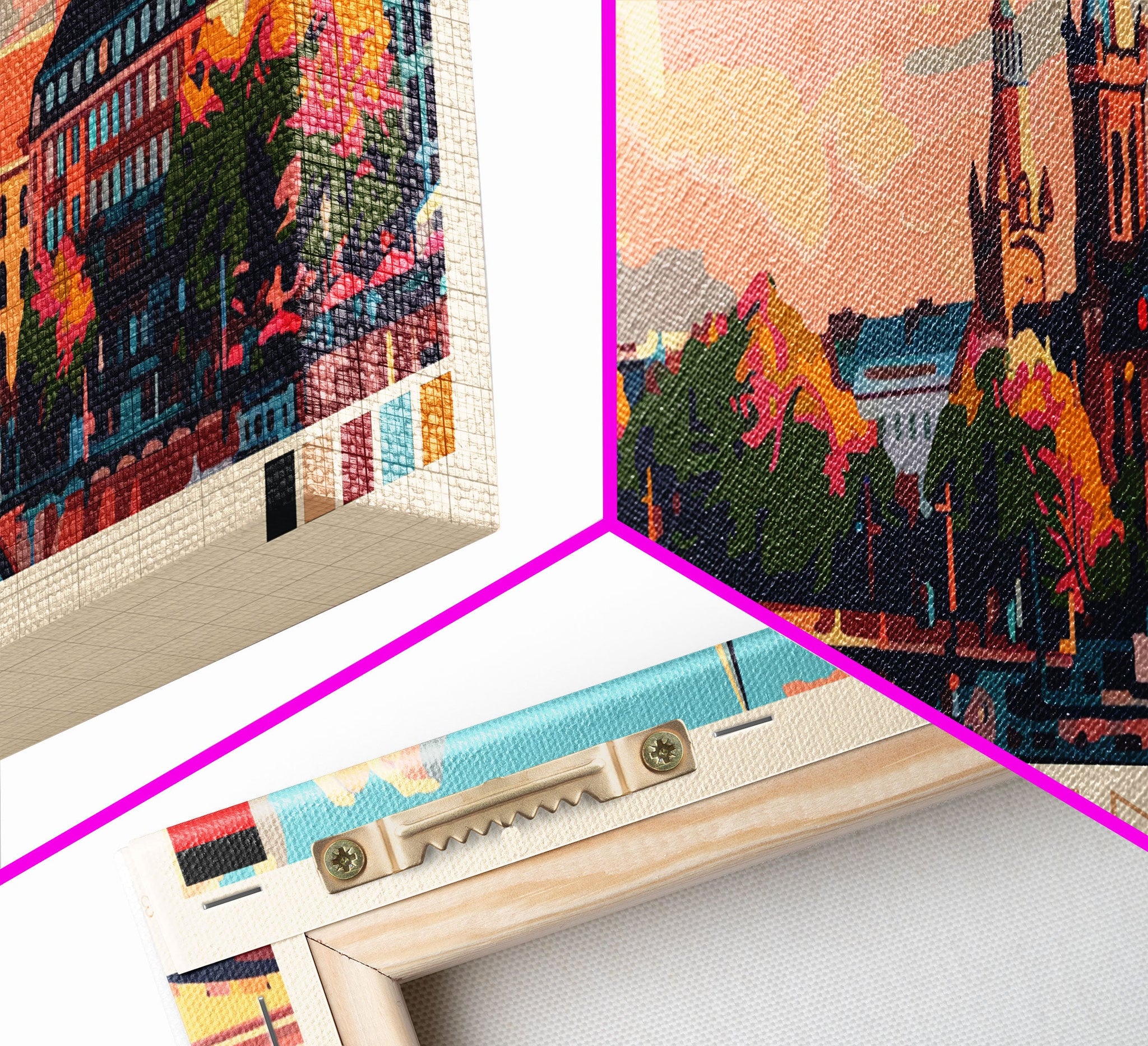 Hello and thank you for taking the time to view our modern high quality giclée artwork! We offer both posters and stretched canvas prints. Our posters are printed on Ultra Matte 60 lb / 230 GSM high quality photo paper, with a thickness of 10 mil. Our canvases are printed on museum grade 350 GSM canvas material with ECO friendly archival grade ink, then hand stretched and stapled over premium, FSC certified and shrink resistant frames. Designed and built to last a lifetime.