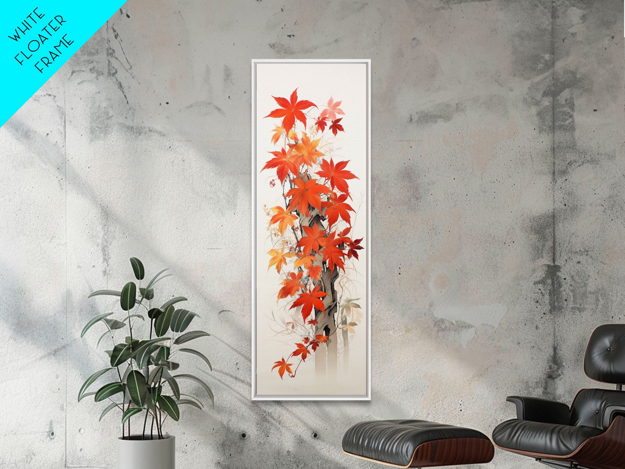 • Carregar imagem no visualizador da galeria, Brilliant Red Leaves On A Twisted Tree, Framed Canvas Print In Skinny Tall Style, Ideal For Feng Shui Wall Art In Japanese Style Art