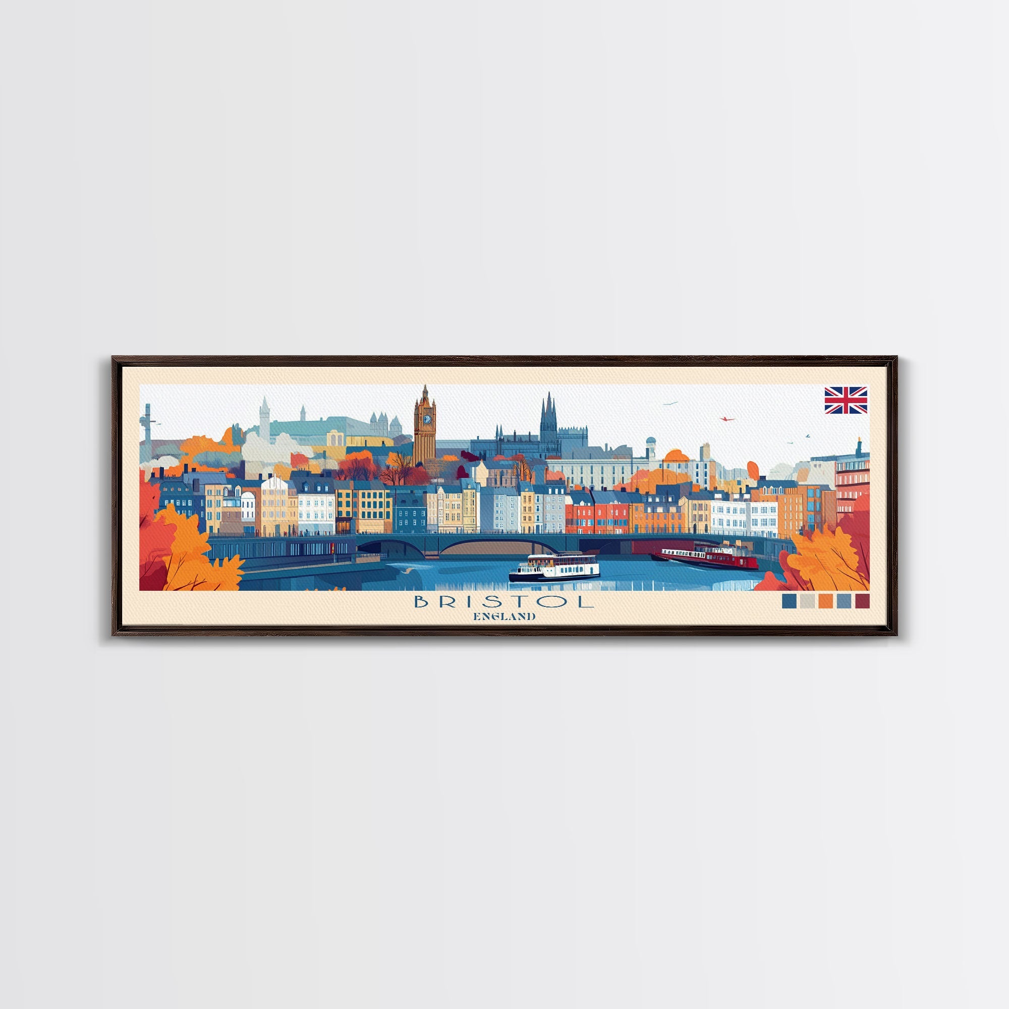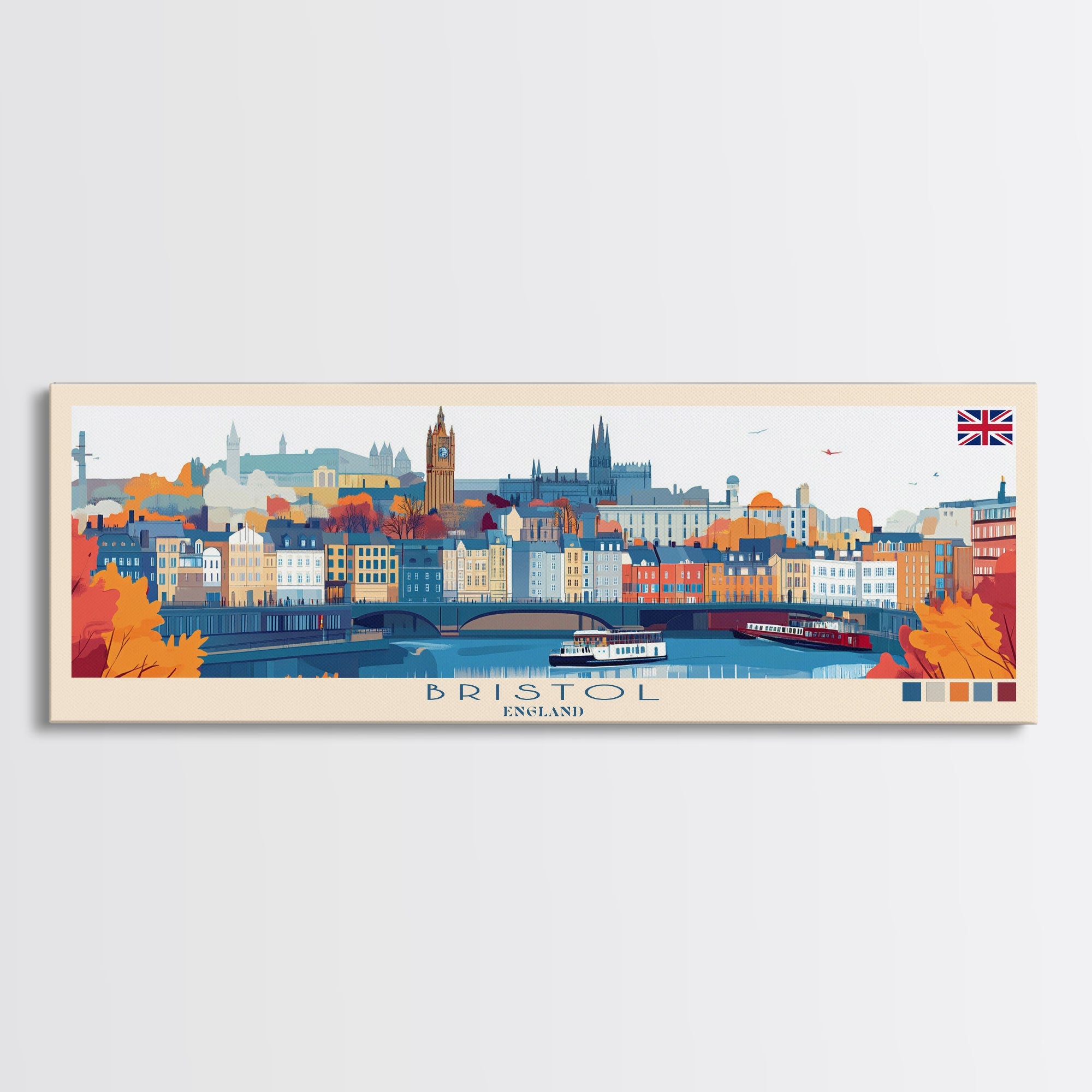 Bristol, England Panoramic Travel Poster Canvas Print, Bristol, England Painting, England Art, Bristol Panoramic Travel Art, Travel Painting