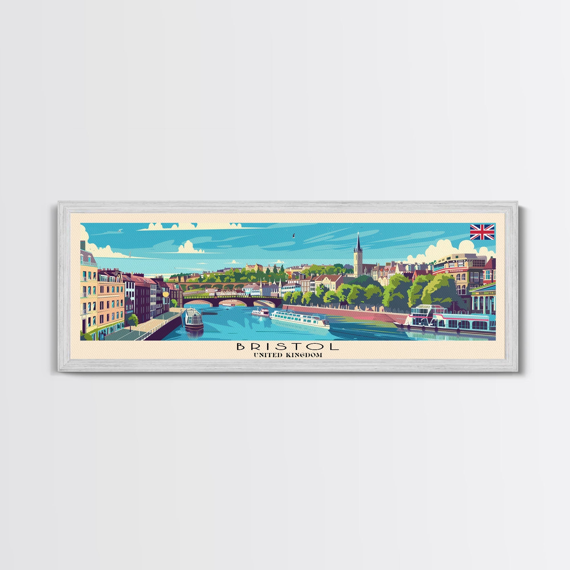 Bristol United Kingdom Panoramic Travel Poster, Framed Canvas Print or Metal Wall Art, Travel Art, Home Decor, Panoramic Painting, Midcentury Art