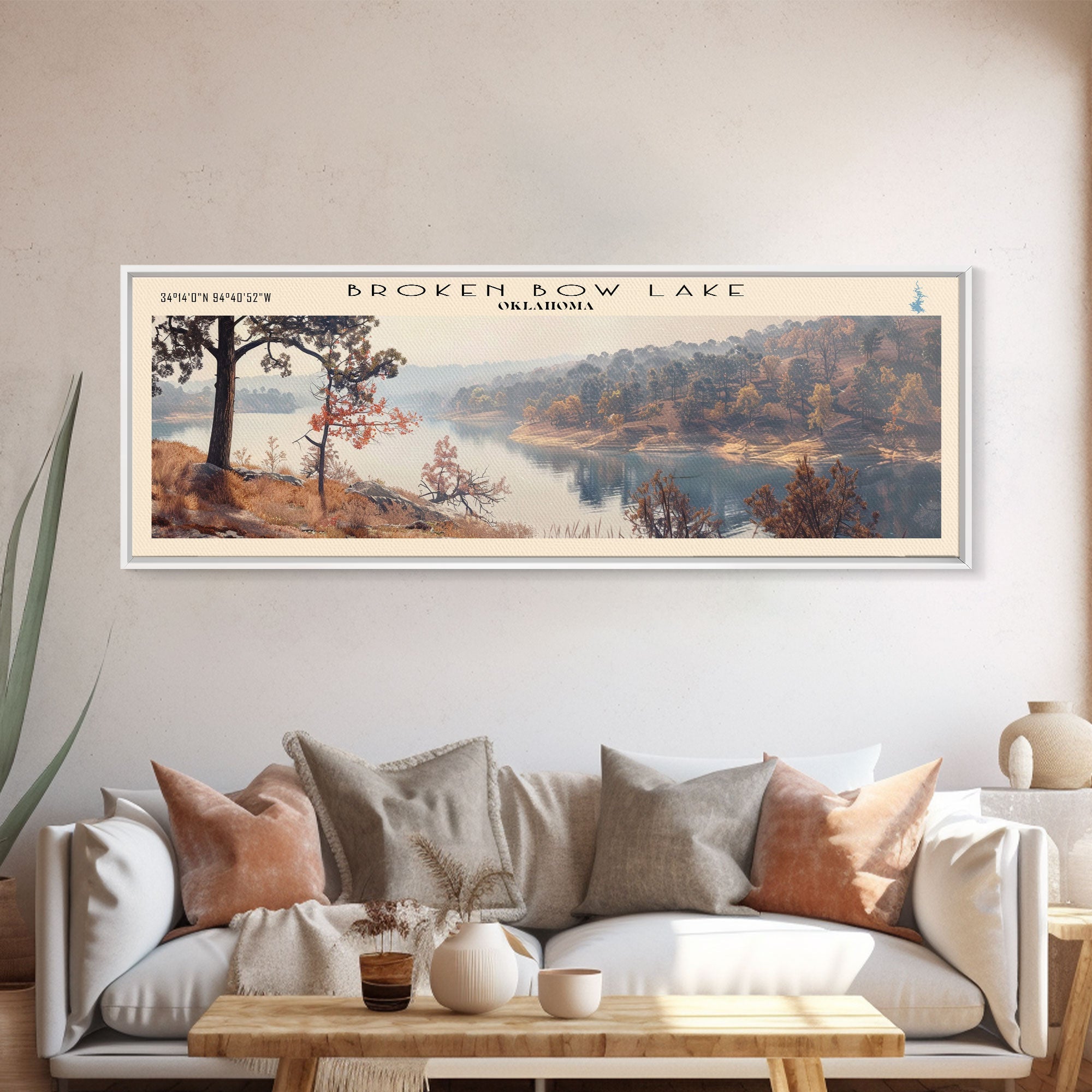 Broken Bow Lake Oklahoma Framed Canvas Print, Panoramic Lake House Art, Wall Art, Travel Poster, Modern Lake Painting, Nature Art