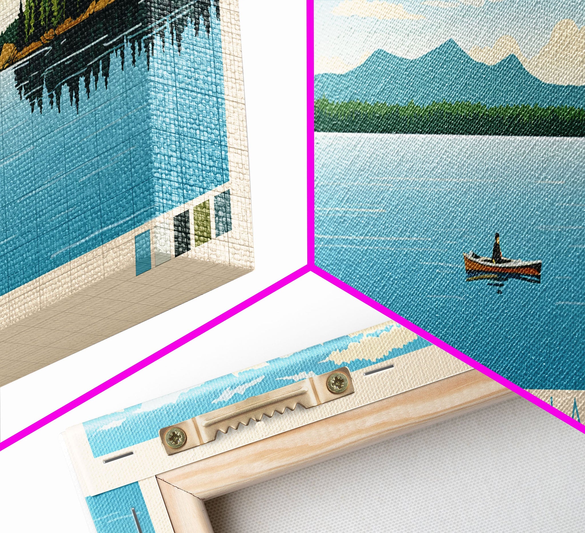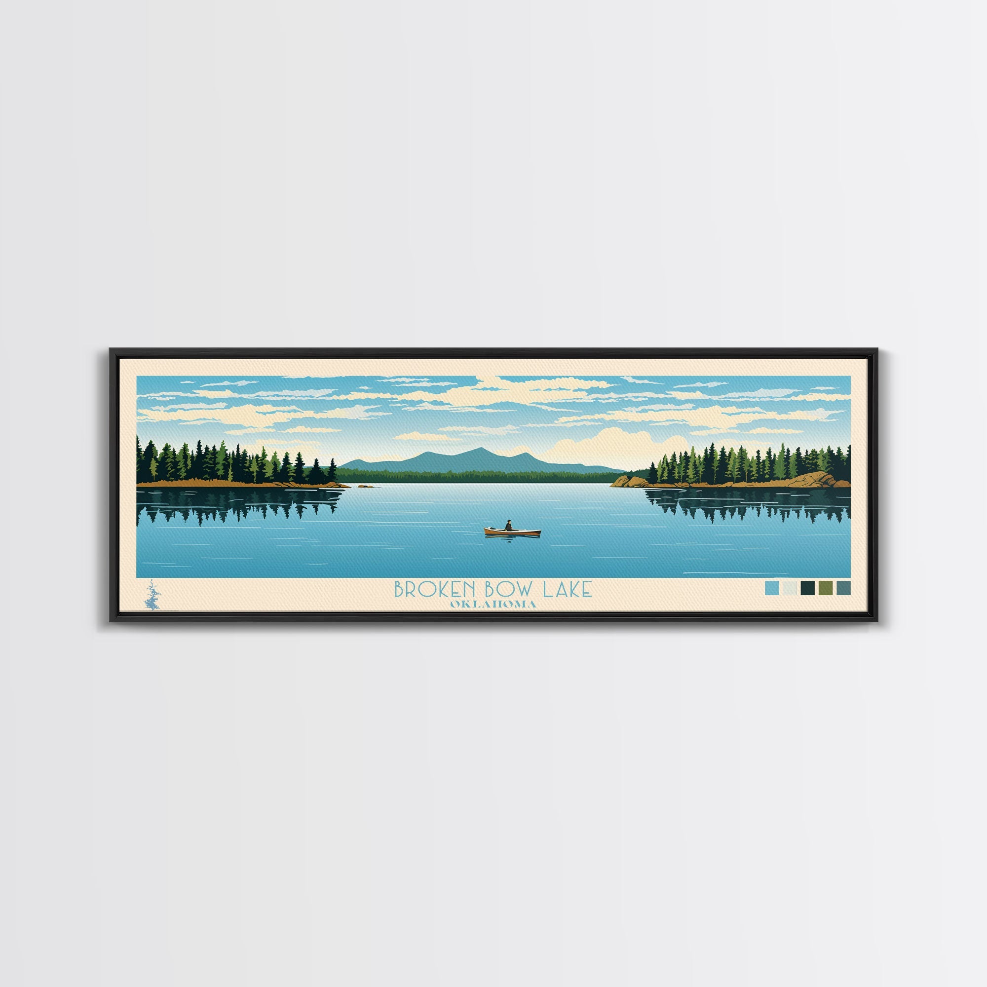 Broken Bow Lake Oklahoma Framed Canvas Print, Pop Art Panoramic Travel Poster, Midcentury Modern, Wall Art, Scenic Nature Painting, Bedroom Decor