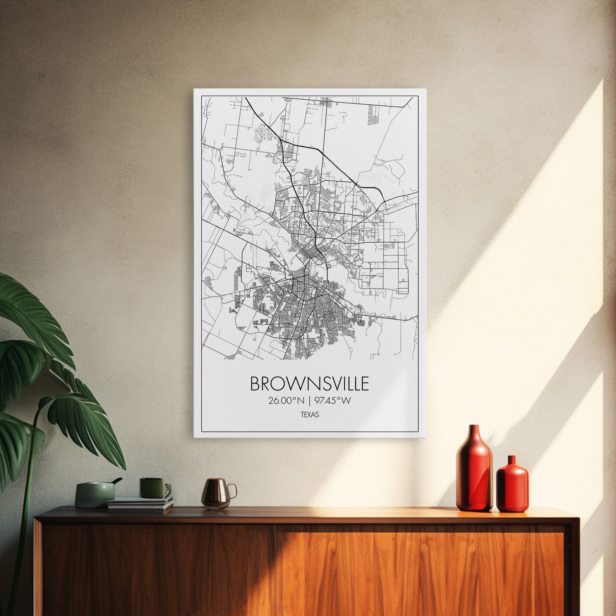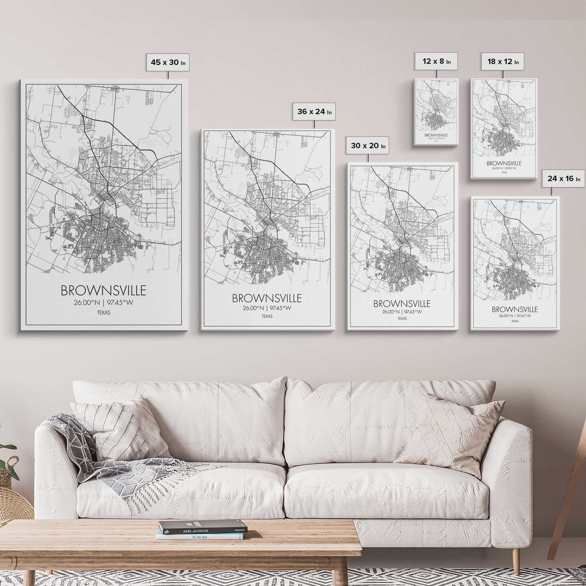 Brownsville Street Map, Texas Map, City Map Art, Modern Art, Wall Art, Canvas Print, Canvas Wall Art, Dorm Décor, Graduation Gift,