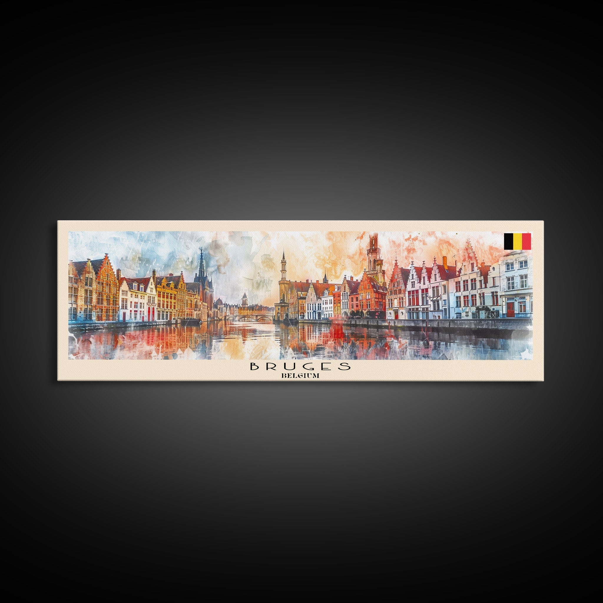 Bruges Belgium Travel Art, City Art, Framed Canvas Print or Metal Wall Art, Europe Travel Poster, Panoramic Wall Art, Extra Wide Wall Art