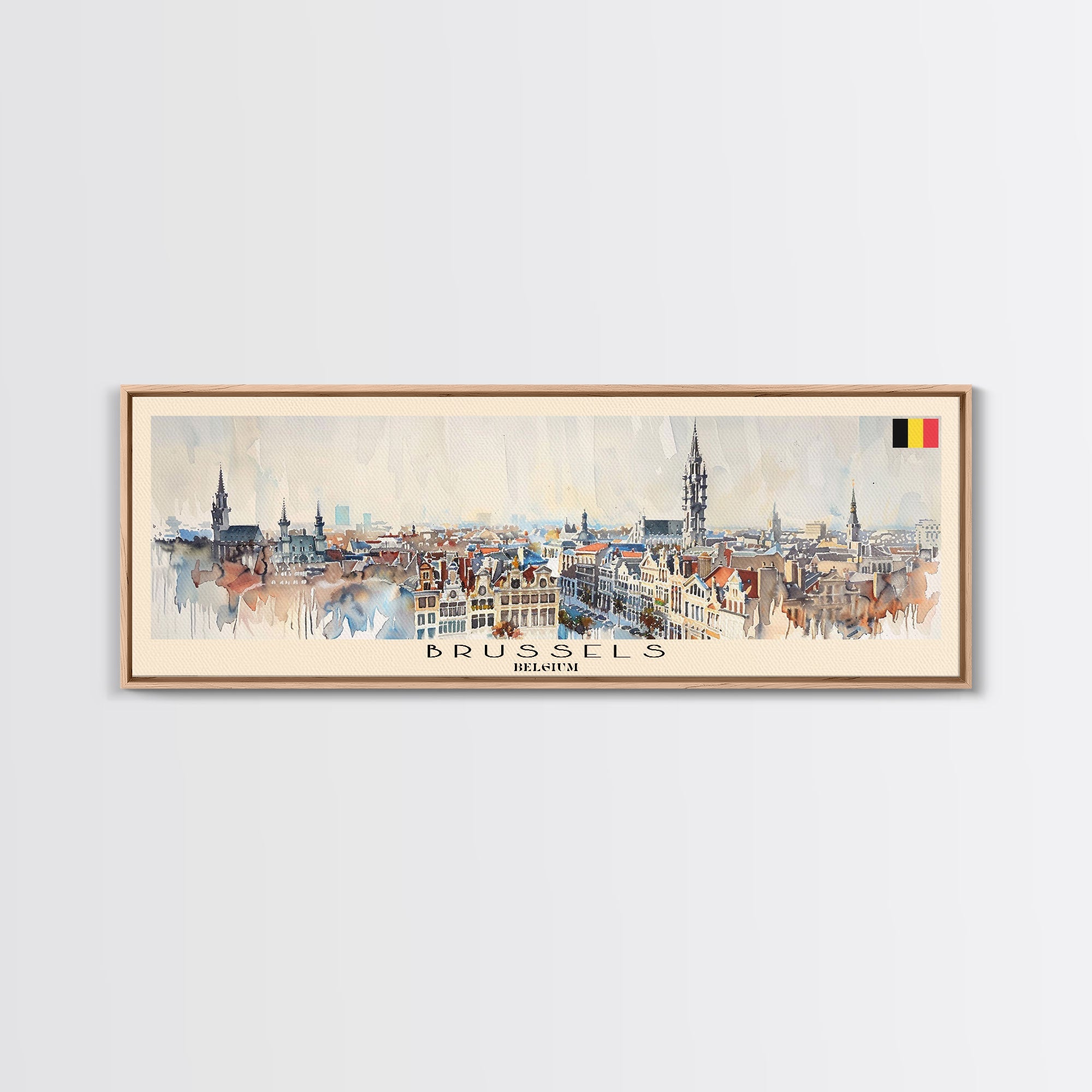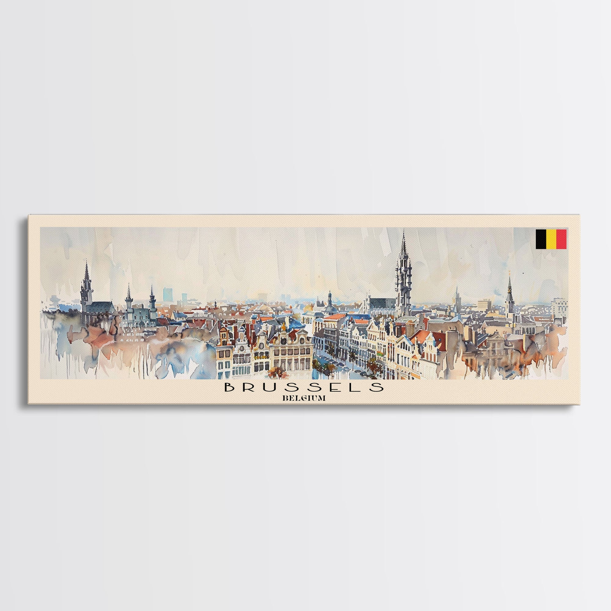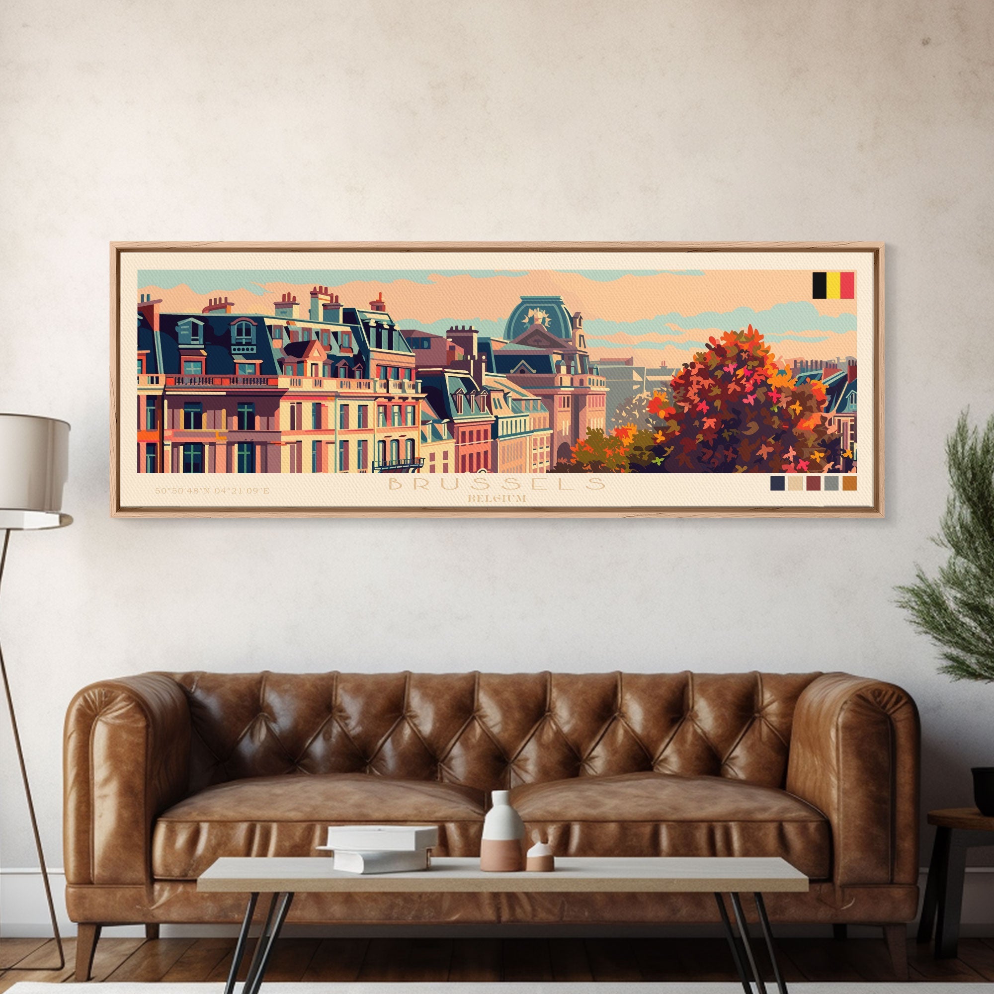 Brussels Belgium Panoramic Travel Poster, Framed Canvas Print or Metal Wall Art, Travel Art, Home Decor, Panoramic Painting, Midcentury Art