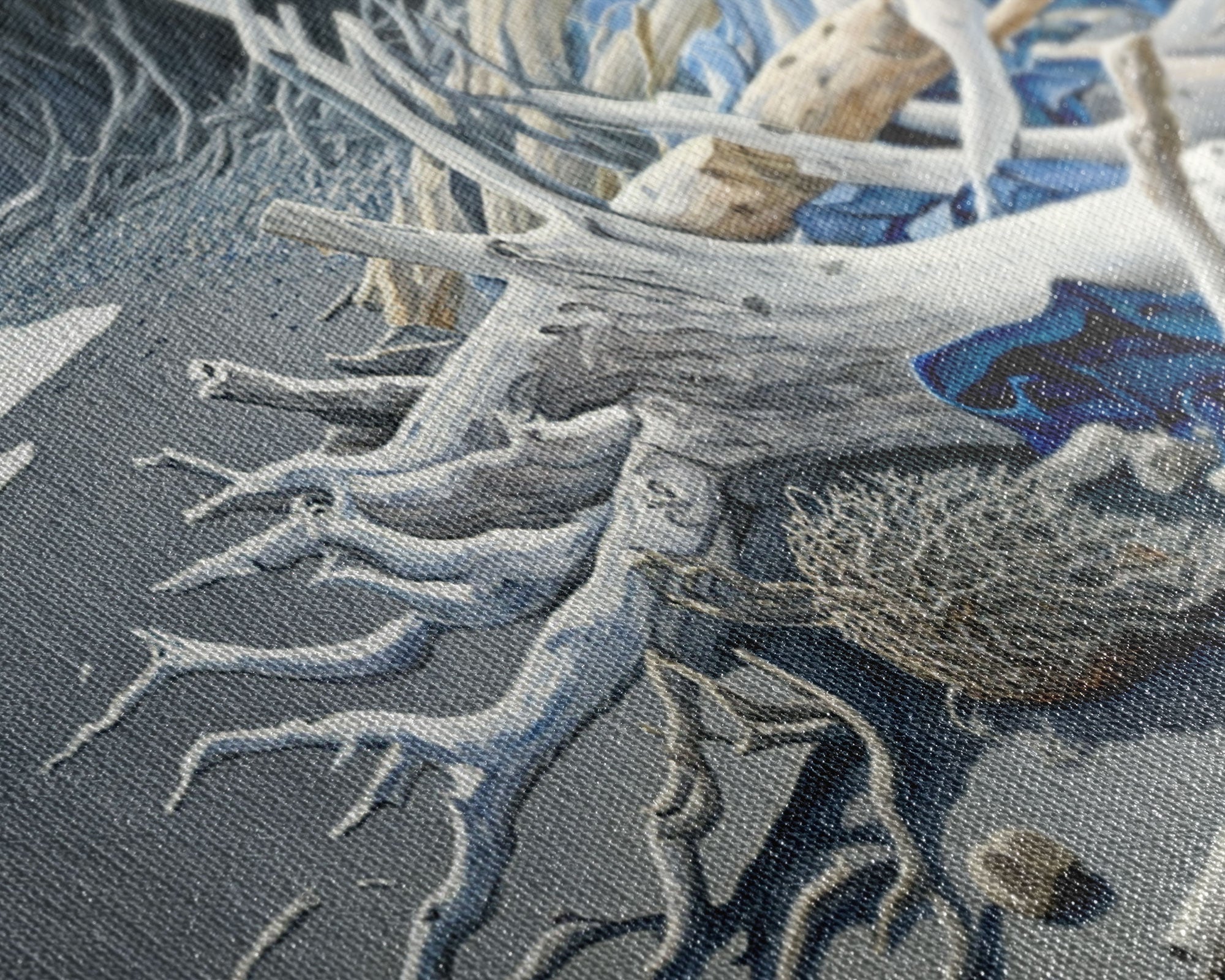 • Carregar imagem no visualizador da galeria, Driftwood, Panoramic Framed Canvas Print, Pacific Northwest / Washington State Driftwood Washed Up On The Shore, Extra Wide Format Art