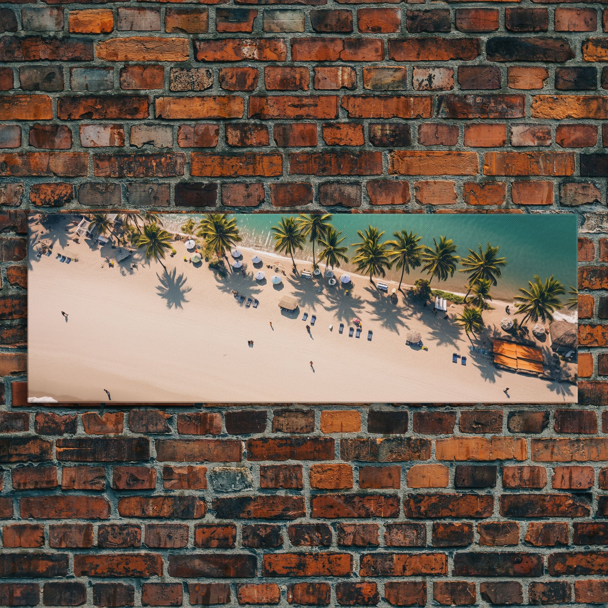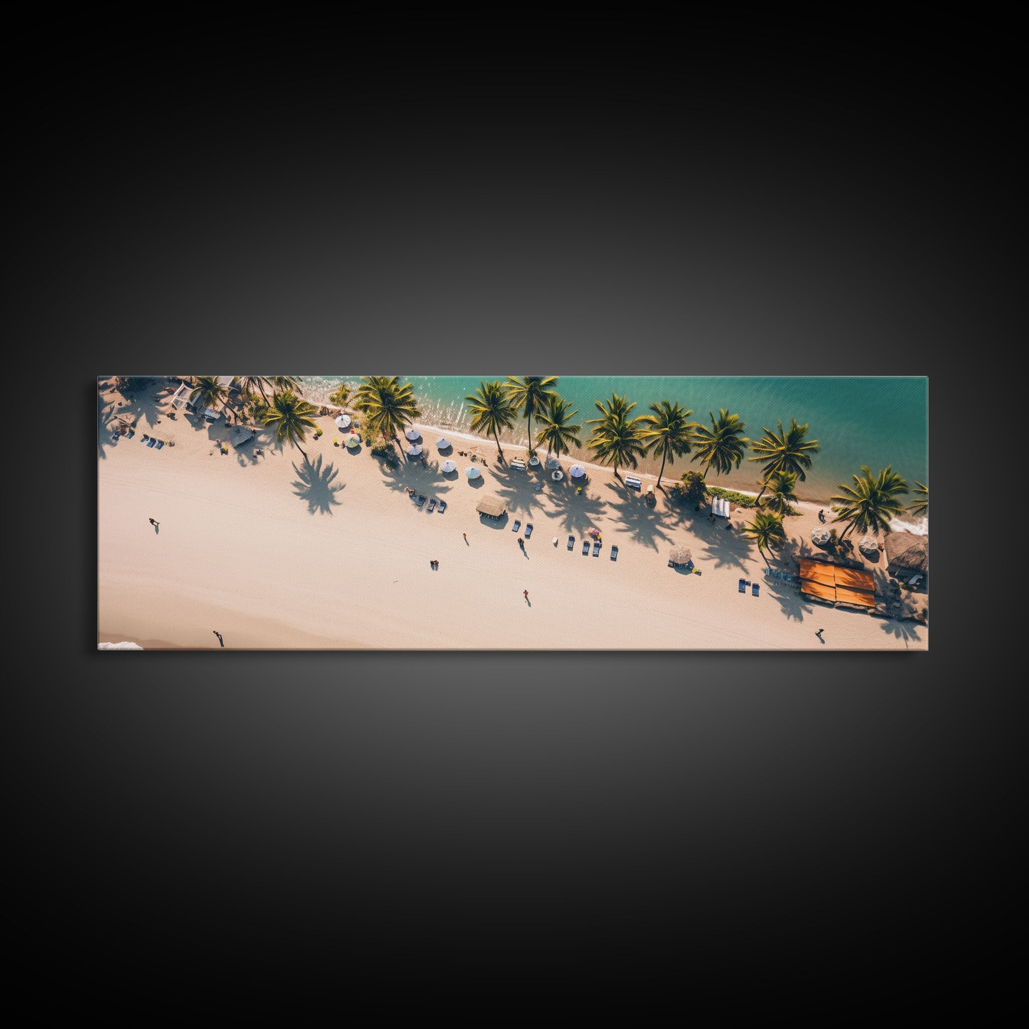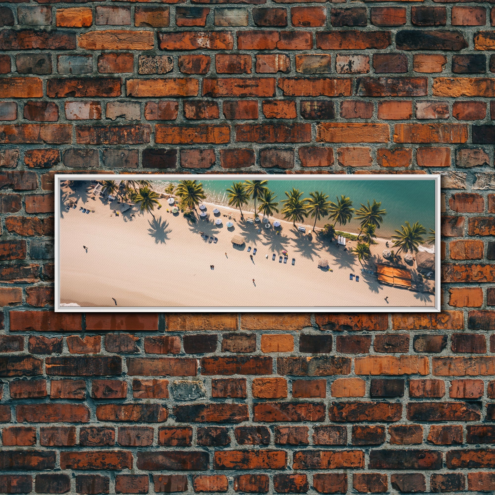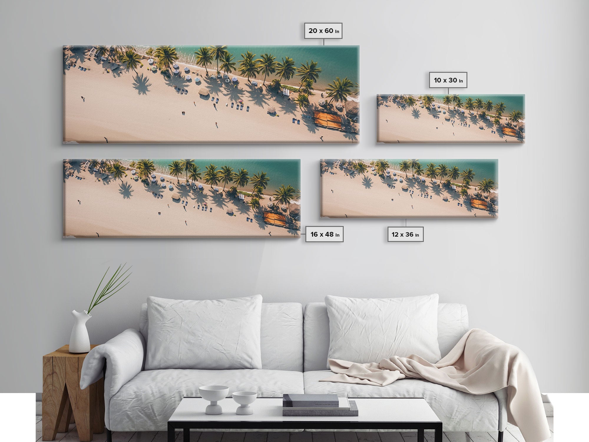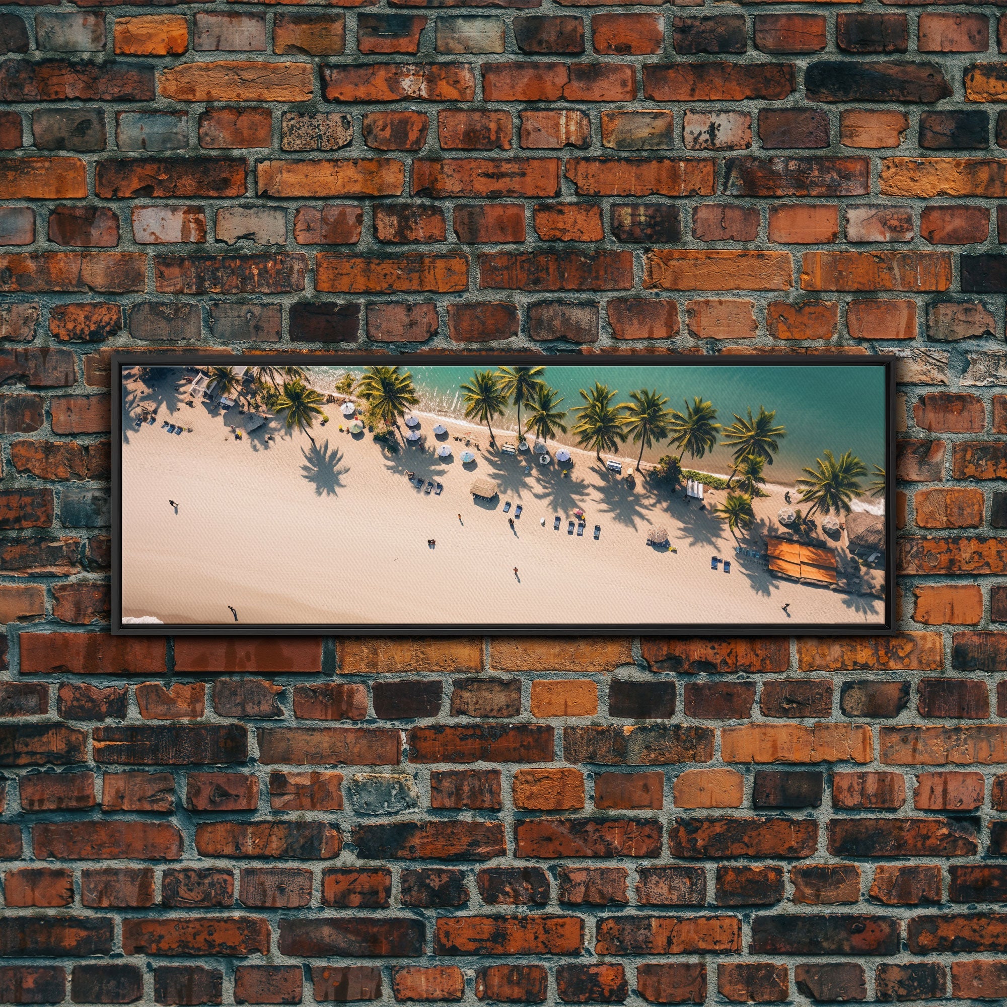 Drone Shot of Bora Bora, Vacation Art, Tropical Beach Photography Framed Canvas Print, Panoramic Bird's Eye View of Paradise