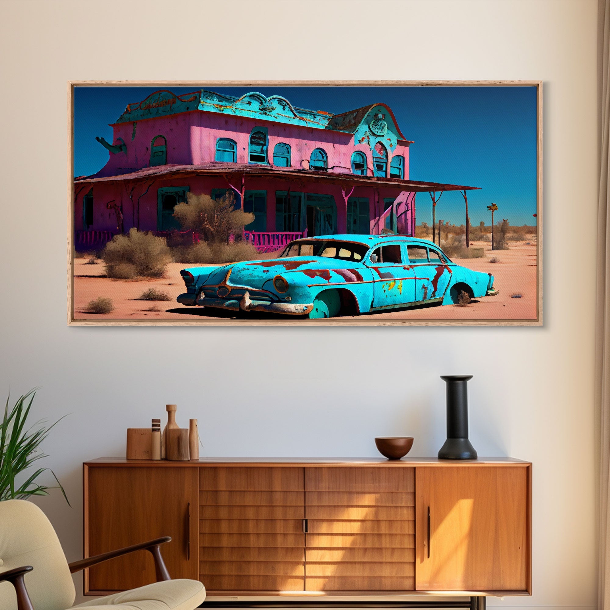 Fallout Style Art, Atomic age, abandoned post apocalyptic, framed canvas print, cool wall art