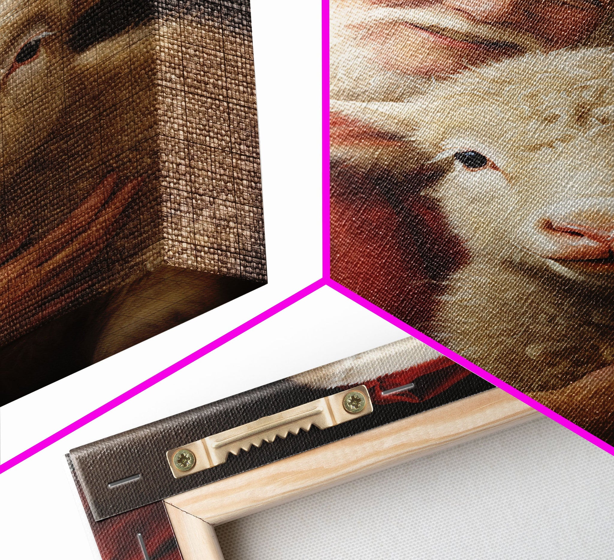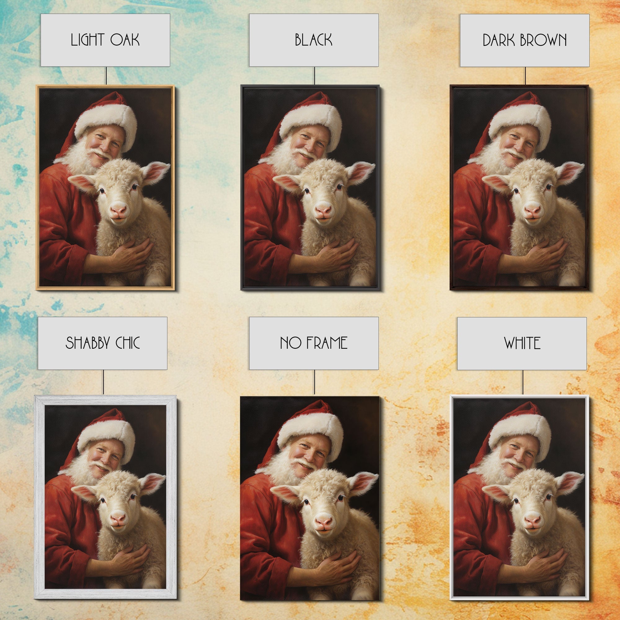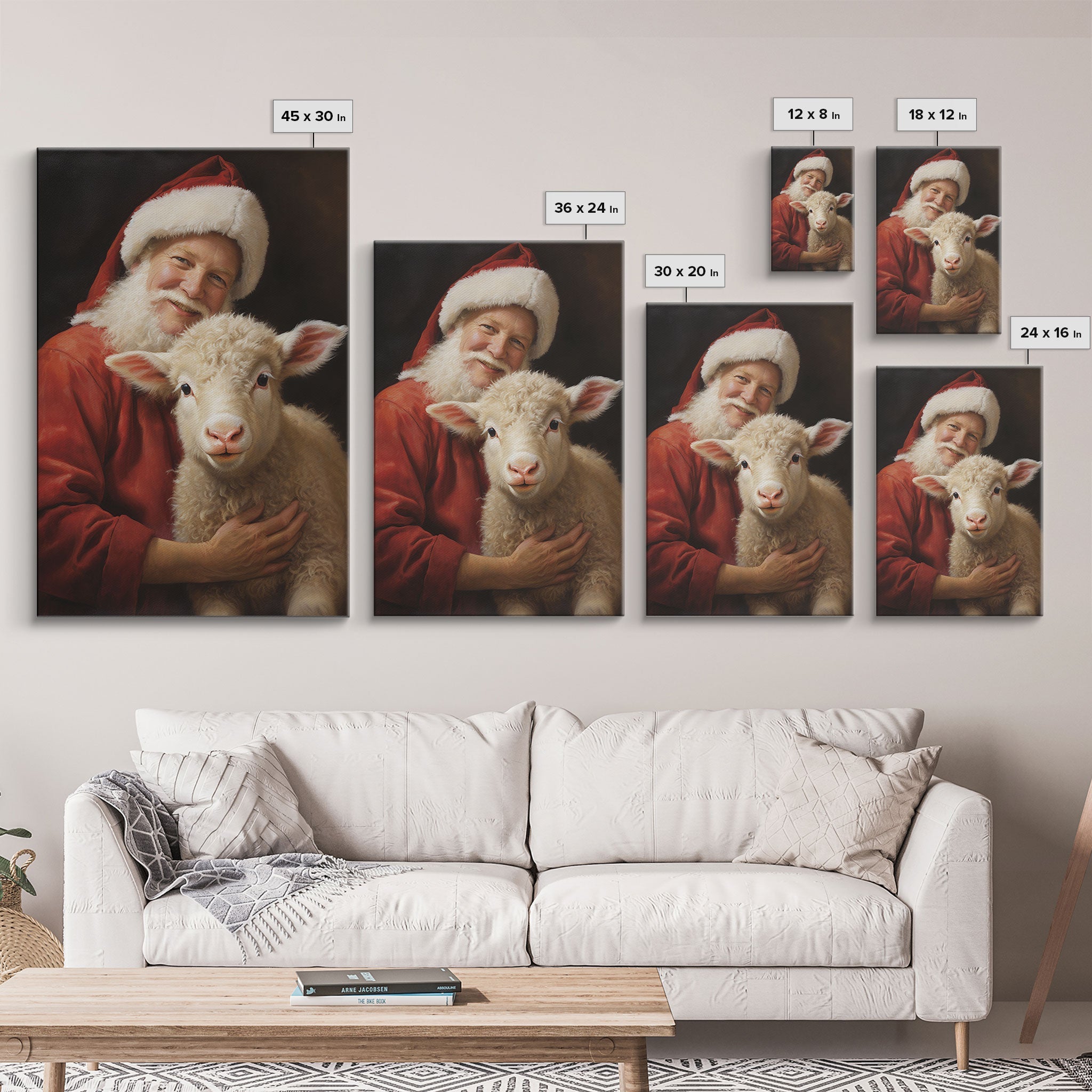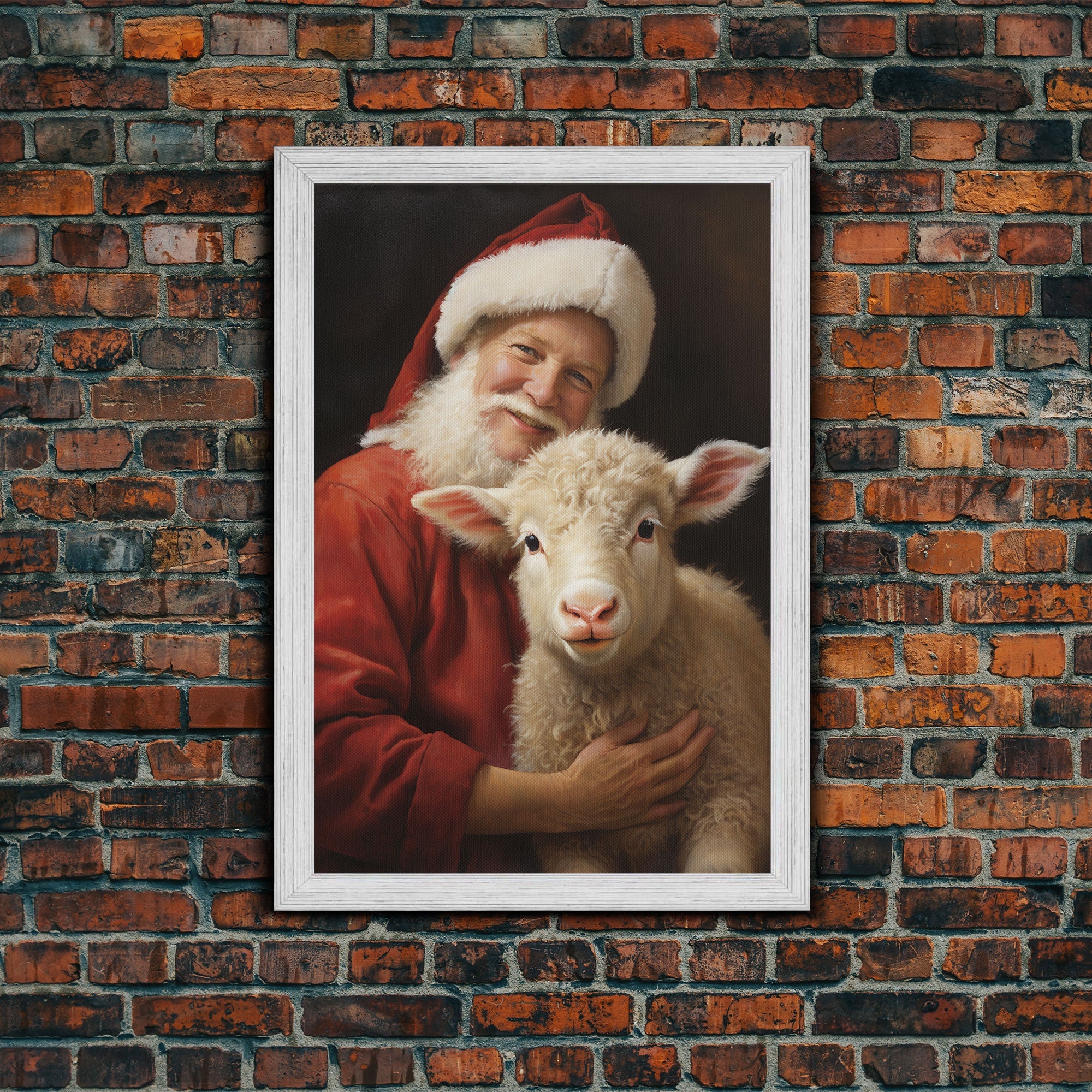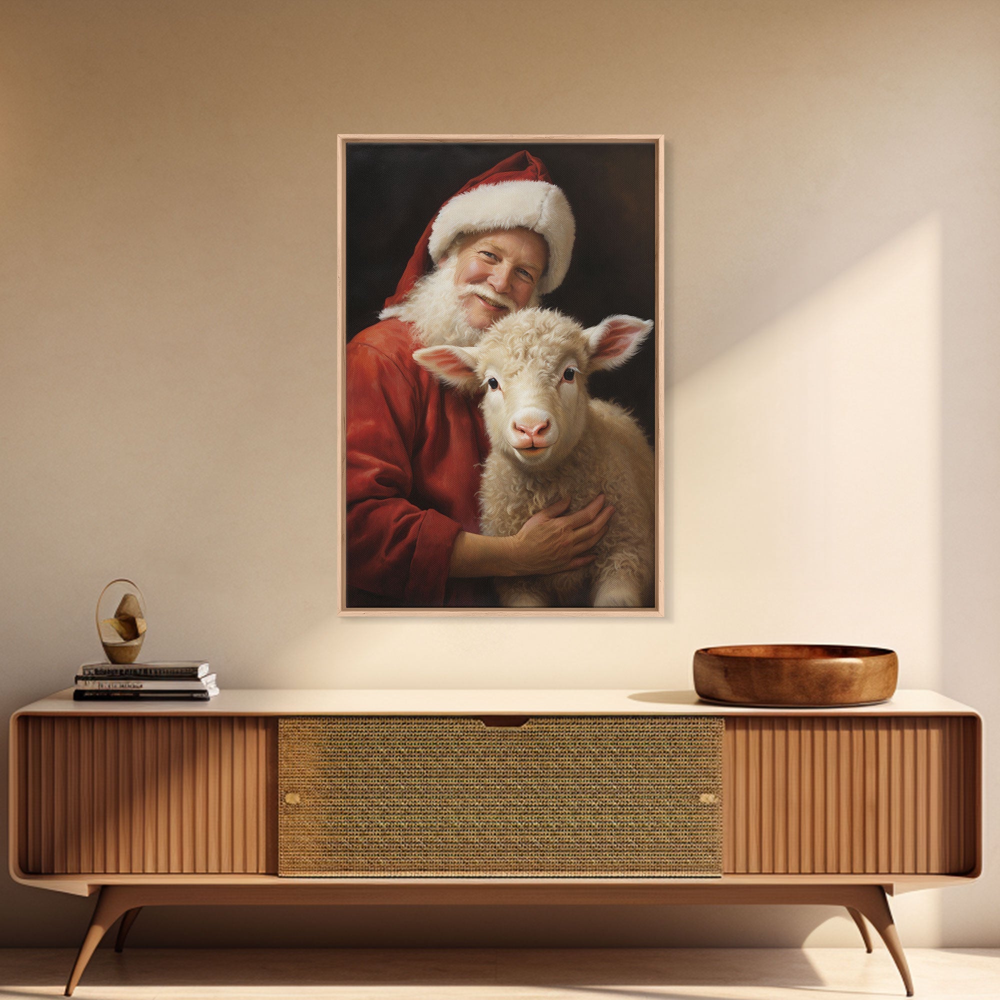 Farmhouse Christmas Decor, Santa And A Little Sheep, Framed Canvas Print, Christmas Wall Art, Xmas Art, Christmas Art Print, Santa Decor