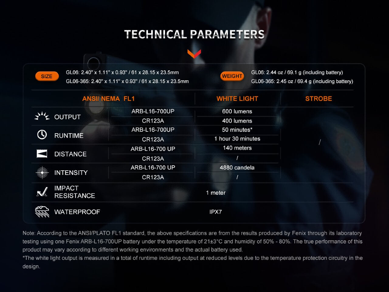 Fenix GL06 Pocket Pistol Tactical LED Light - 600 Lumens