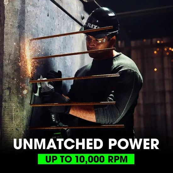The FLEX 24V Brushless 5" Variable Speed Angle Grinder with Side Switch delivers next-level advantages to the jobsite. Unleash up to 10,000 RPM of unmatched power but also work with confidence. Key features include anti-kickback protection, vibration suppression handle, one-step guard adjustment, and adjustable touch controls. This angle grinder's ergonomic design and exceptional runtime keep you going and going. All this is powered by the FLEX Advantage (unmatched 24V battery power, runtime, and charging capabilities) and backed by a 5-year end-to-end warranty.