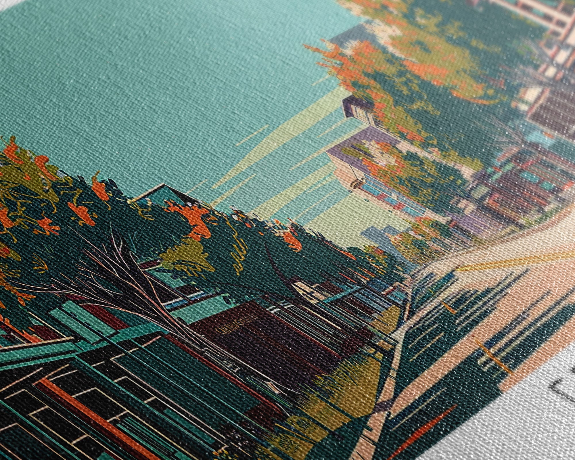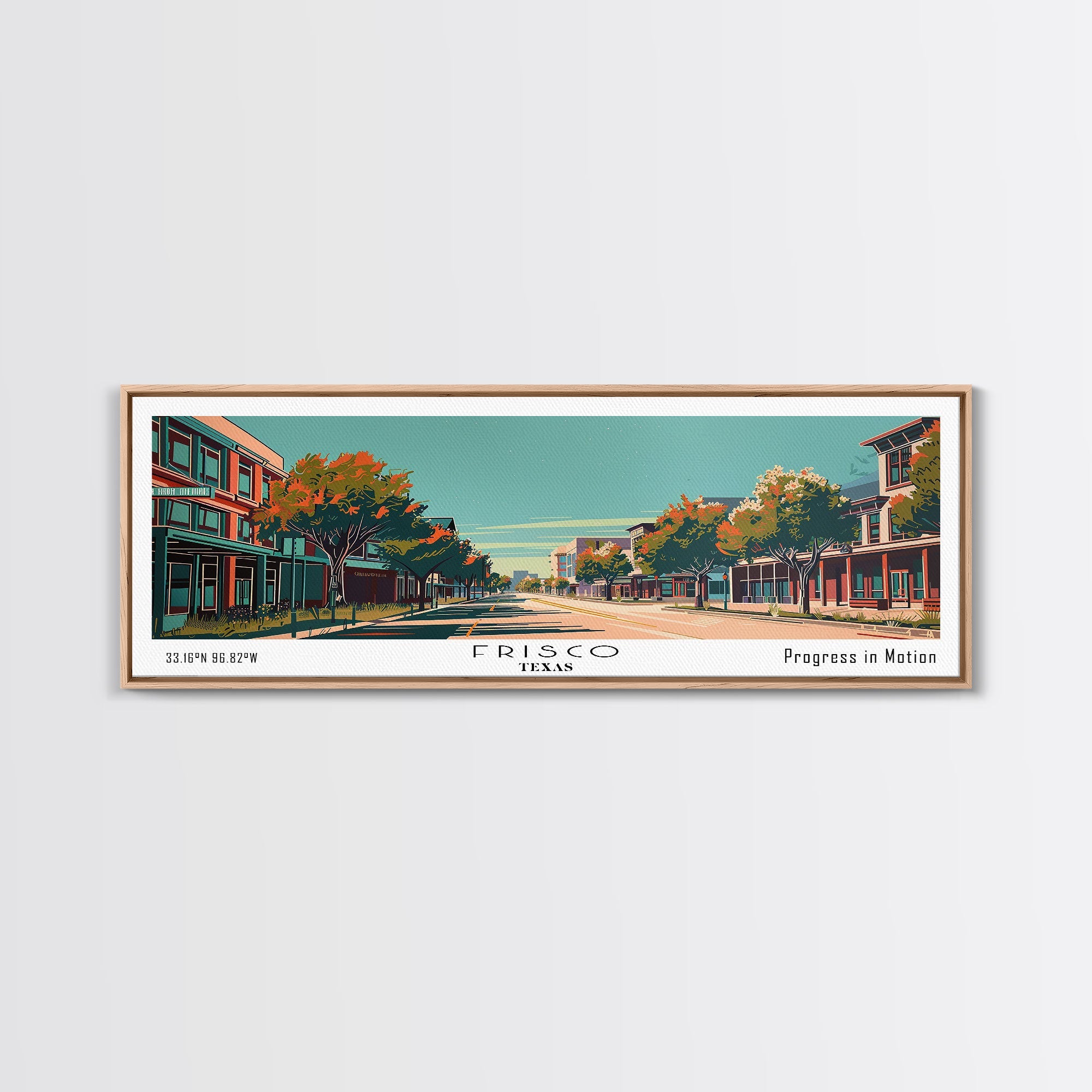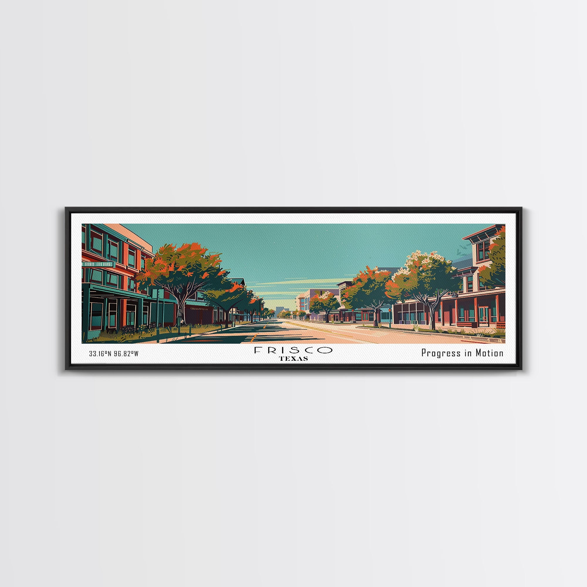 Frisco Texas Panoramic Painting, Framed Canvas Print, Mid Century Modern Wall Art, Retro Pop Art Travel Poster, Home Decor, City Art
