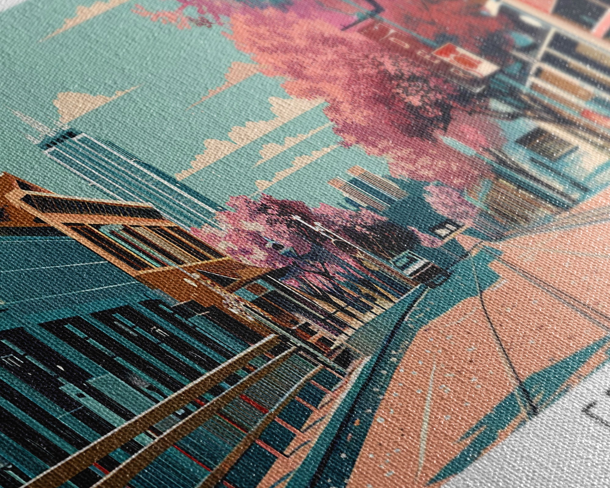 Frisco Texas Panoramic Painting, Framed Canvas Print, Mid Century Modern Wall Art, Retro Pop Art Travel Poster, Office Decor, City Art