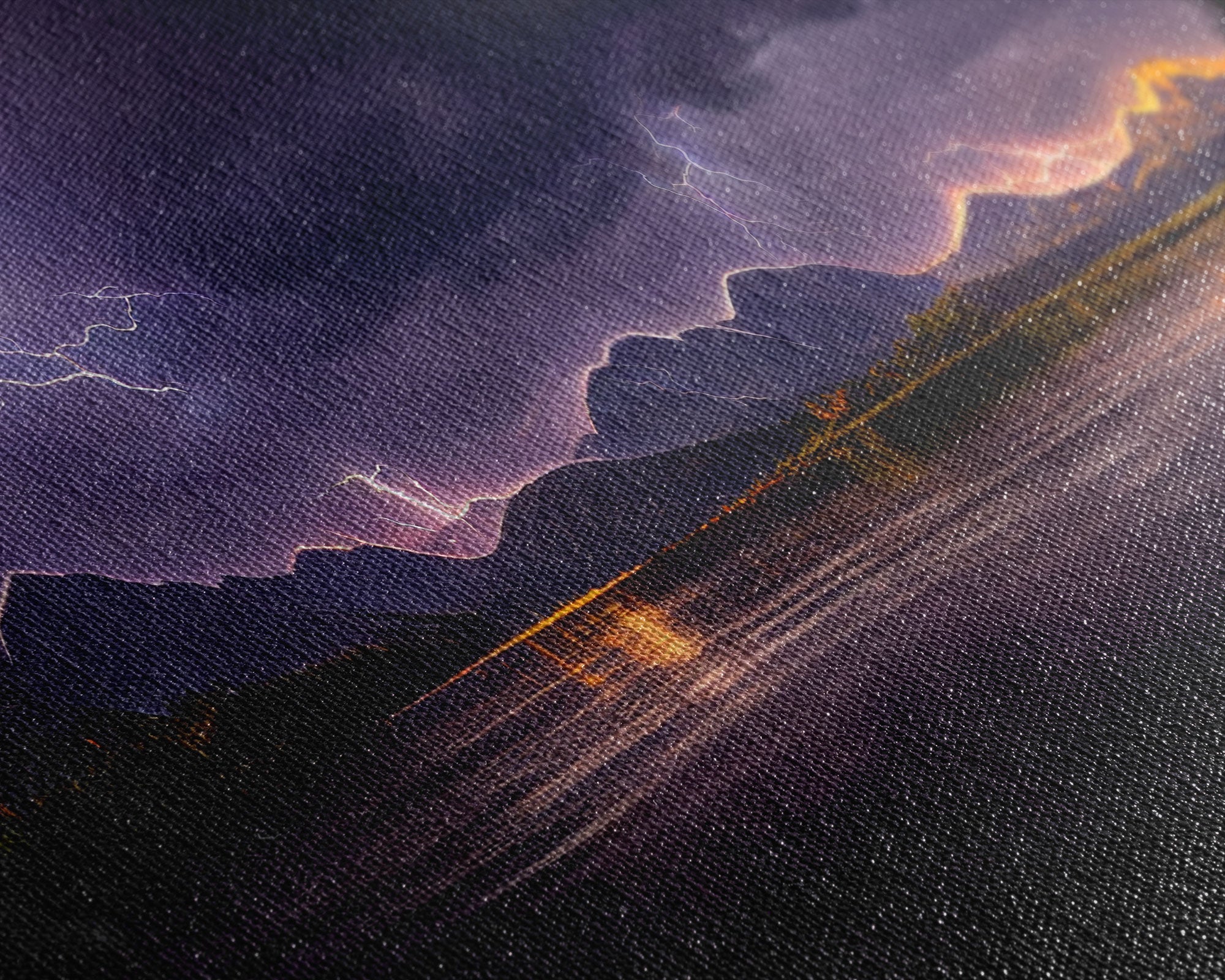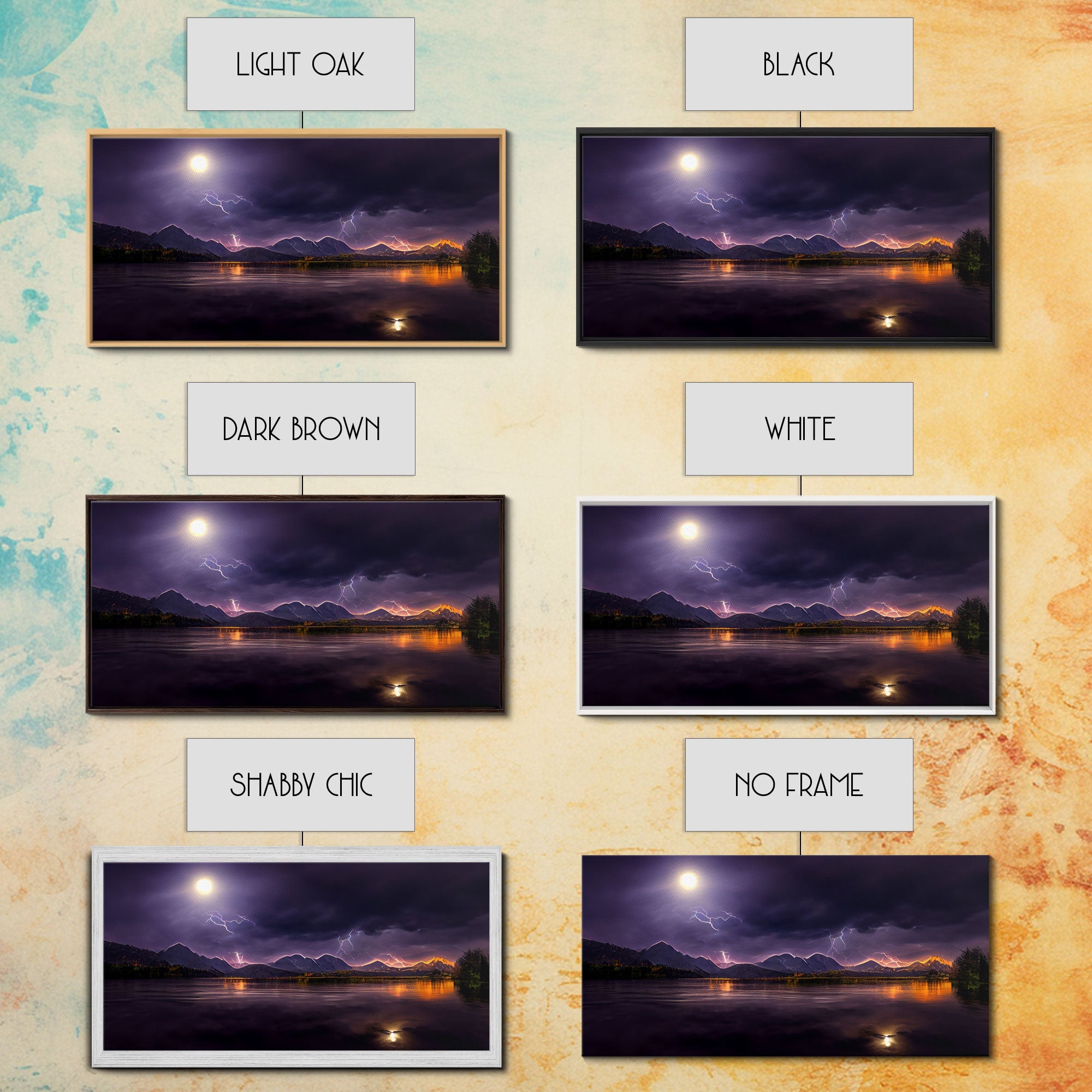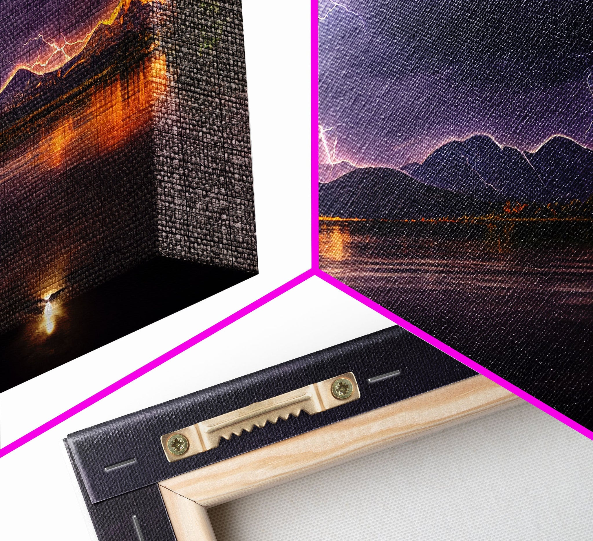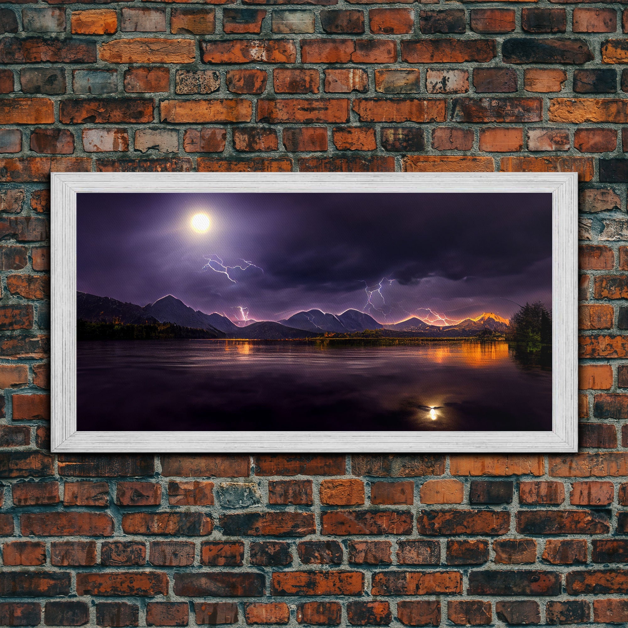 Full moon canvas print, Lightning storm over a mountain lake at night, cool wall art, awesome wall art