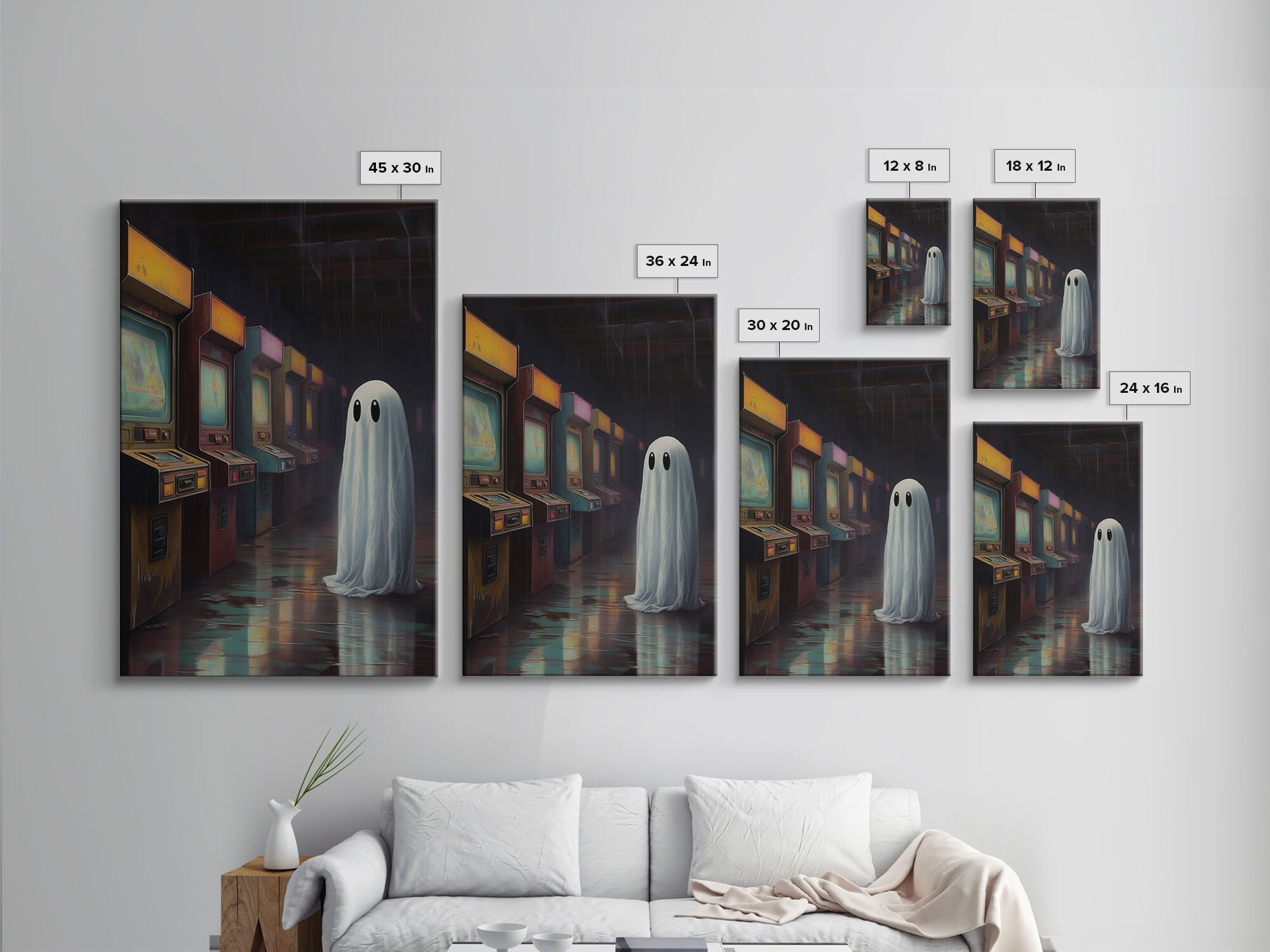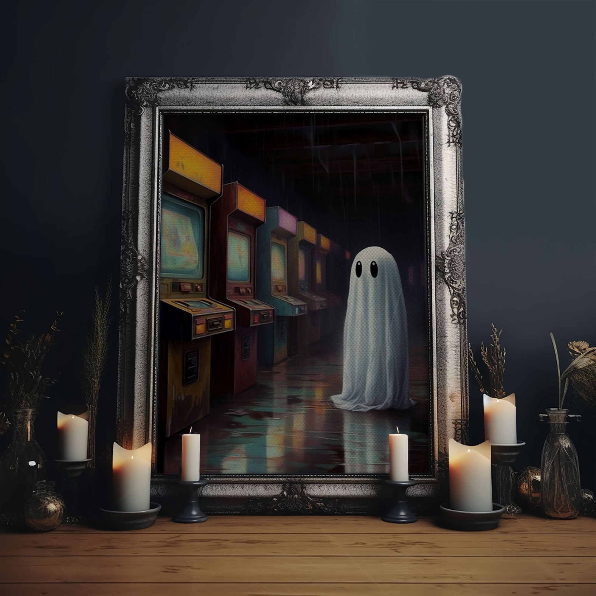 Ghost in an Abandoned Arcade, Nostalgia Canvas, Art Canvas Print, Dark Academia, Gothic Retro, Game Room Art, Halloween Decoration