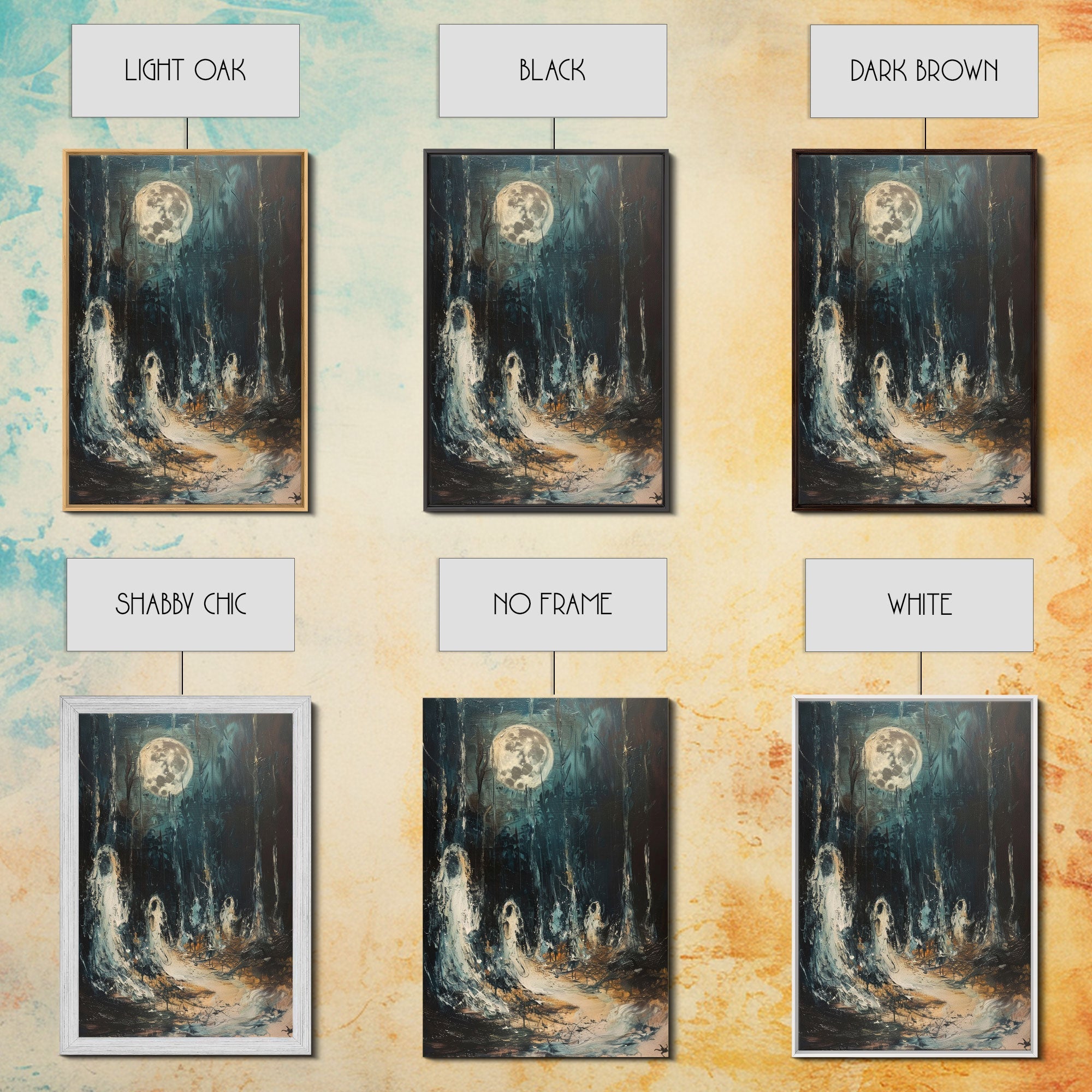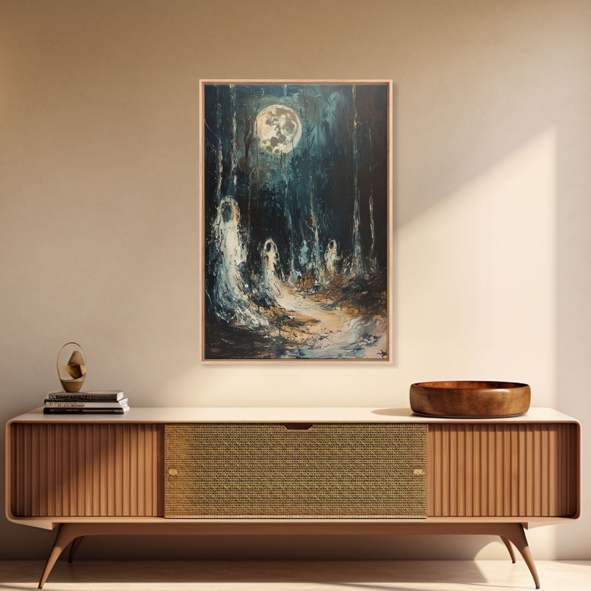 Ghostly Figures in Forest, Halloween Art Print, Spooky Home Decor, Framed Canvas Print, Creepy Art, Halloween Wall Decor, Seasonal Wall Art