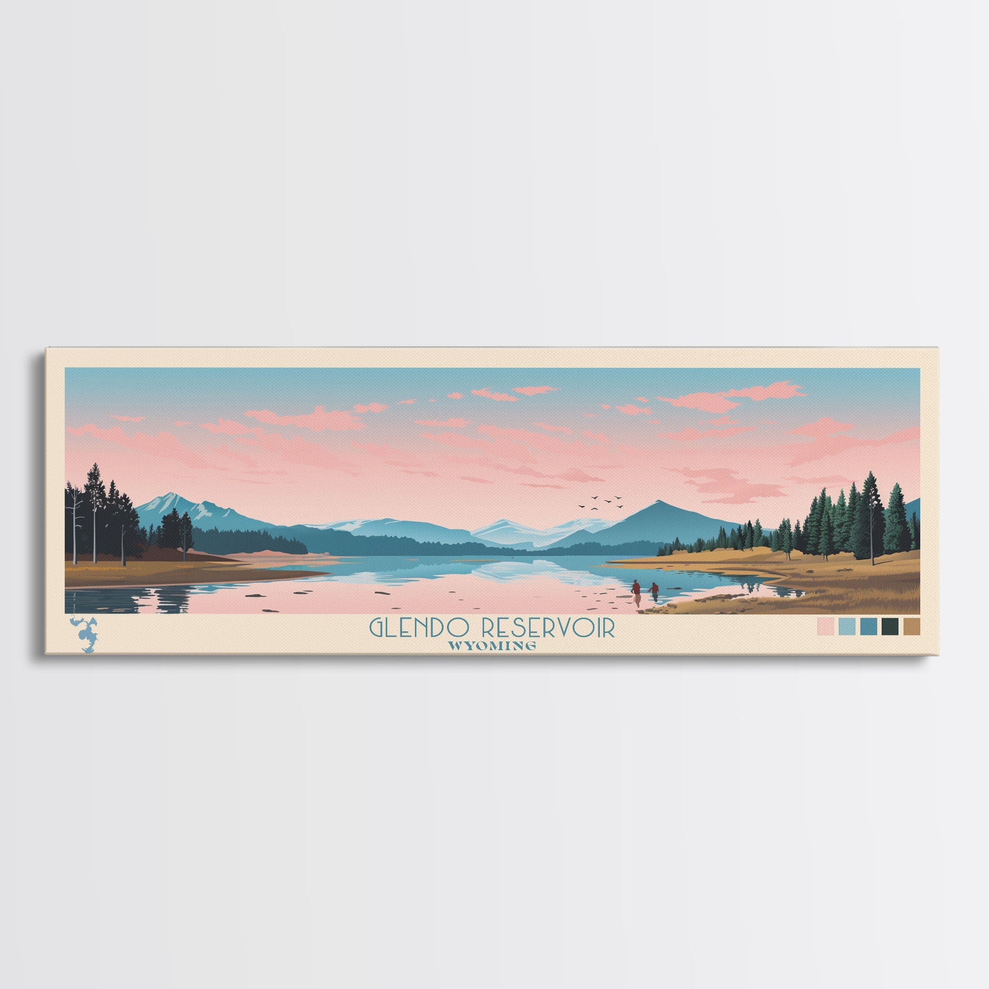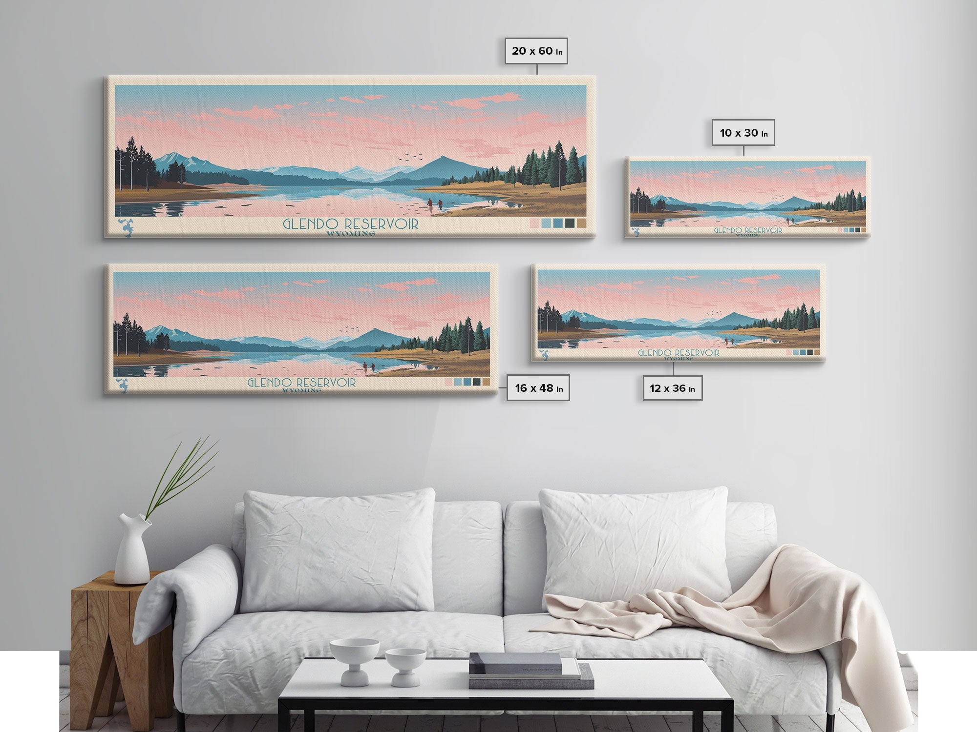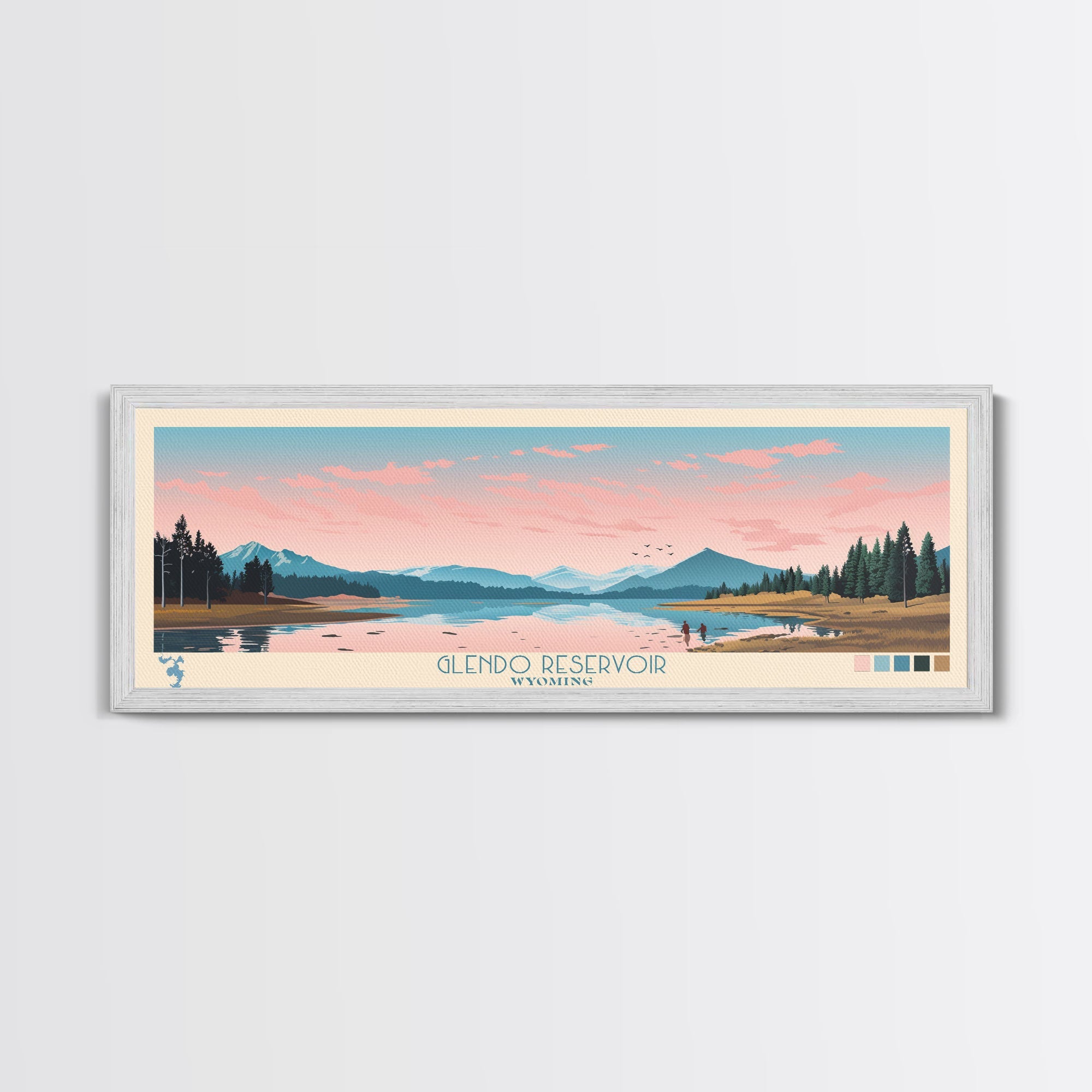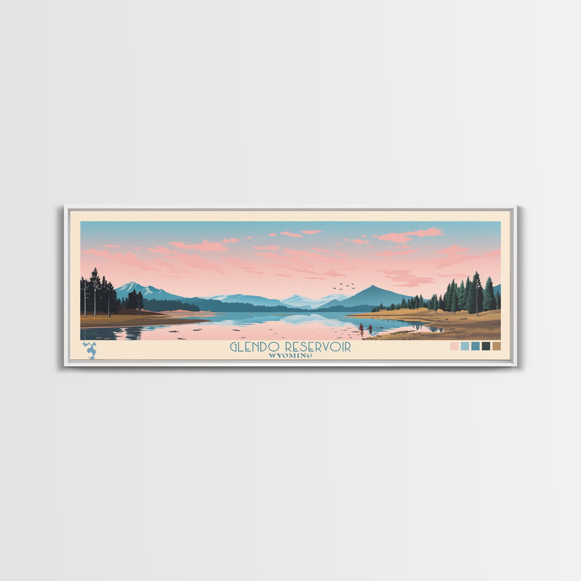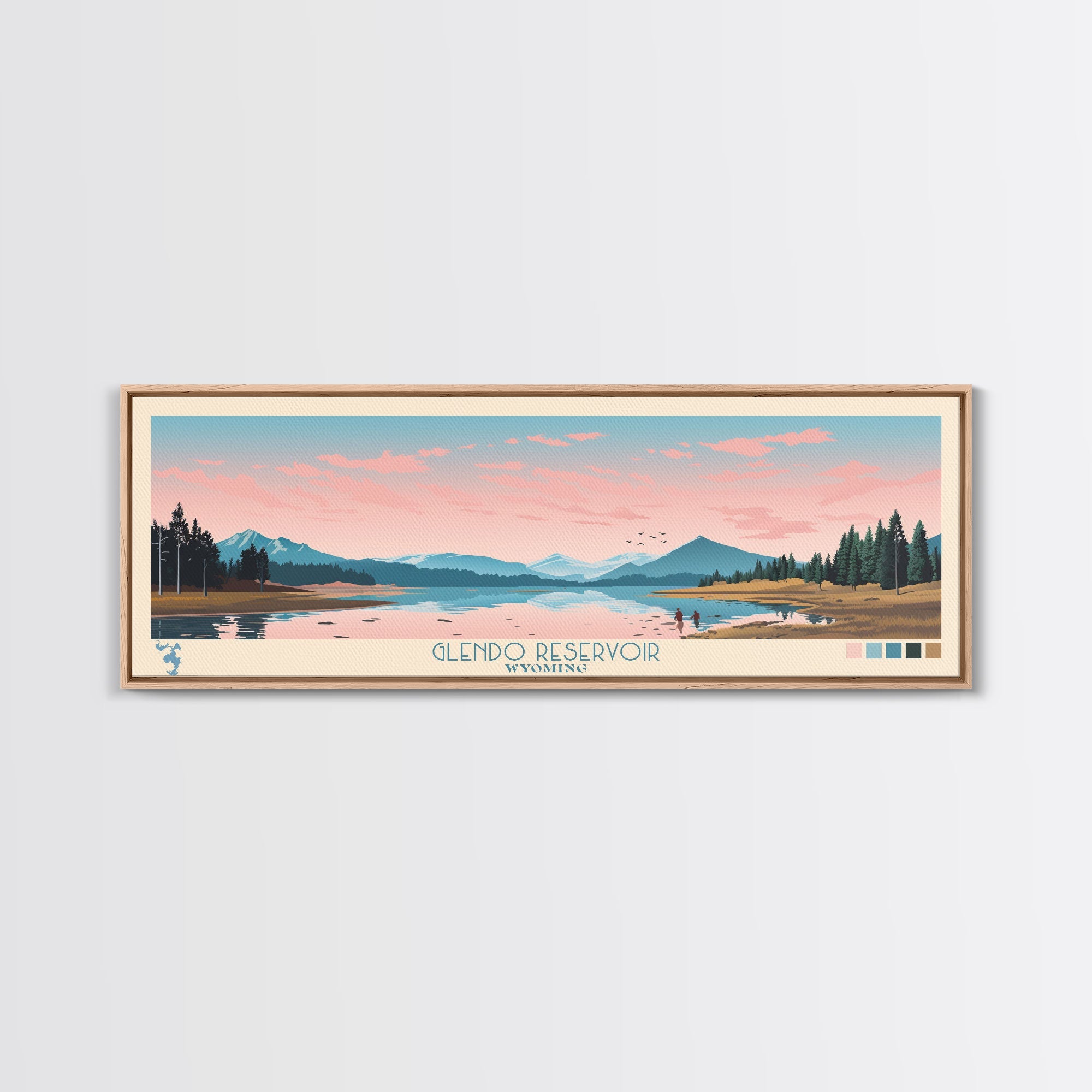 Glendo Reservoir Wyoming Framed Canvas Print, Panoramic Art, Midcentury Modern, Pop Art, Bedroom Decor, Travel Poster, Nature Painting, Home Decor