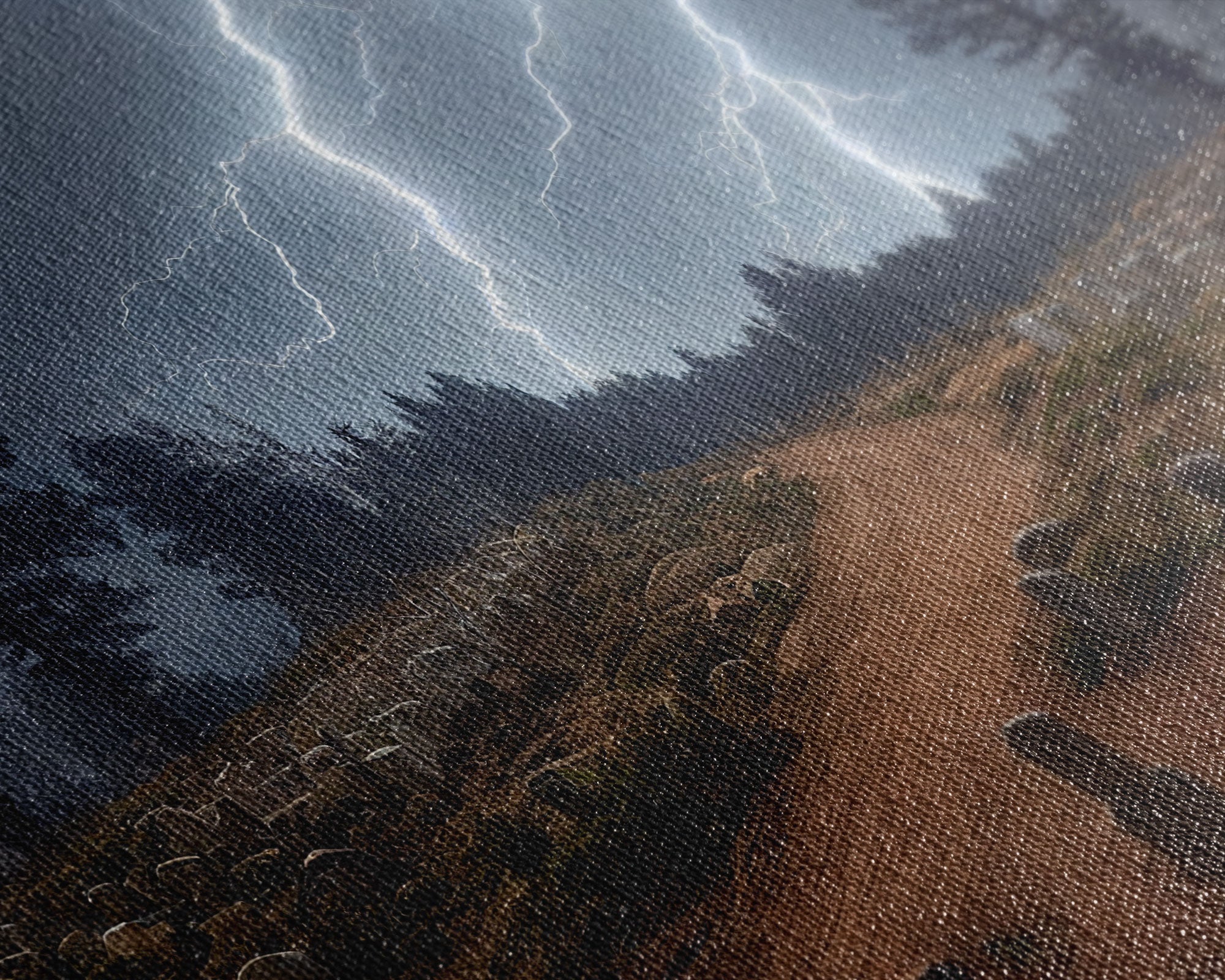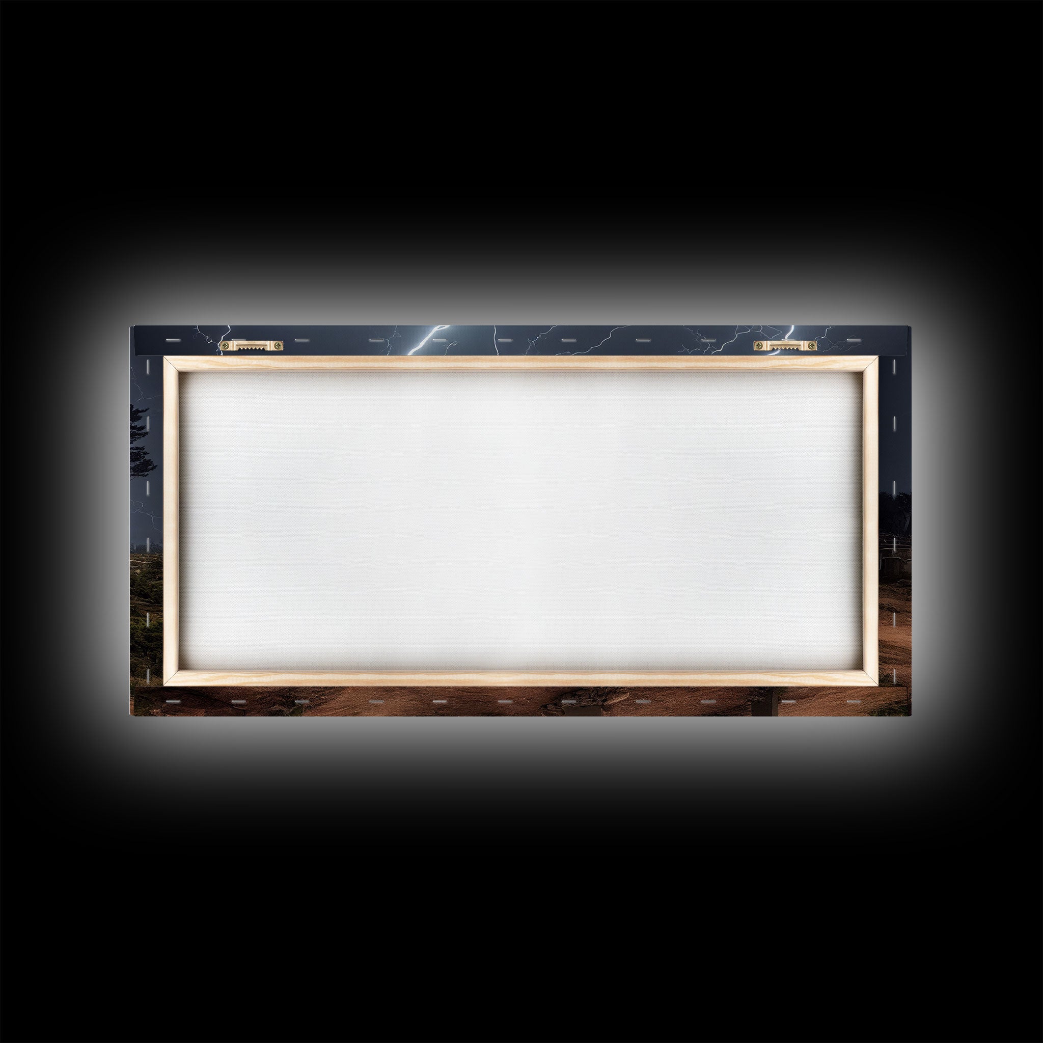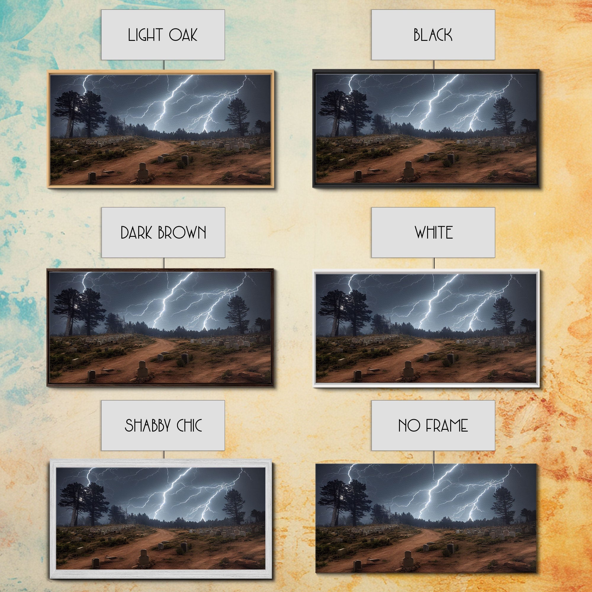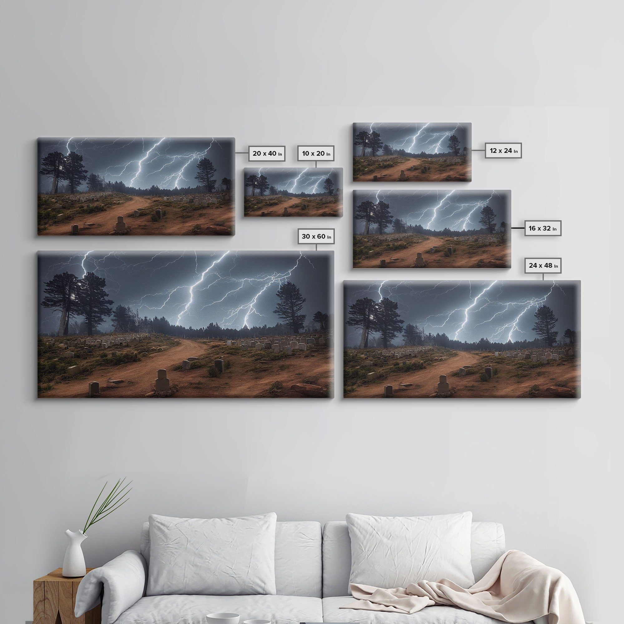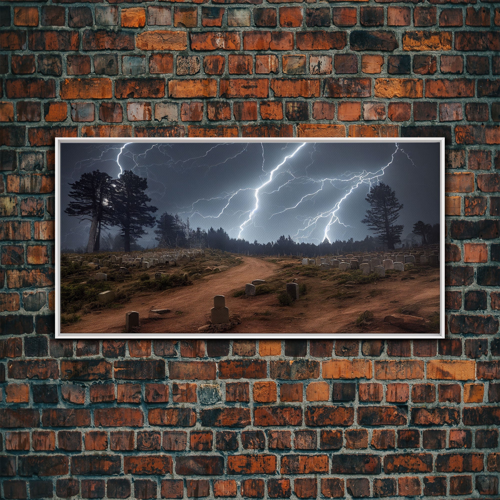 Gloomy Haunted Graveyard At Night, Lightning Storm, Halloween Cemetery Art, ready to hang canvas print wall art
