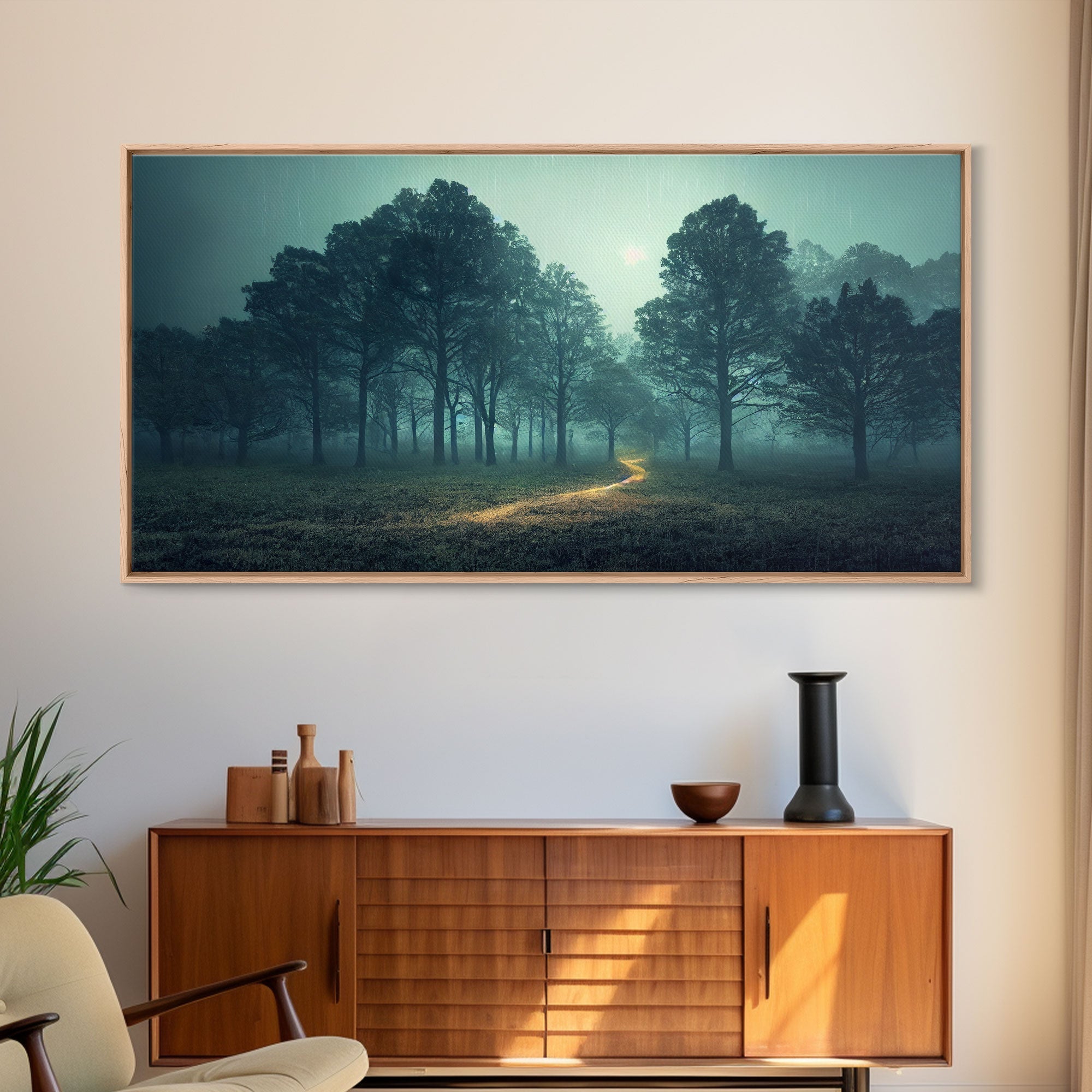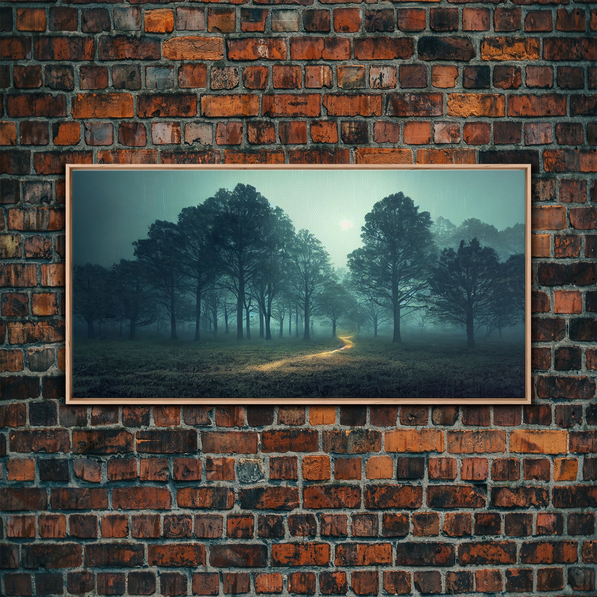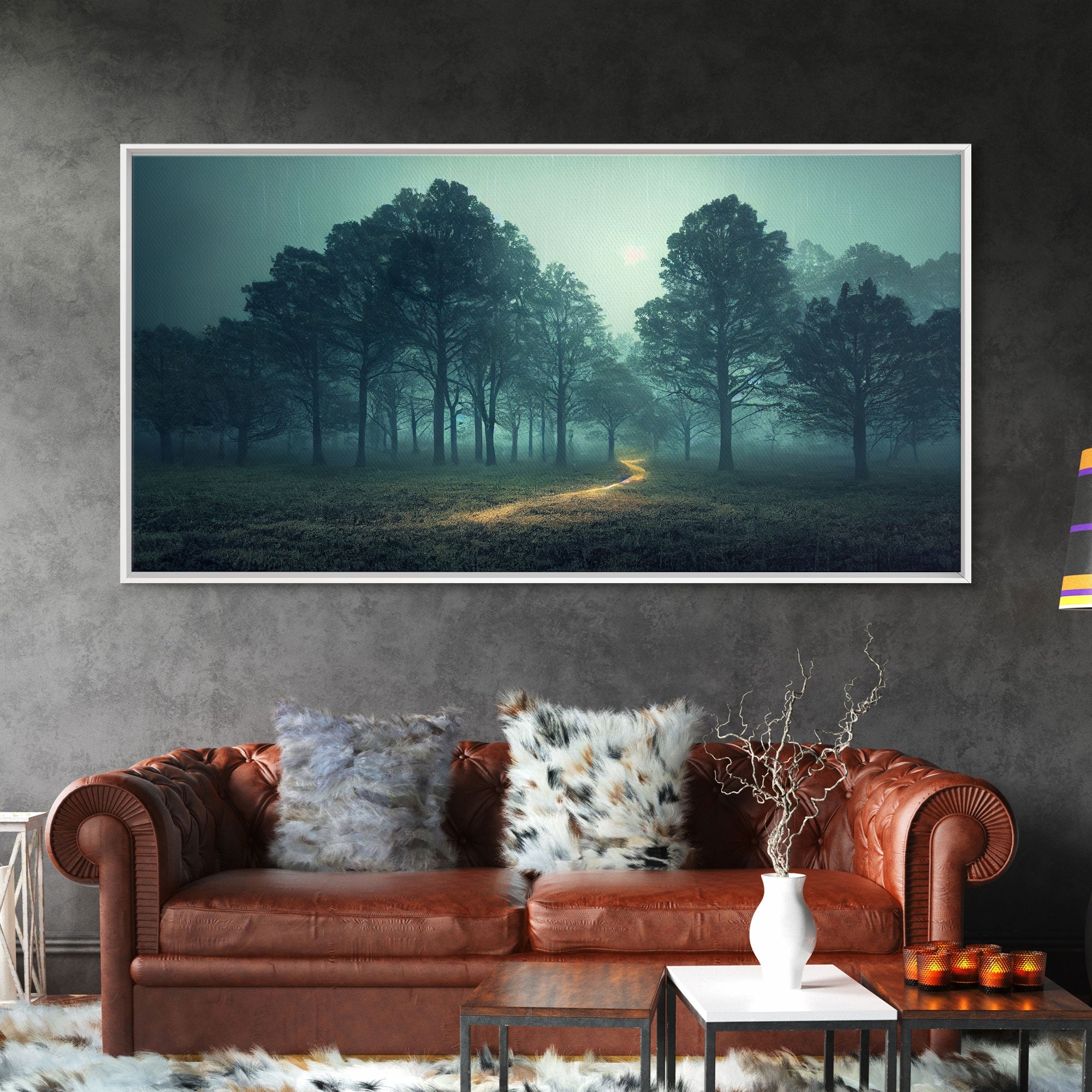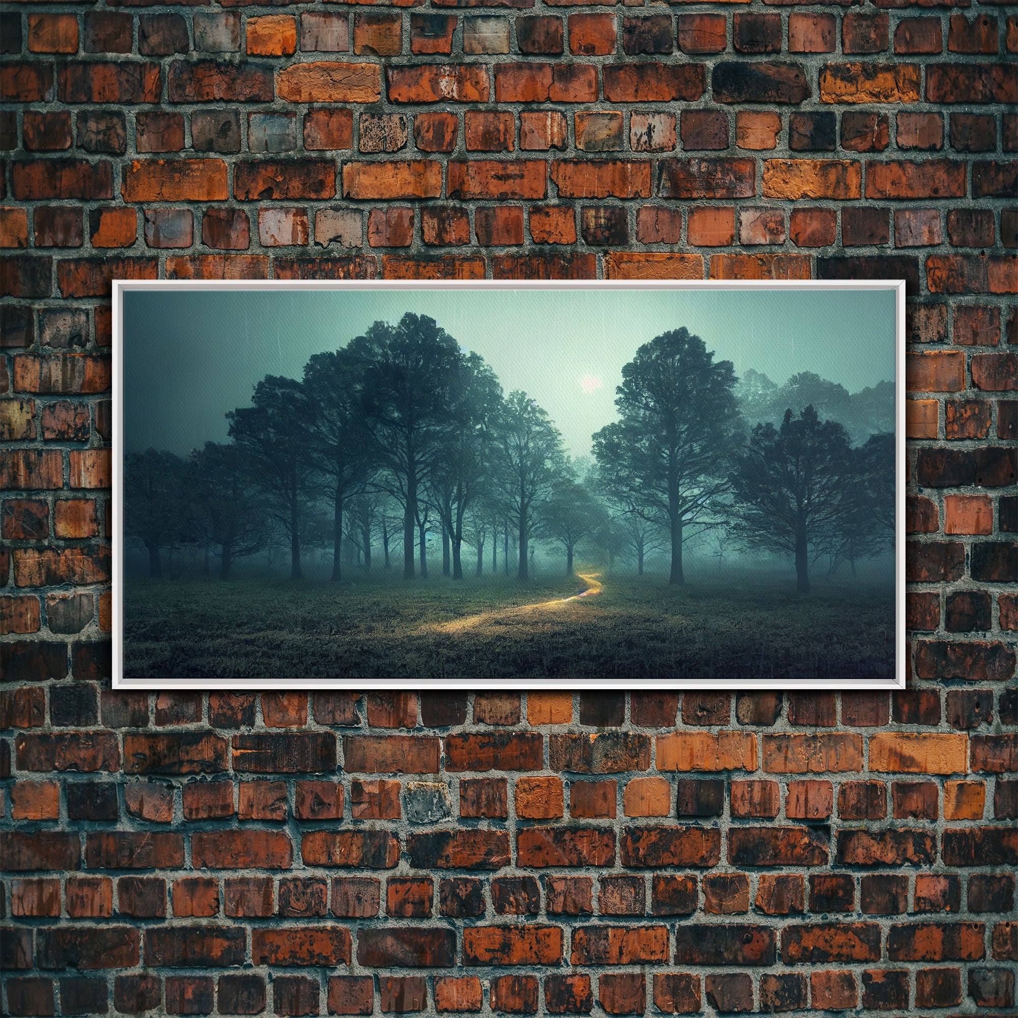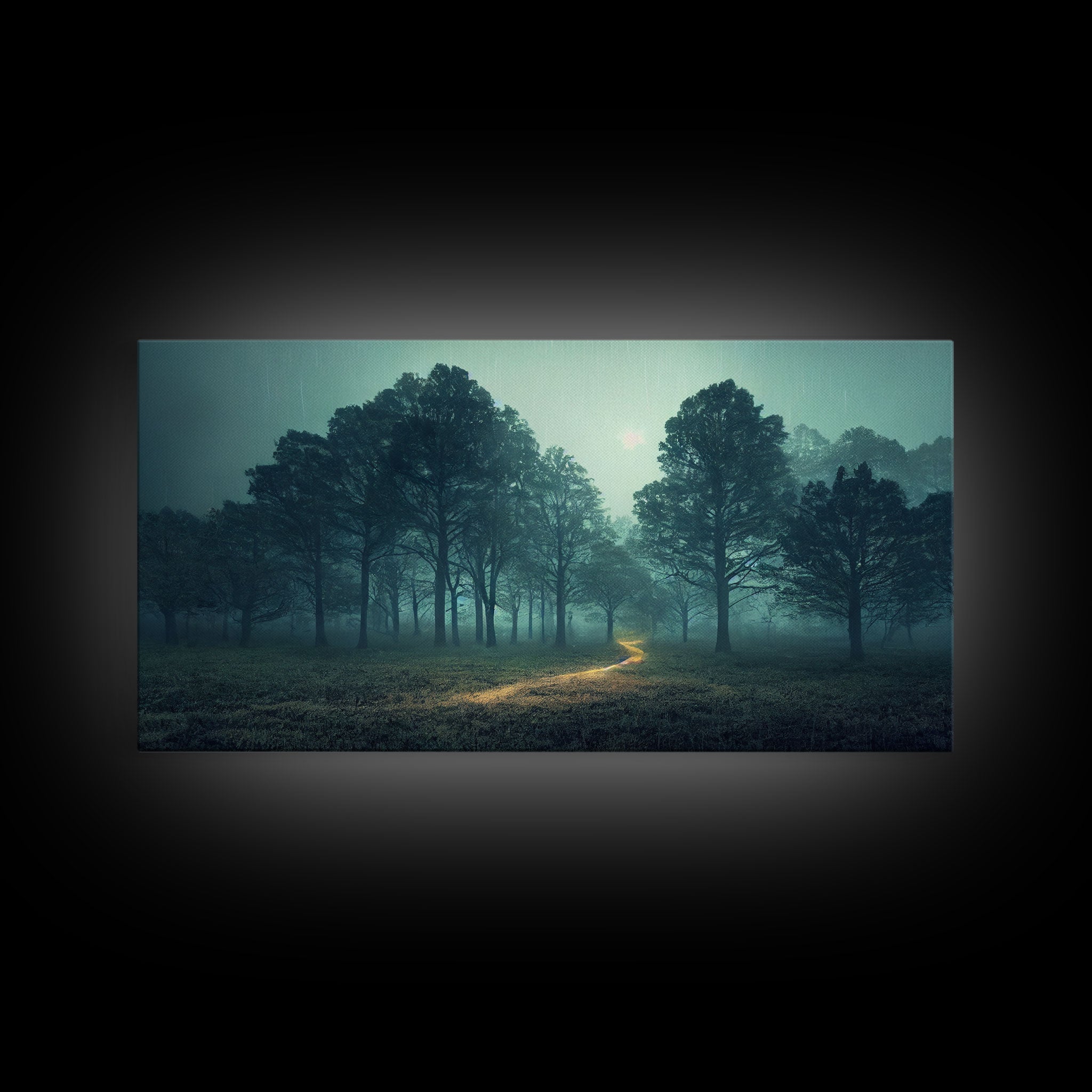 Gloomy Spooky Forest, ready to hang canvas print wall art, Lakehouse Cabin Wall Decor