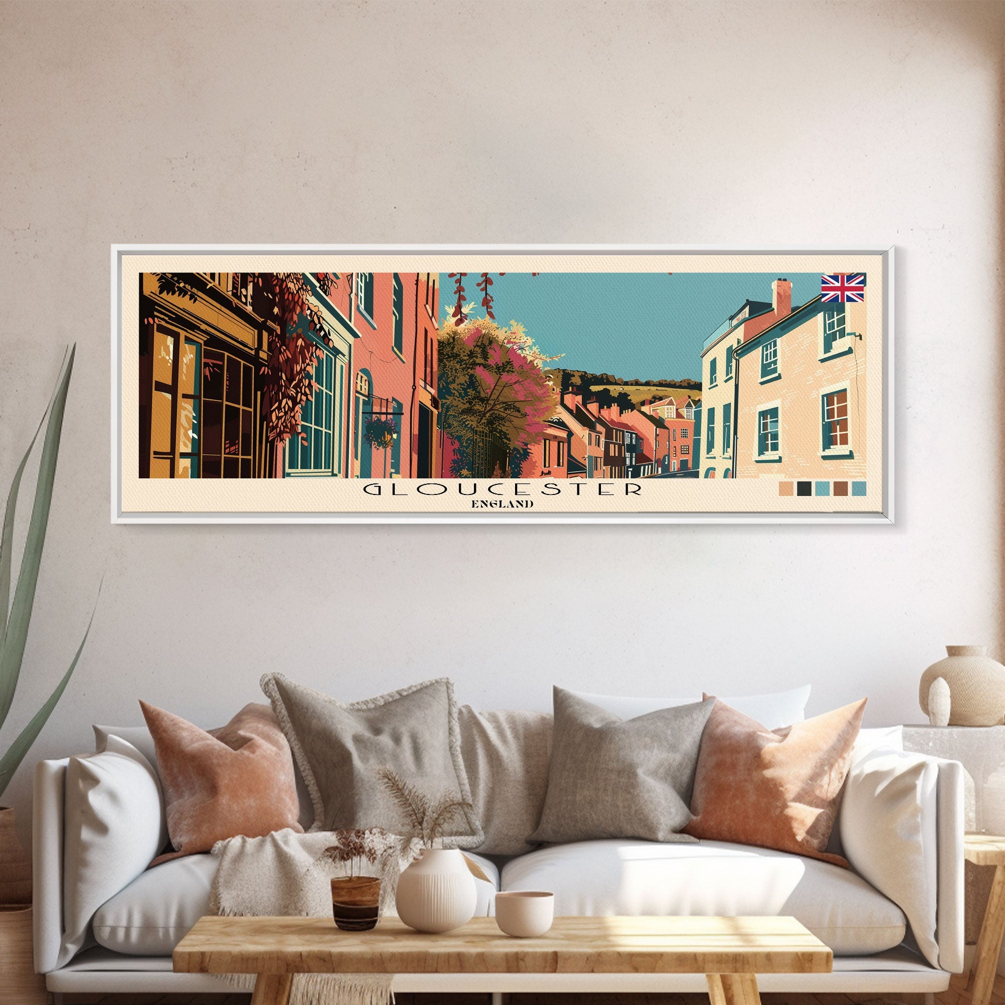 Gloucester, England Panoramic Canvas Print, Gloucester, England Painting, England Art, Gloucester Travel Poster, Travel Art, Guest Room Painting