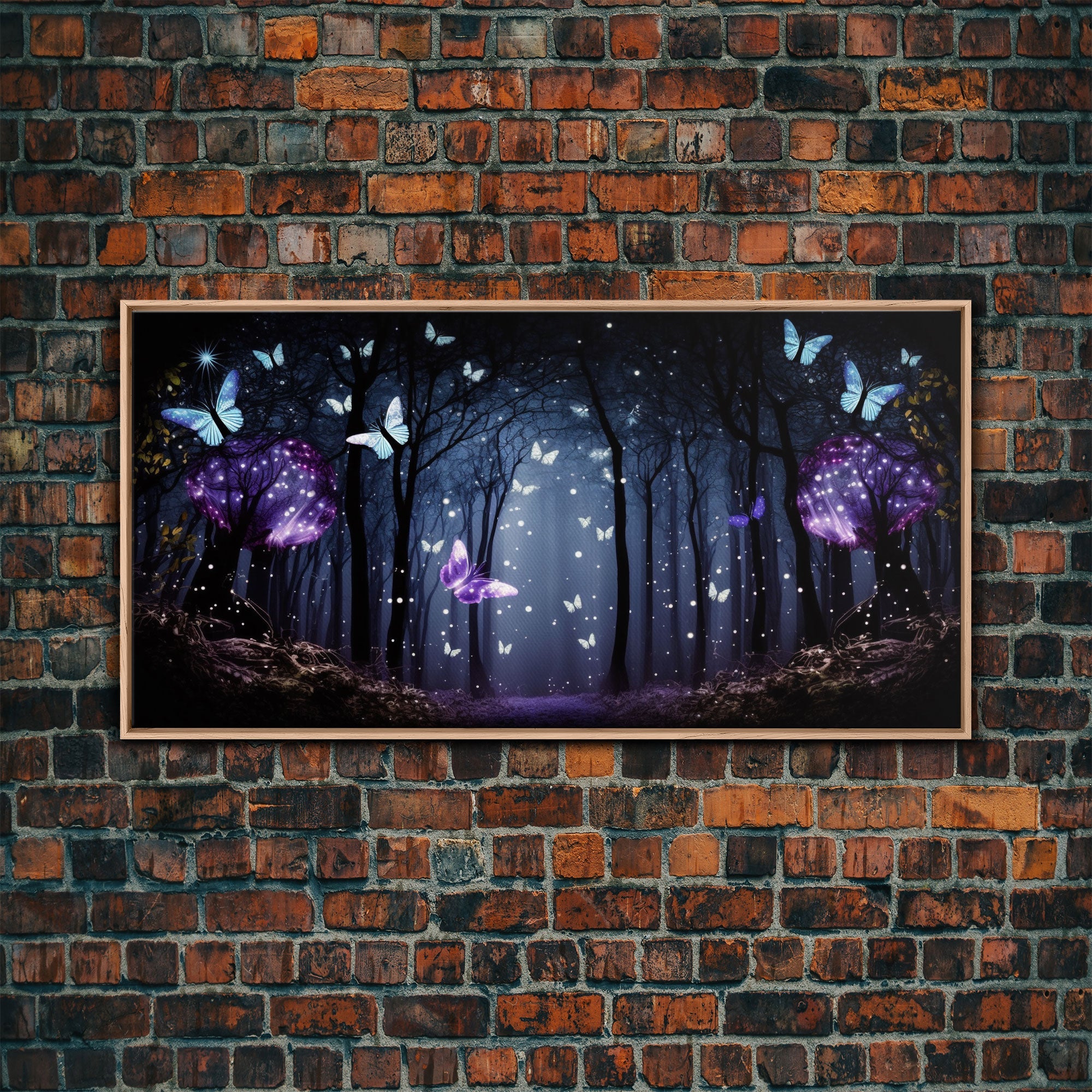 Glowing Butterflies, Framed Canvas Print, Fantasy Decor, High Fantasy Canvas Art, Fairy Forest