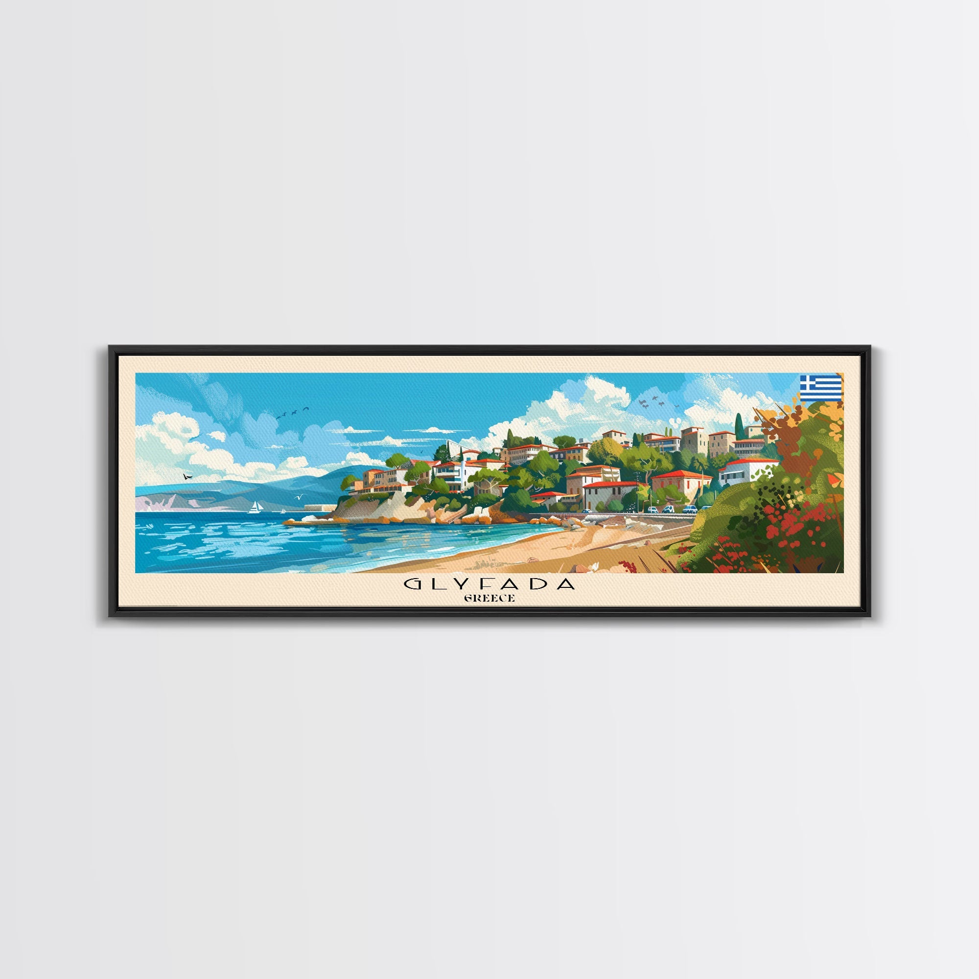 Glyfada Greece Wall Art, Panoramic Travel Poster, Panoramic Framed Canvas Print, City Wall Art, Wall Hanging Home Decor, Travel Art