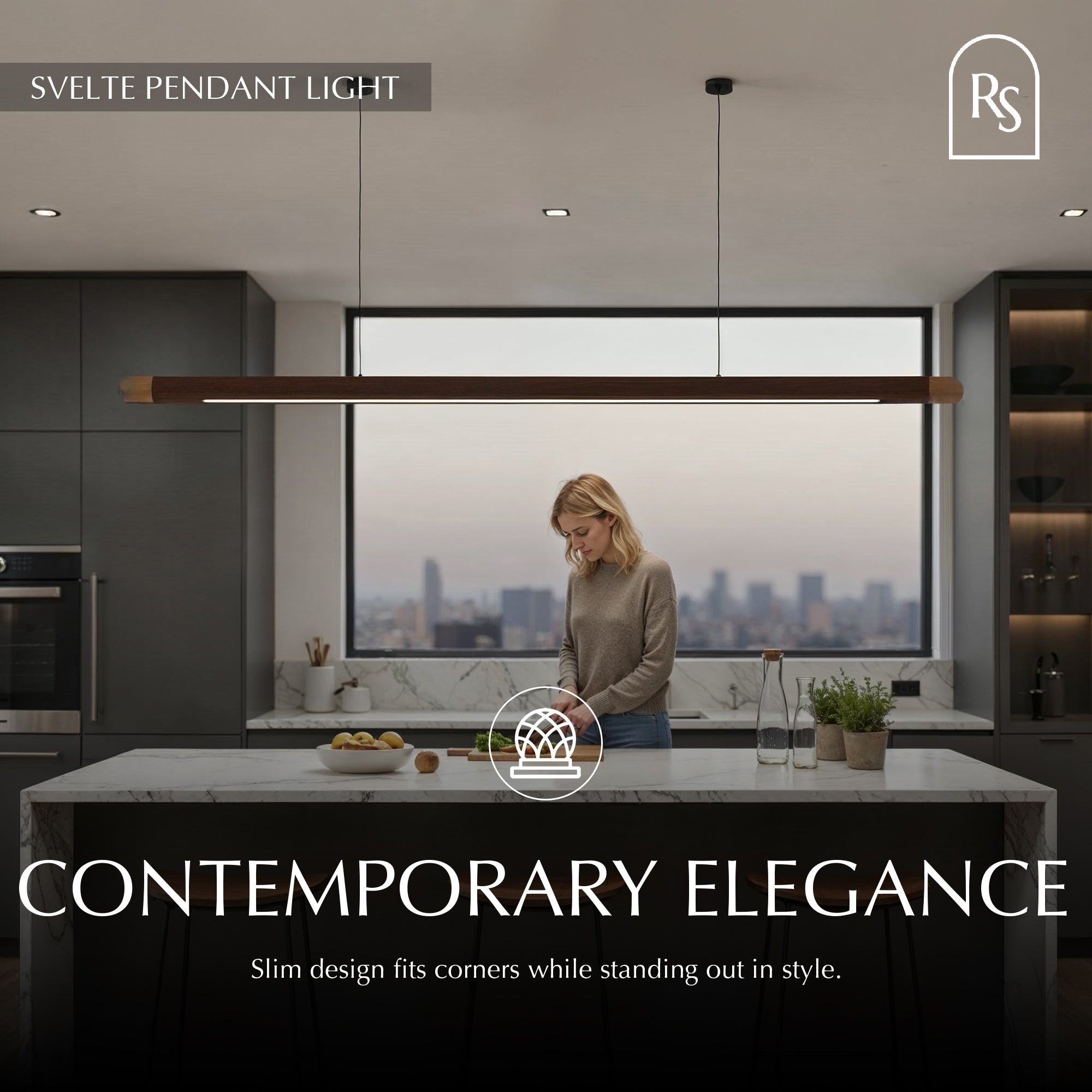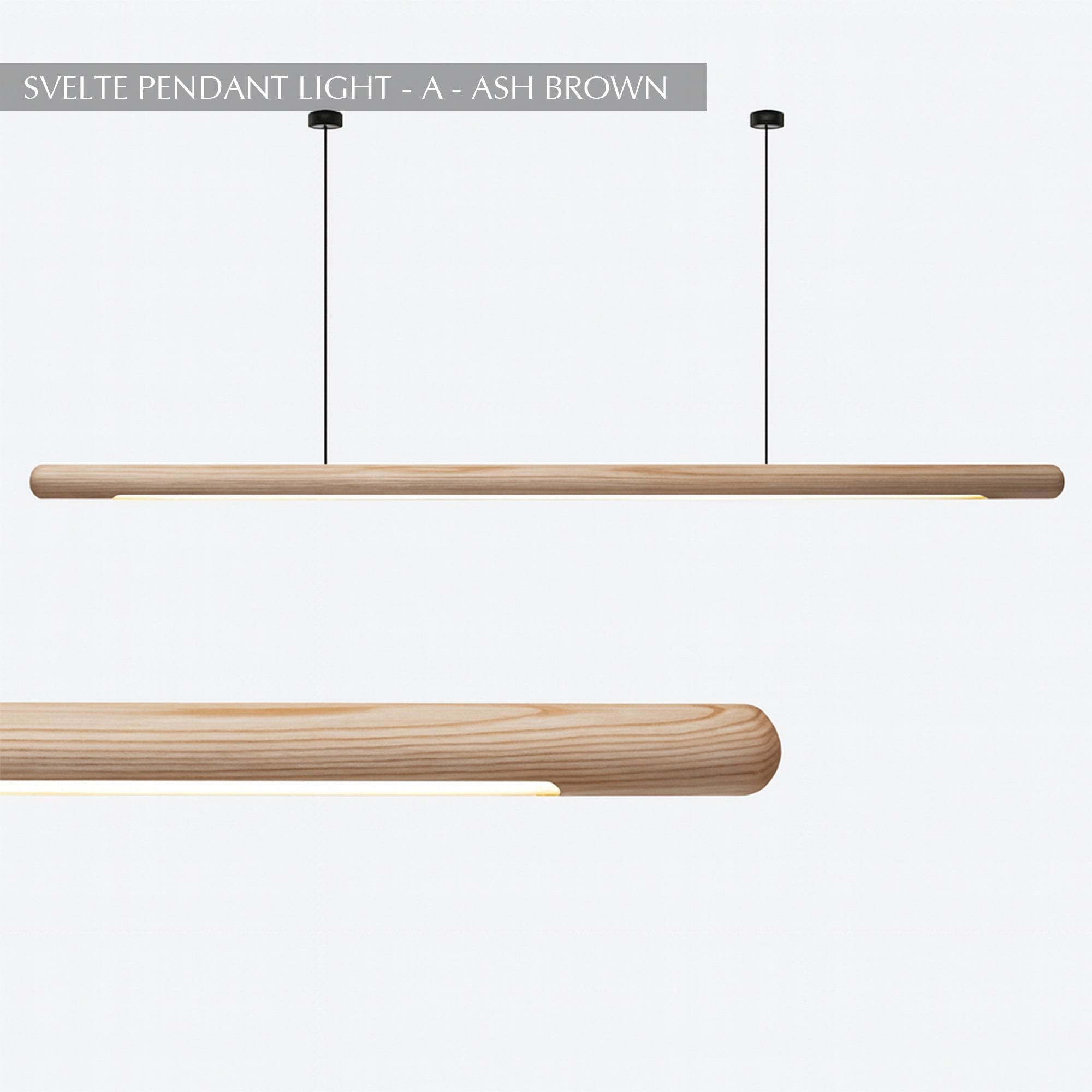 The Svelte Pendant Light is crafted from black walnut or ash wood and features a slender, minimally linear form that will add an exquisite touch to your favorite dining or kitchen area. This elegant pendant showcases a rounded silicon diffuser for directly diffused, soft, and subtle downward light. The Svelte has diverse lighting options that may add a contemporary designer flair to any space and foster a cozy atmosphere.