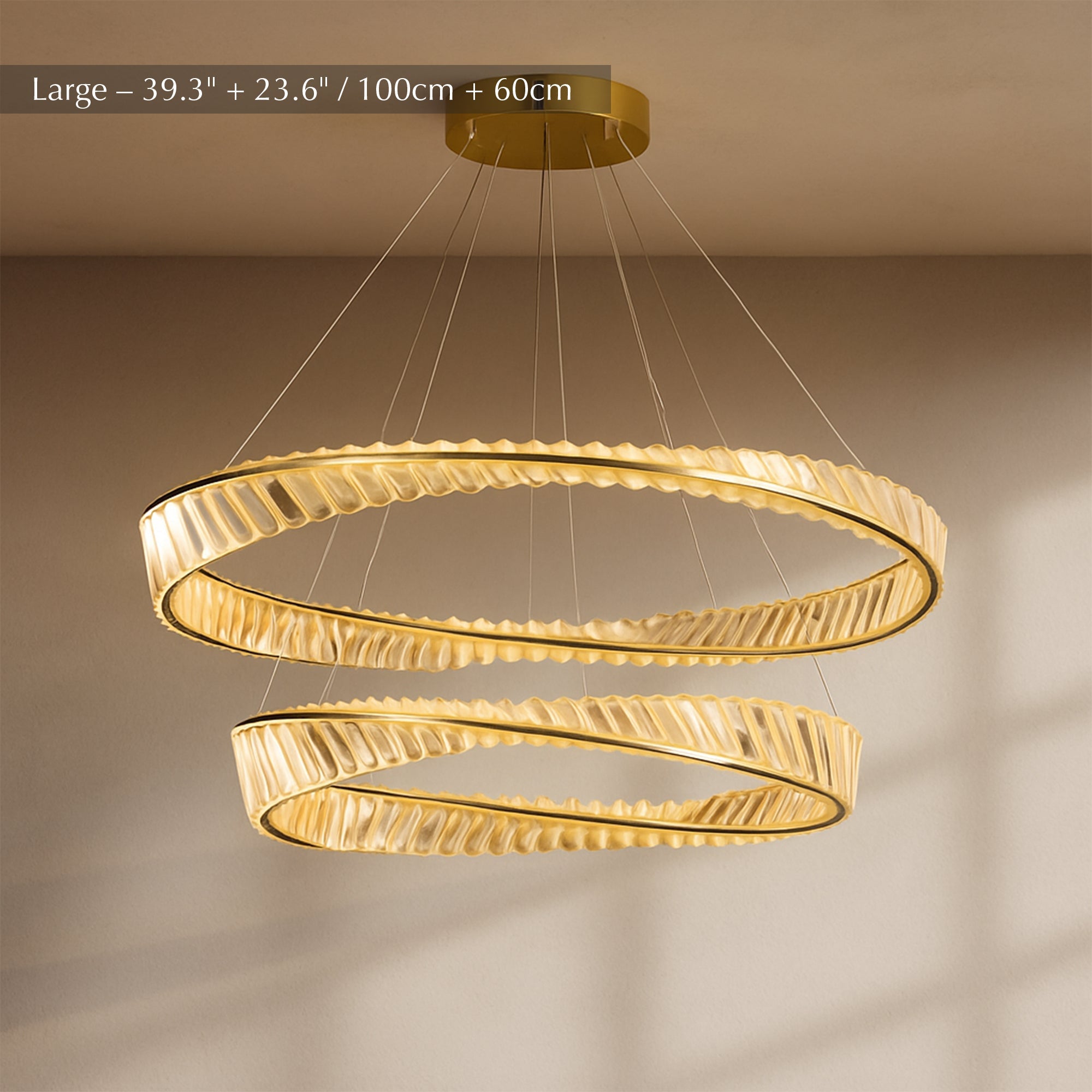 The Tiwa Chandelier is ideal for creating the perfect ambiance. Constructed from superior-grade Metal, this stylish lamp features innovative rings with a crystal lampshade to bring an elegant flair. Equipped with energy-efficient LED lights and a glass surface that refracts light, it is sure to illuminate any room captivatingly.