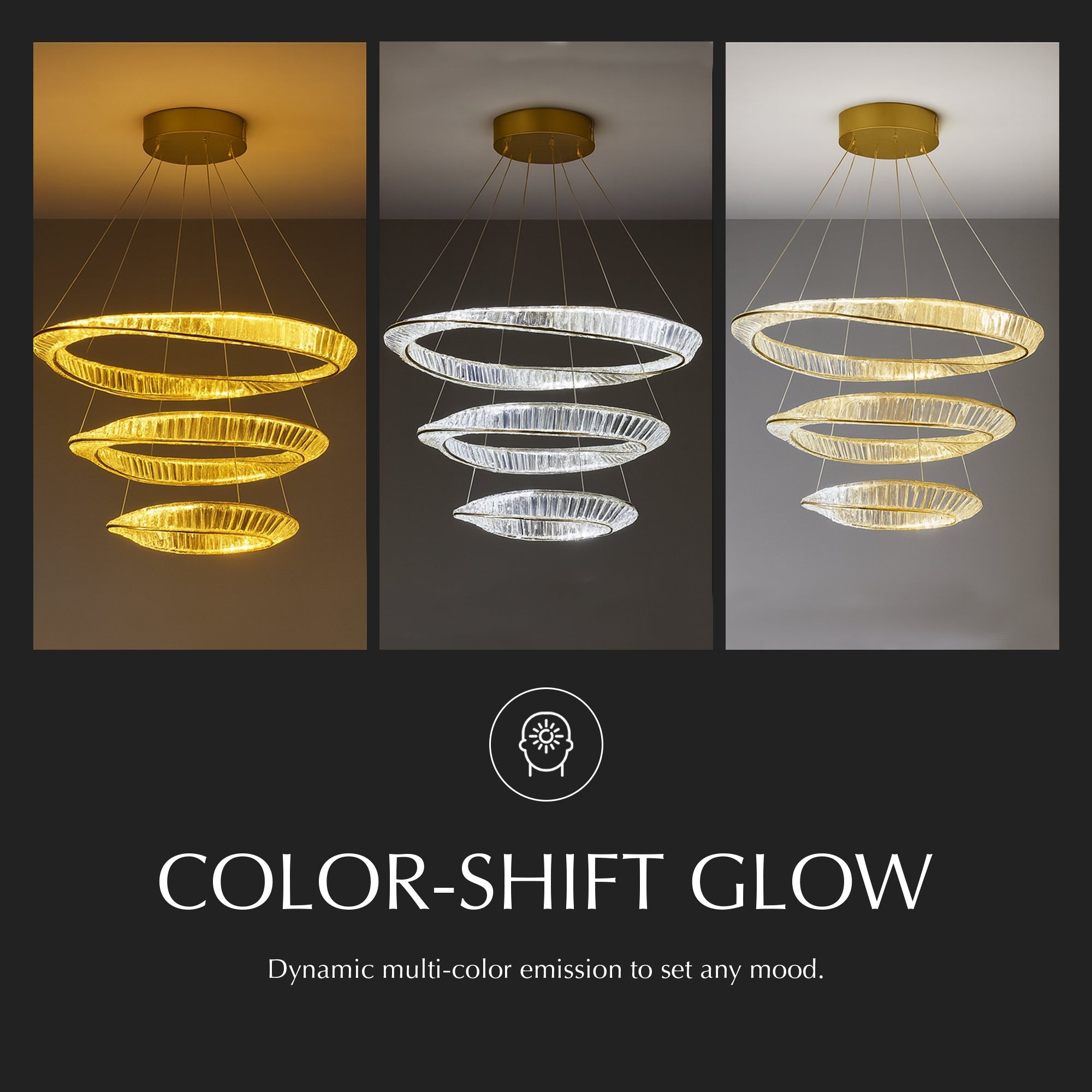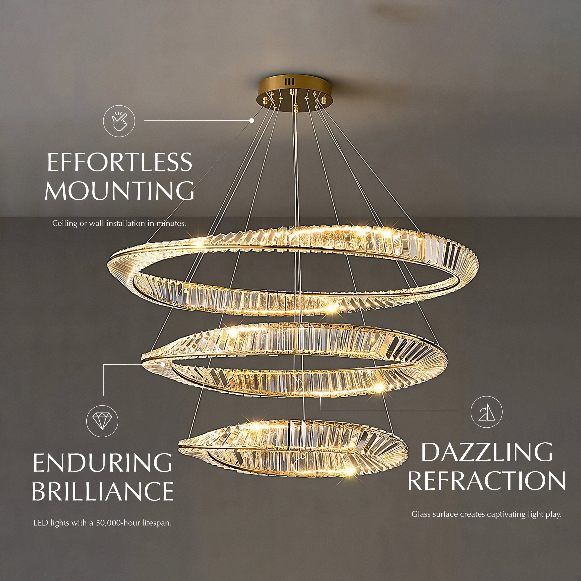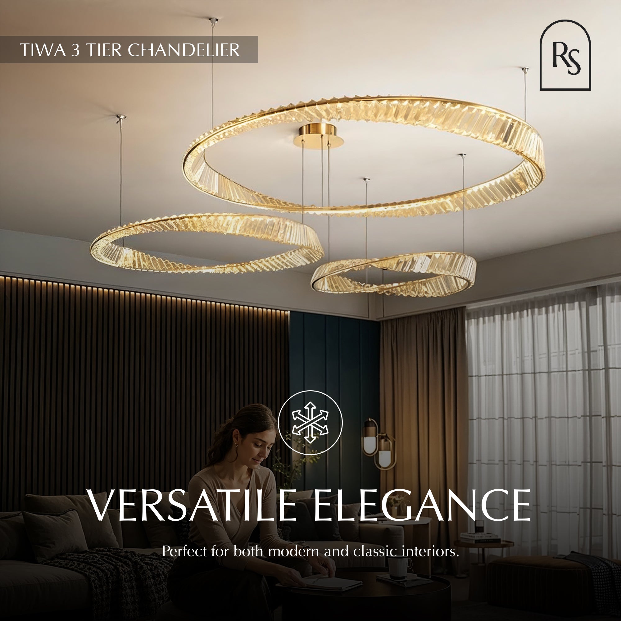 The Tiwa Chandelier is ideal for creating the perfect ambiance. Constructed from superior-grade Metal, this stylish lamp features innovative rings with a crystal lampshade to bring an elegant flair. Equipped with energy-efficient LED lights and a glass surface that refracts light, it is sure to illuminate any spacious room captivatingly.