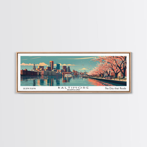 Baltimore Maryland Panoramic Wall Art Framed Canvas Print, Mid Century Modern Art, Pop Art Style, Travel Poster, Home Decor, Retro Style