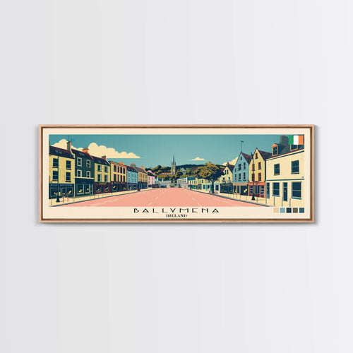 Ballymena, Ireland Travel Poster Panoramic Canvas Print, Ballymena, Ireland Painting, Ireland Art, Ballymena Travel Art, Guest Room Painting