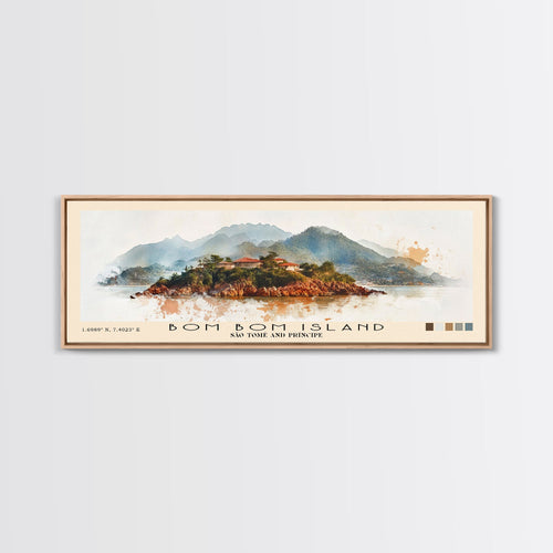 Bom Bom Island, São Tomé and Príncipe Panoramic Print, Vacation Gift, São Tomé and Príncipe Wall Art, Beach Painting, Beach Decor, Large Wall Art, Wood Frame Art